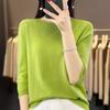 Suéter casual suelto de punto de cuello redondo coreano de color sólido adelgazante de cintura, manga farol, jersey I#10