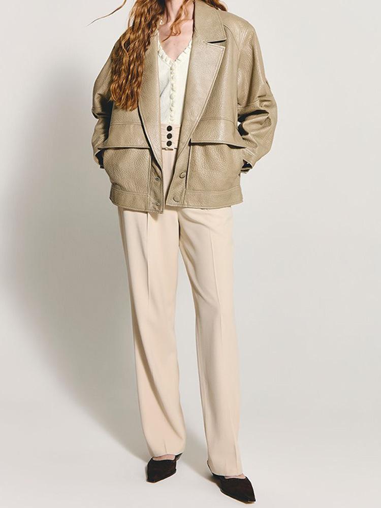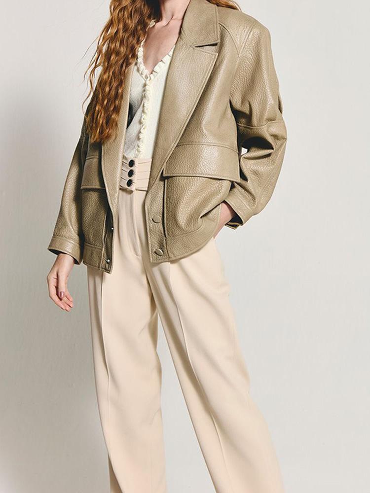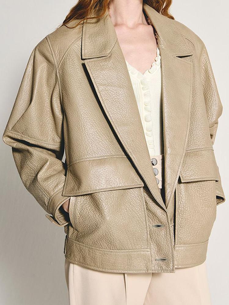 Chaqueta de cuero con solapa personalizada, estilo rockero, de un solo pecho y bolsillo grande, nueva moda transfronteriza europea y americana, primavera y otoño de 2024