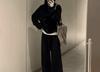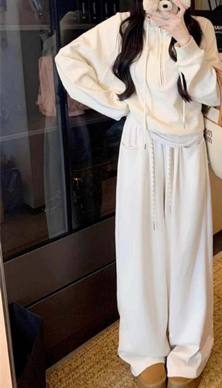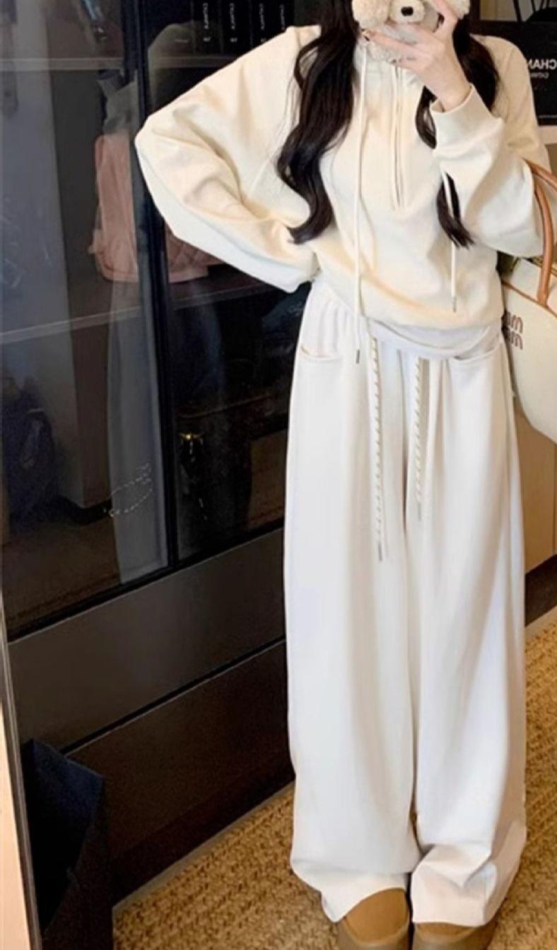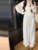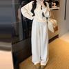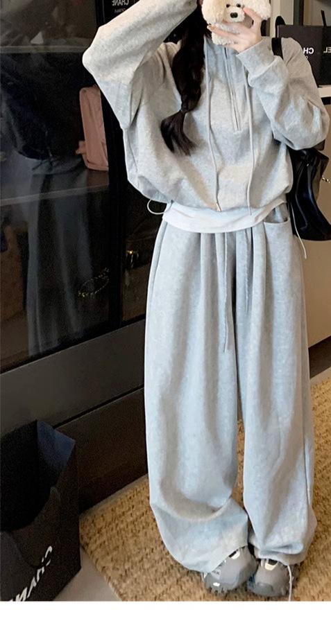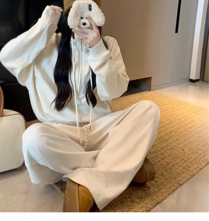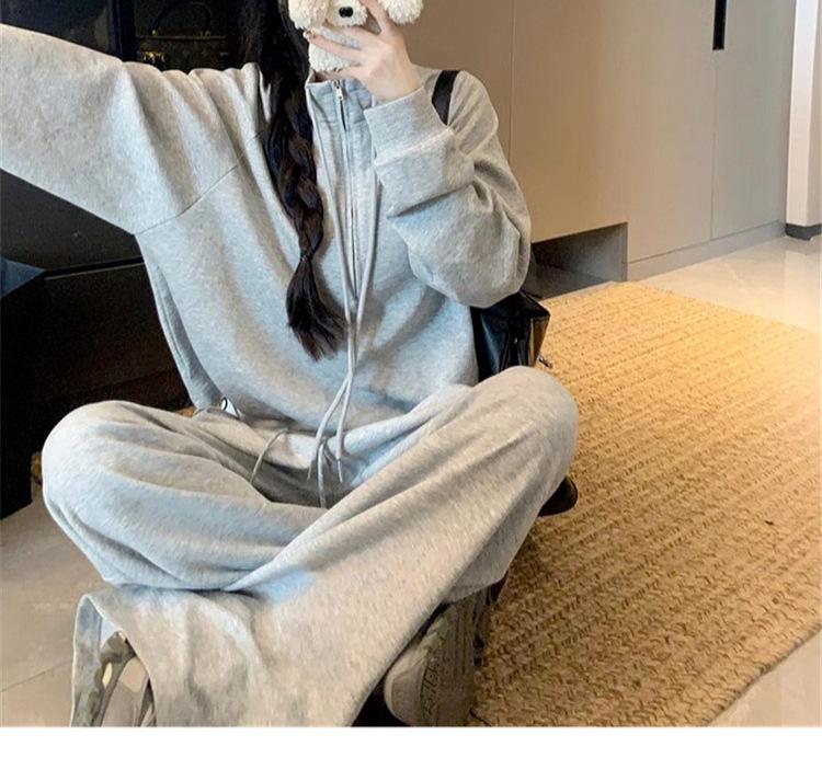 Traje informal de estilo perezoso para mujer, otoño, nuevo, cintura alta, adelgazamiento, pantalones de pierna ancha, diseño de sudadera relajante, conjunto de dos piezas