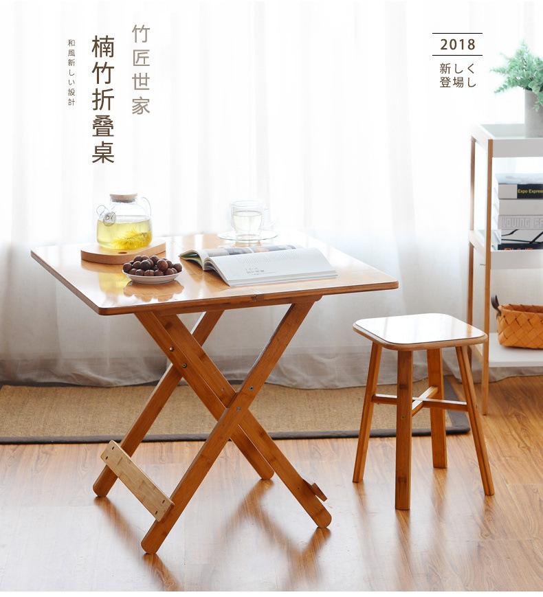 Mesa Plegable de Bambú Mesa Pequeña Portátil Mesa Plegable Sencilla Mesa de Comedor para Apartamento Pequeño Mesa Cuadrada de Madera Maciza Cuadrada para el Hogar