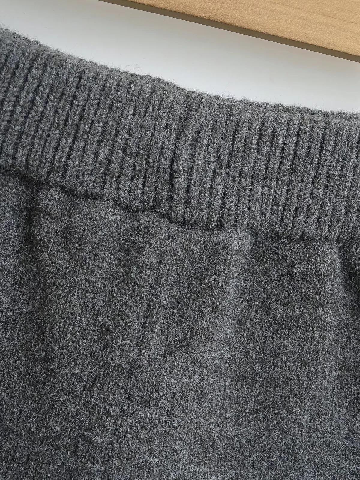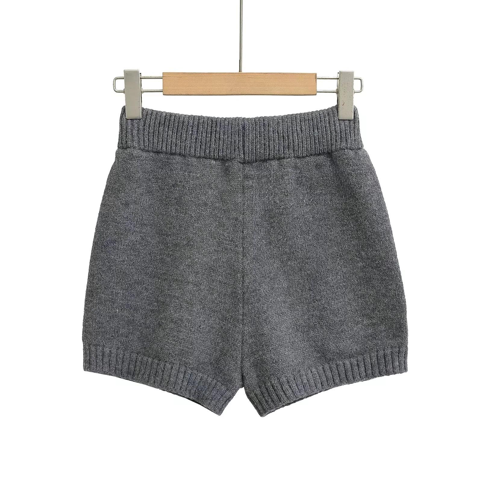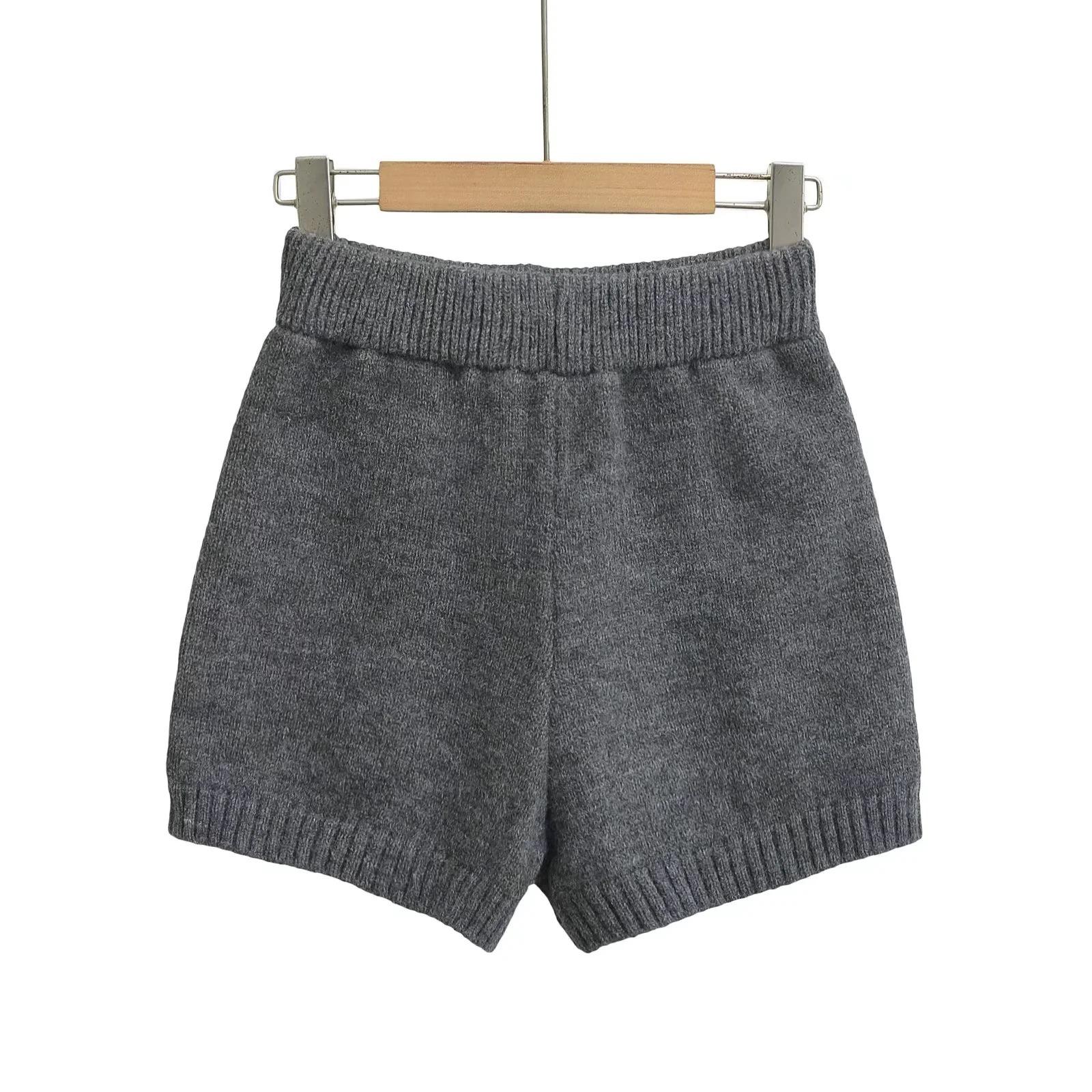 Pantalones cortos casuales de punto gris para mujer, primavera otoño e invierno 2024, recién llegados, de lana, adelgazantes, de cintura alta y pierna ancha.