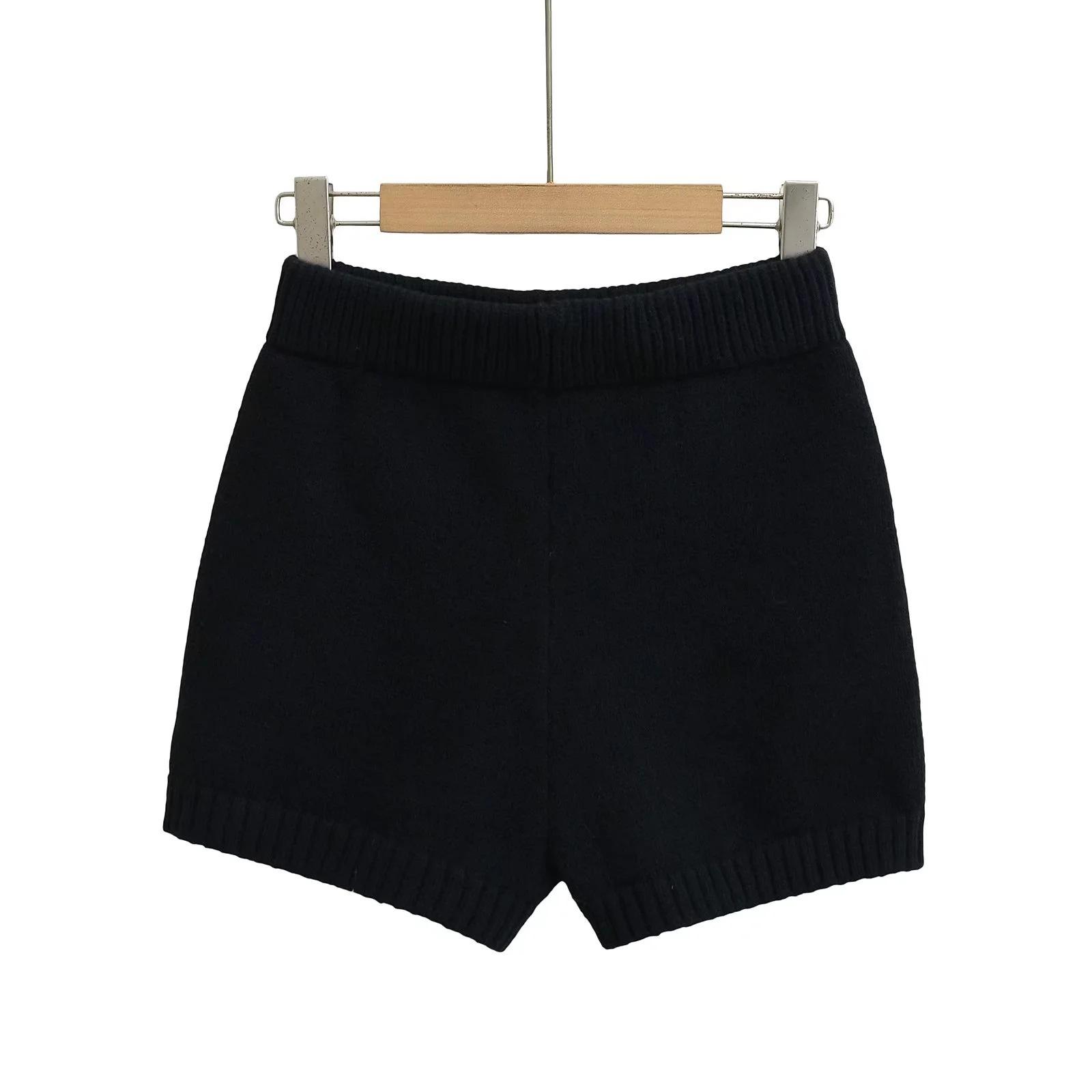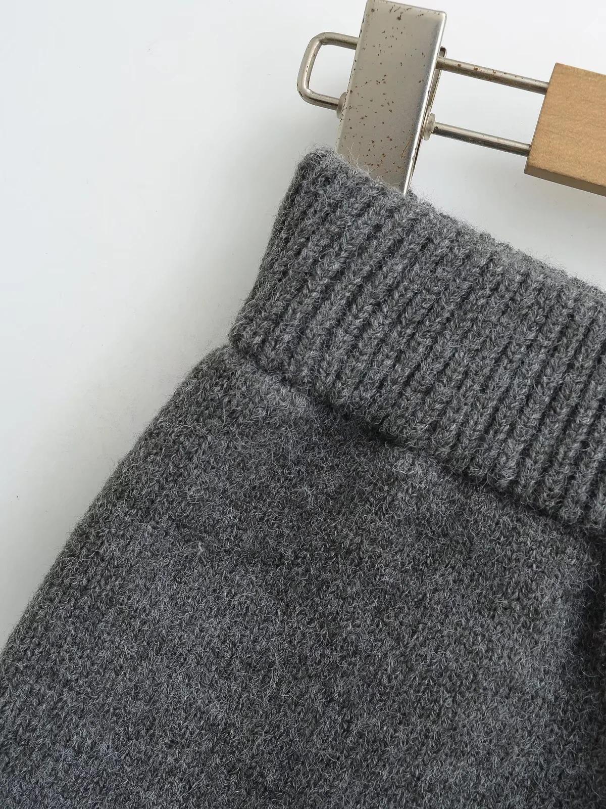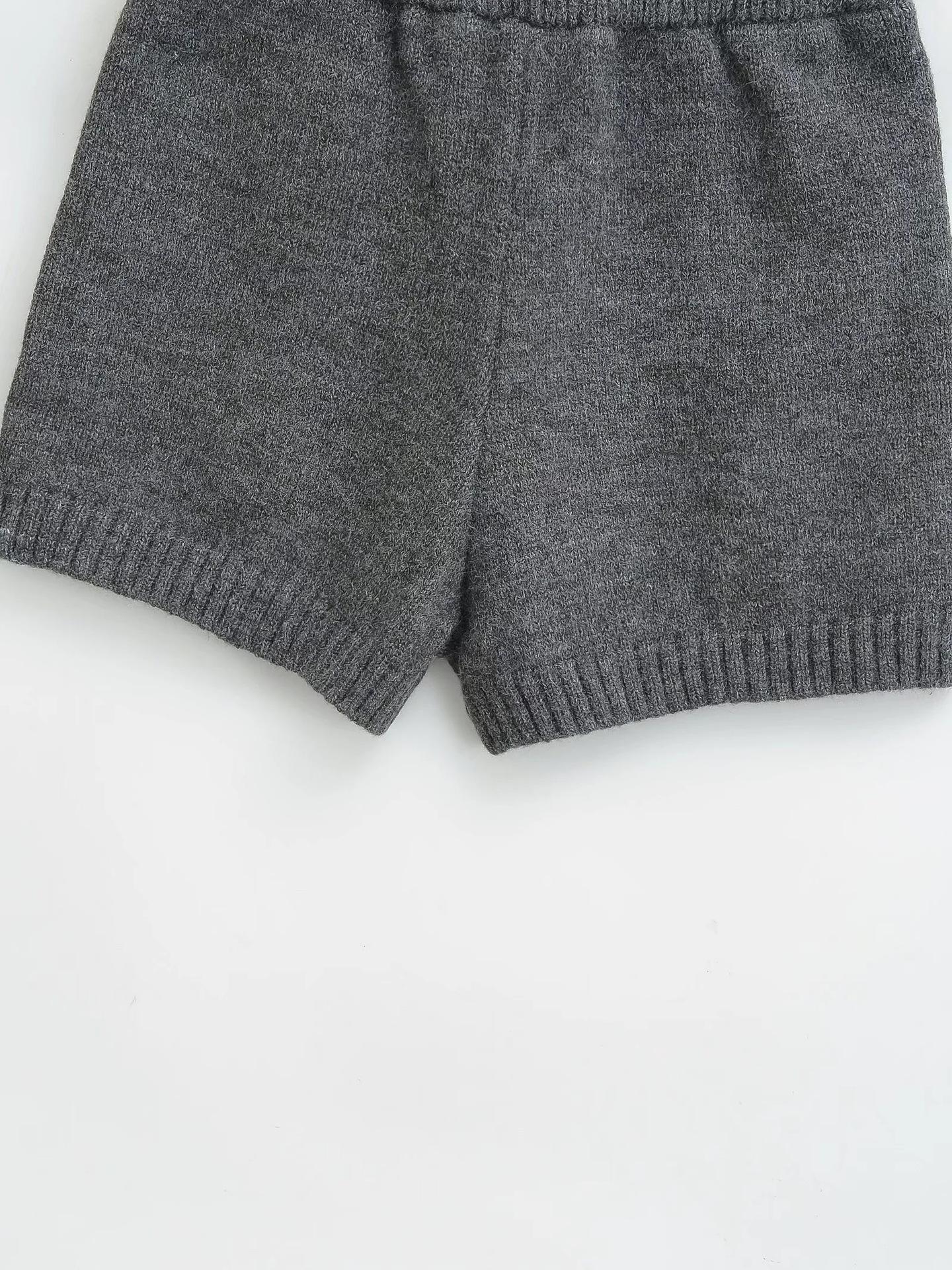 Pantalones cortos casuales de punto gris para mujer, primavera otoño e invierno 2024, recién llegados, de lana, adelgazantes, de cintura alta y pierna ancha.