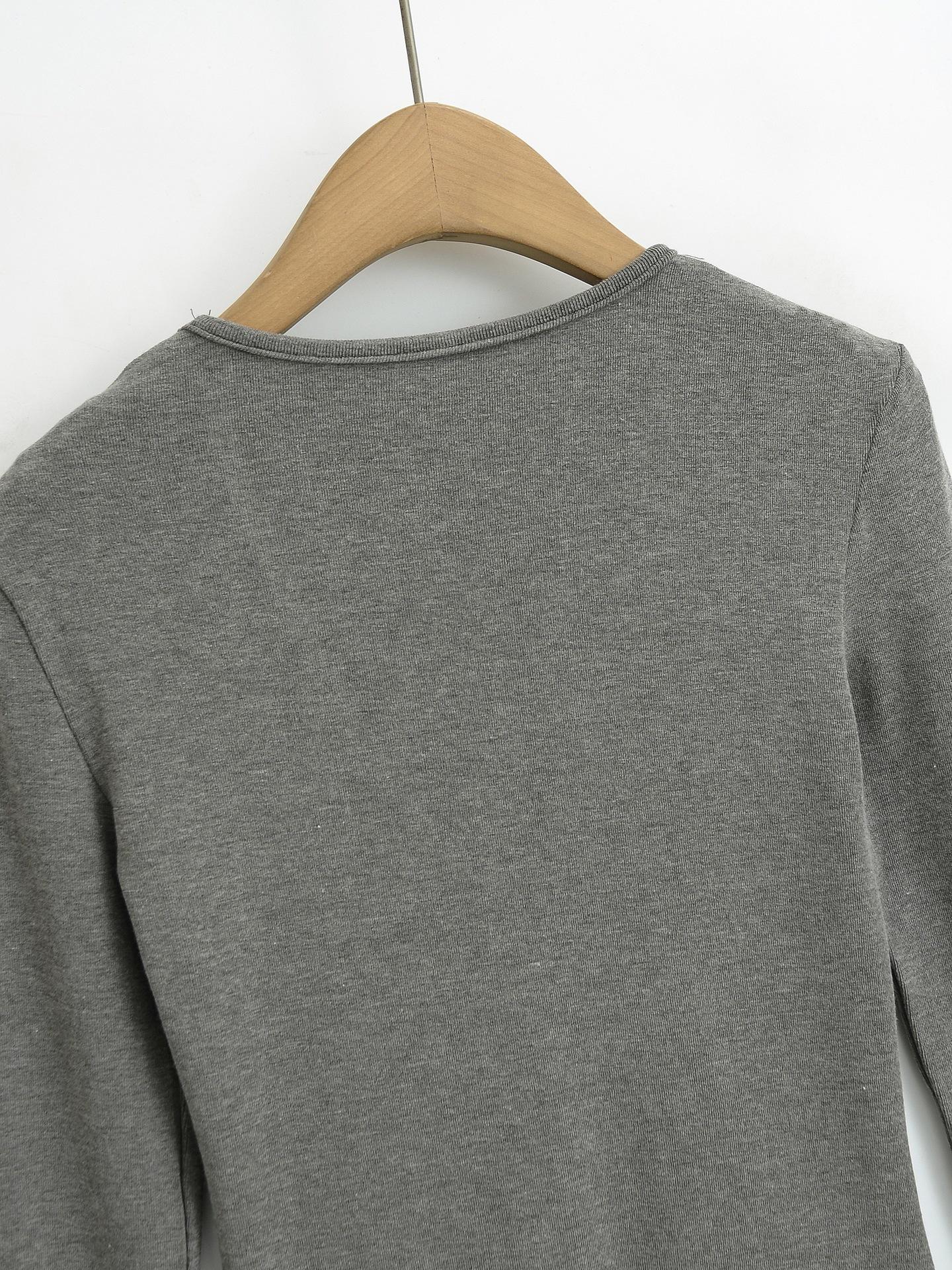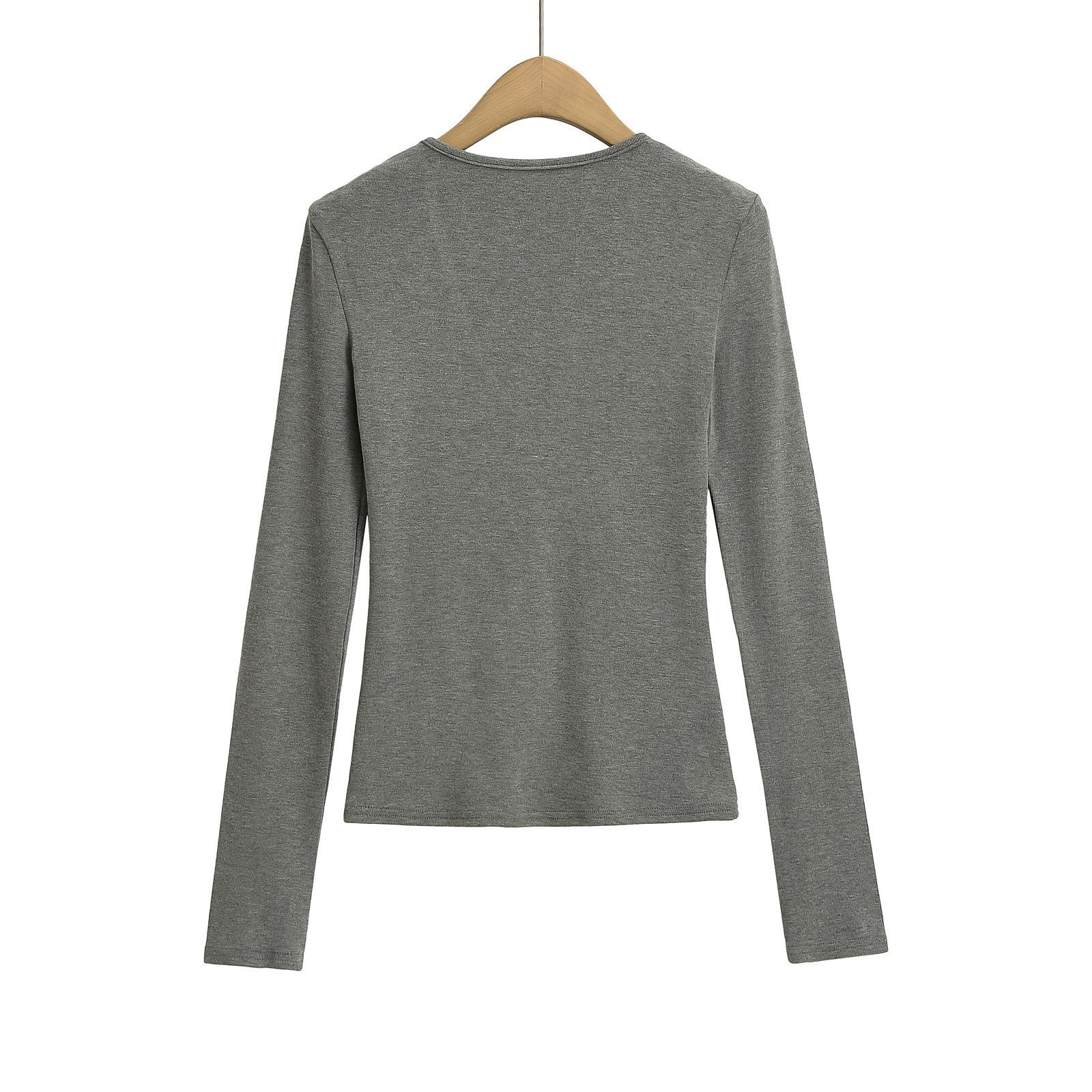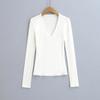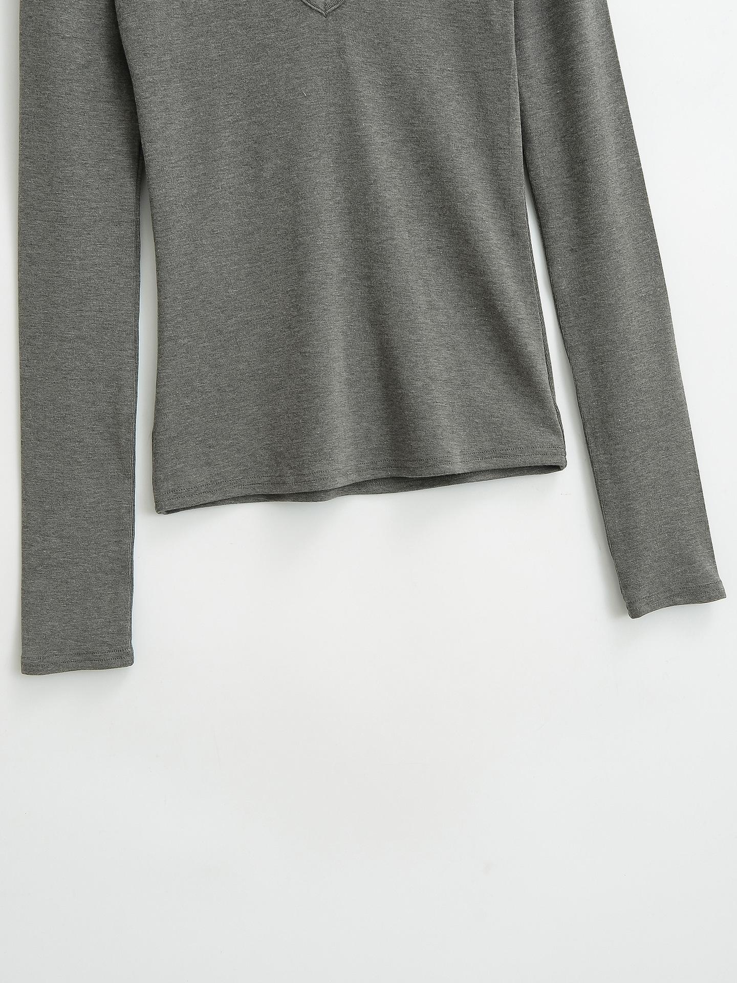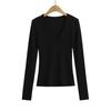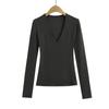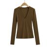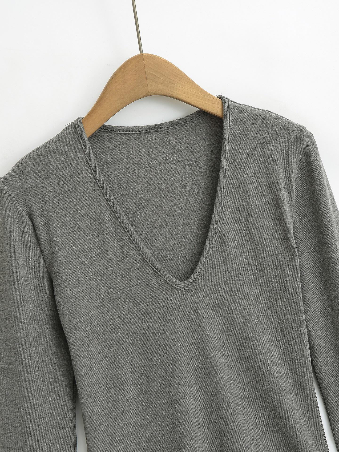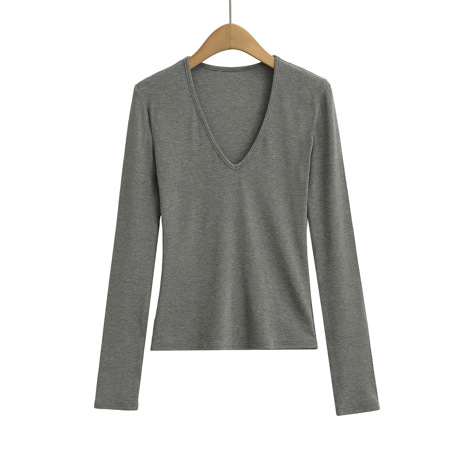 Estilo simple chica sexy delgada sexy cuello en V profundo color sólido capa base chica sexy casual camiseta de punto al por mayor