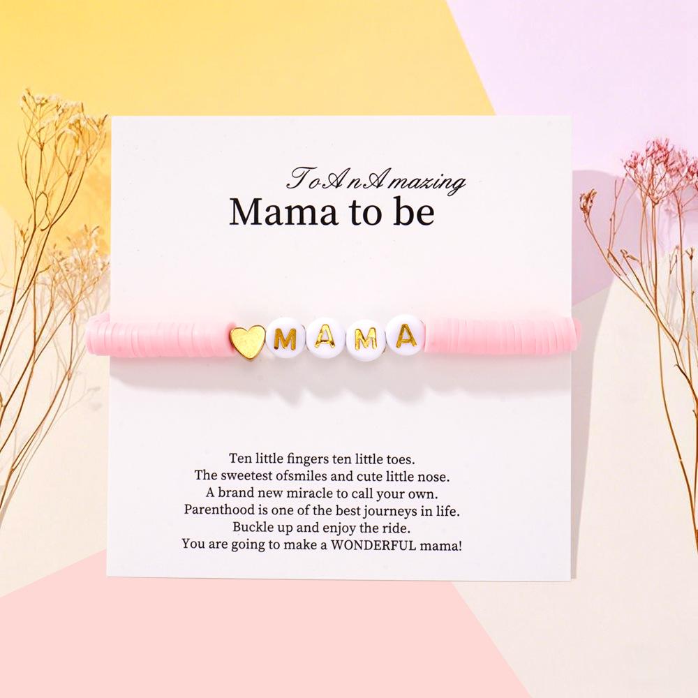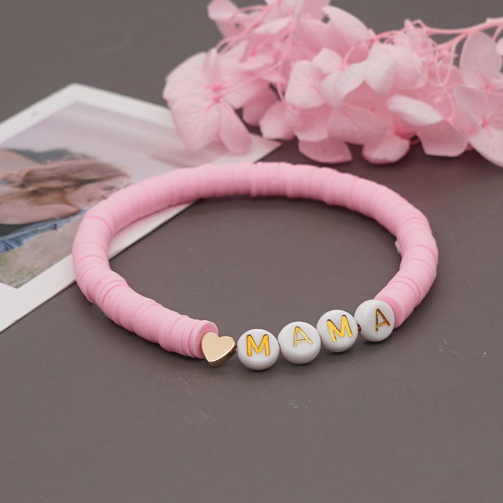 Pulsera Popular Ins de Cerámica Suave Rosa para Mujer Moda Letras Corazón de Durazno Regalos Día de la Madre Día de Acción de Gracias Pulsera Elástica