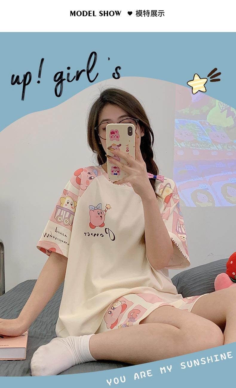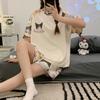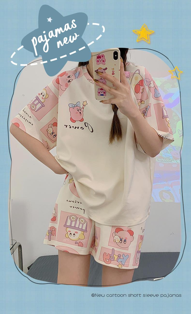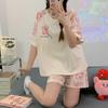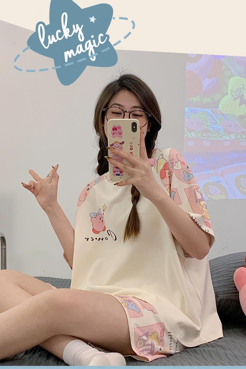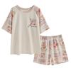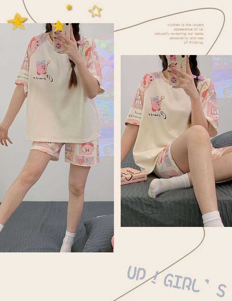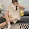 Pijama de Verano para Mujer de Manga Corta y Pantalón Corto, Traje de Verano Lindo de Dibujos Animados Holgado para Mujer, Ropa de Casa de Primavera y Otoño, Ropa Exterior
