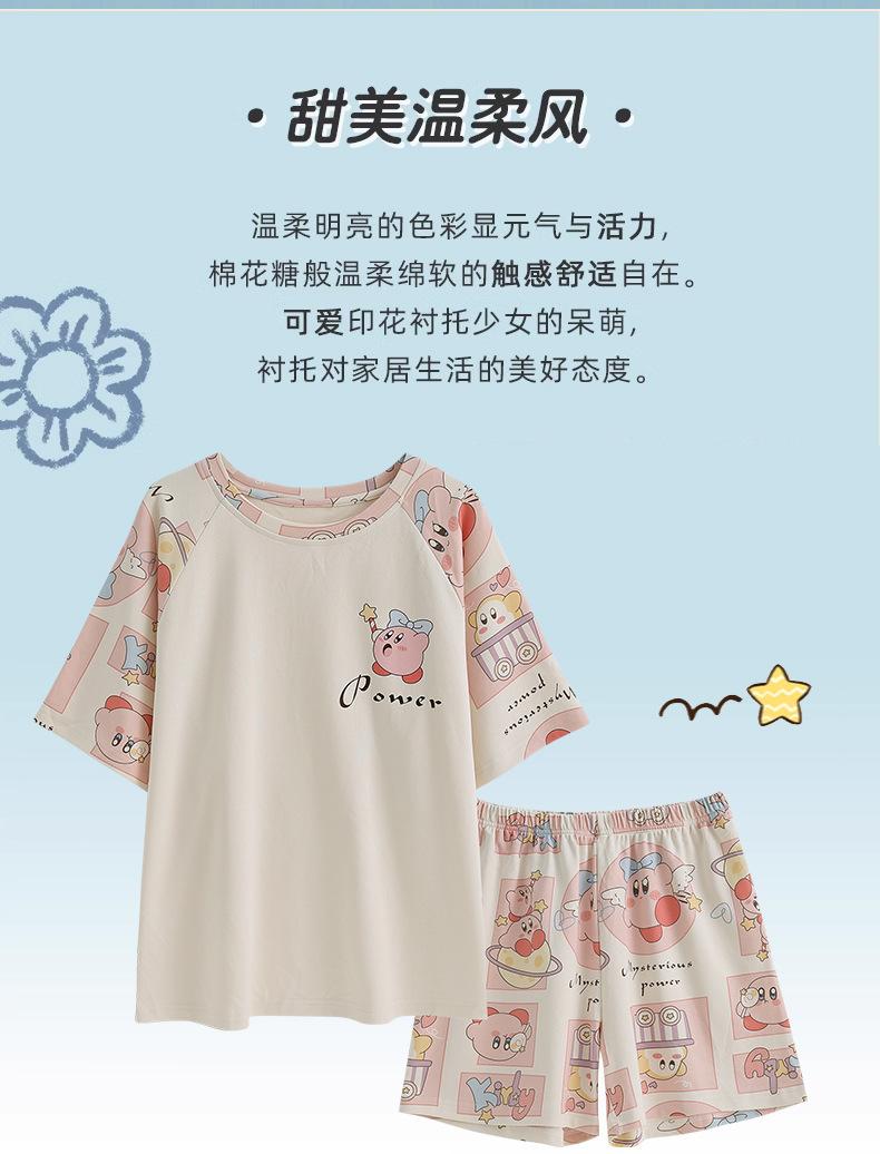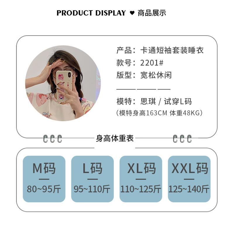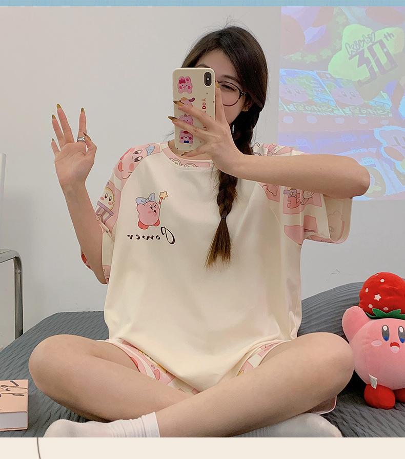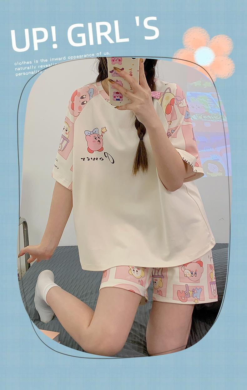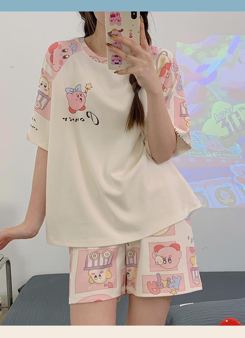 Pijama de Verano para Mujer de Manga Corta y Pantalón Corto, Traje de Verano Lindo de Dibujos Animados Holgado para Mujer, Ropa de Casa de Primavera y Otoño, Ropa Exterior