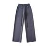 2024 Verano Nuevo Pantalón de Pierna Recta Suelto de Cintura Alta para Mujer Diseño Nicho Hotfix Cintura Apilada Casual Pierna Ancha Pantalón Largo