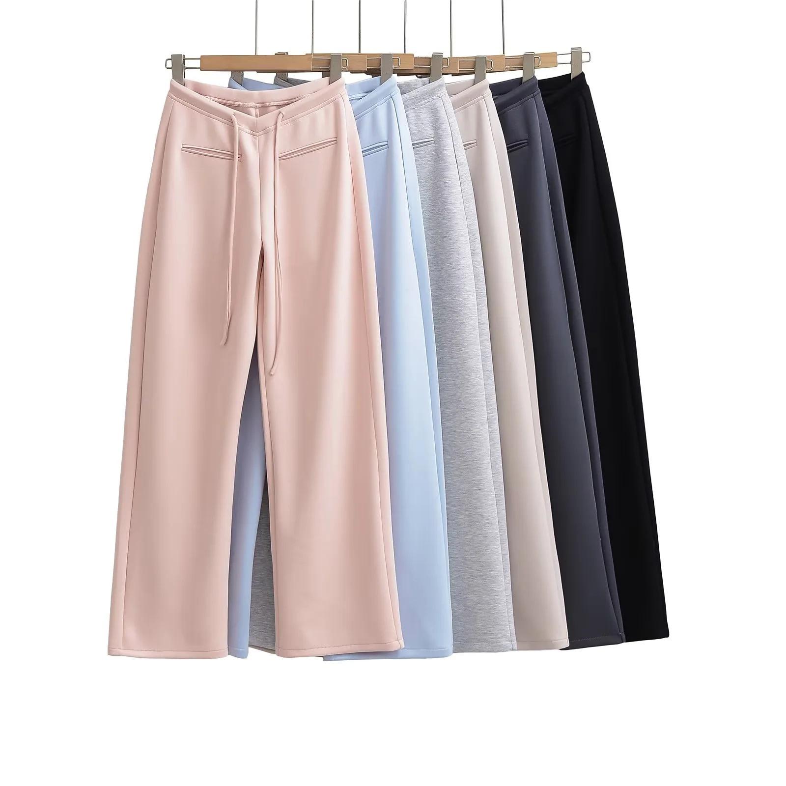 Estilo perezoso chica sexy pantalones sueltos con cordón pierna recta mujer cintura alta adelgazantes 2025 primavera nuevos pantalones casuales pantalones de pierna ancha