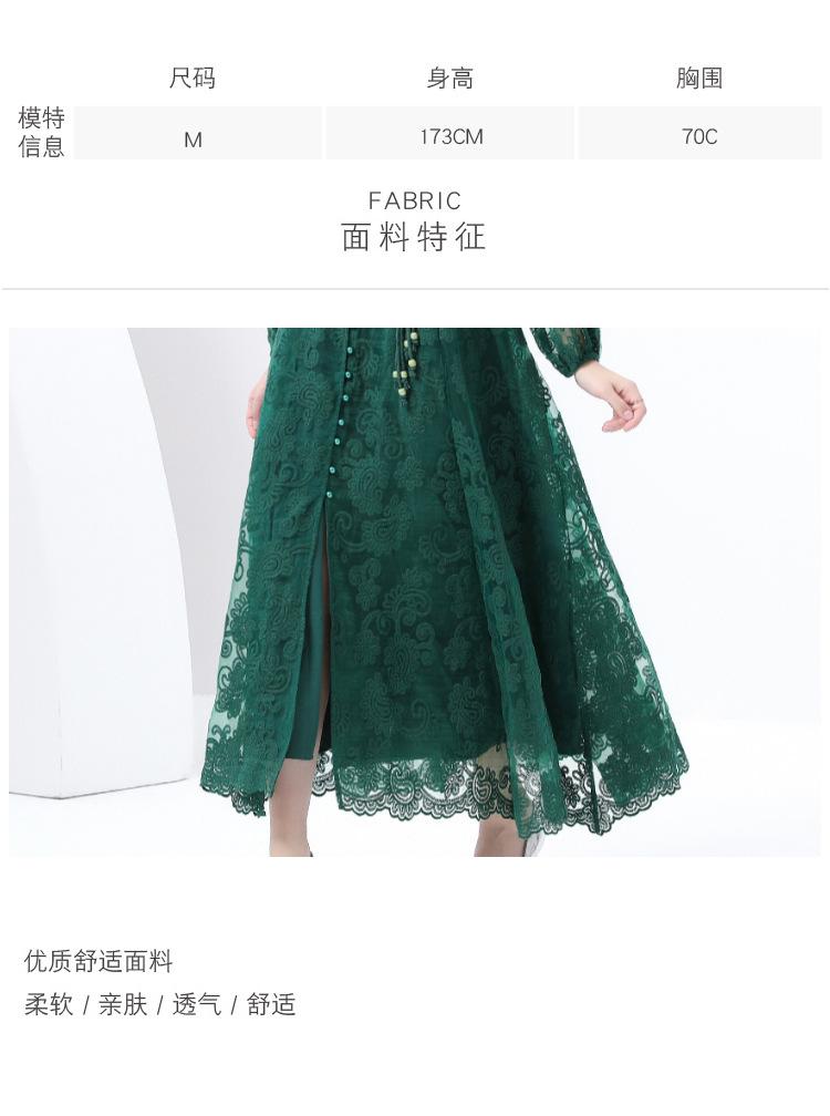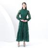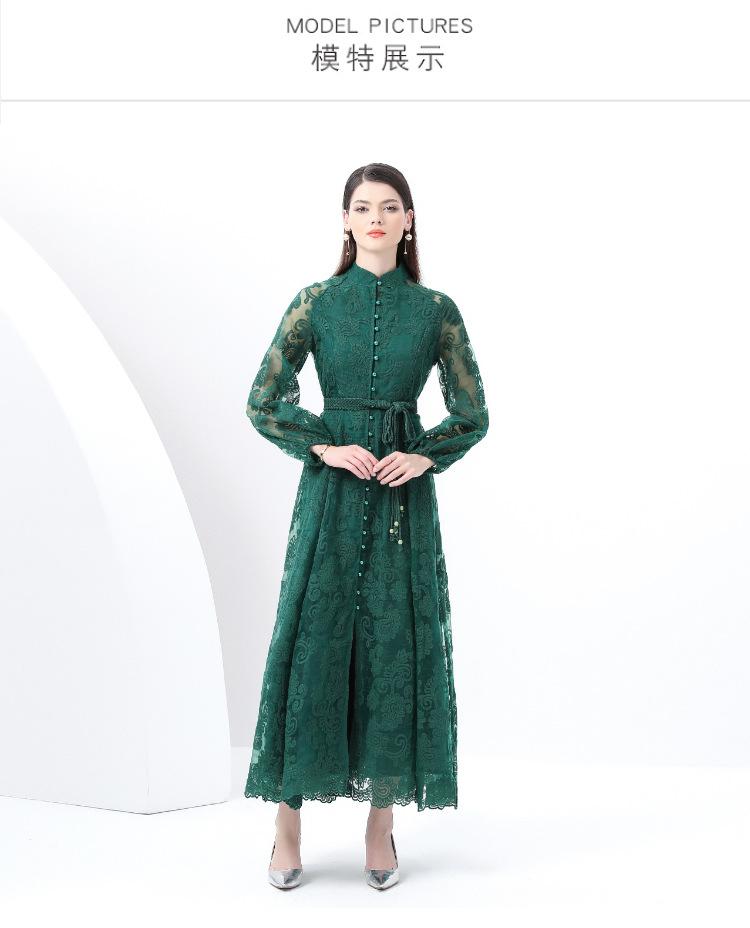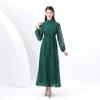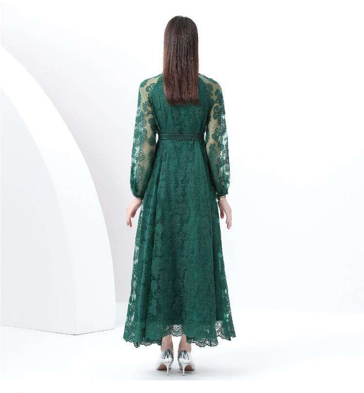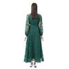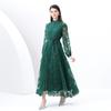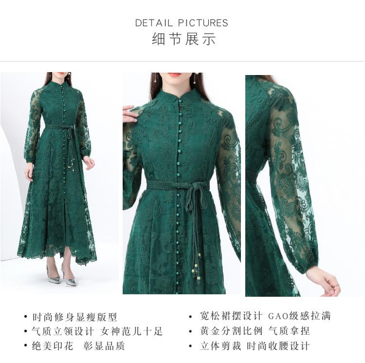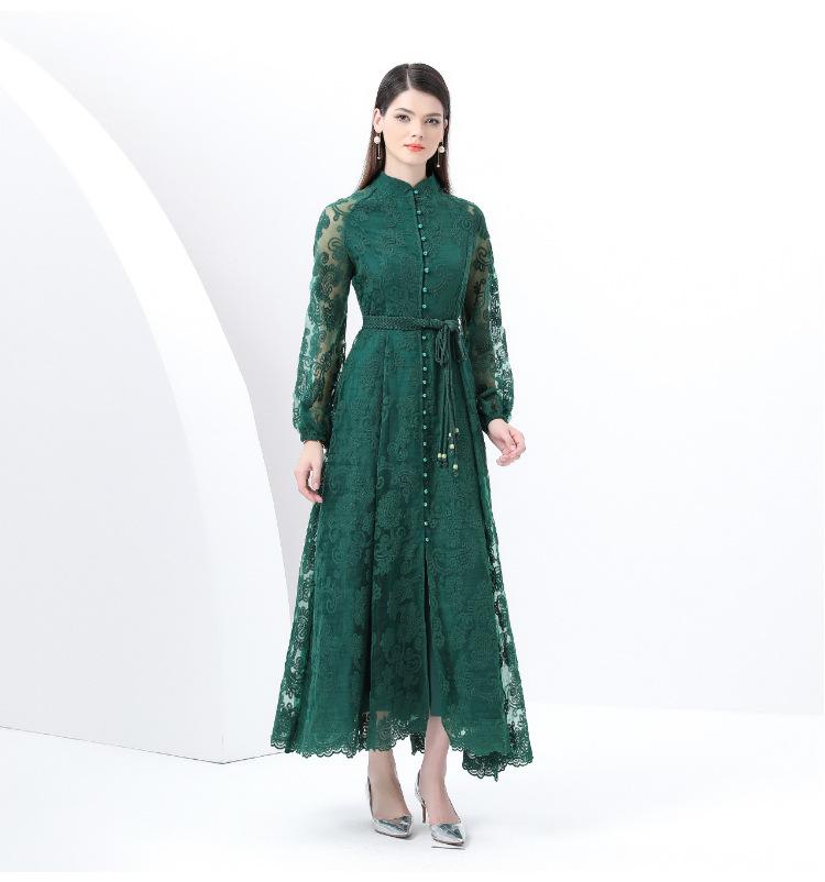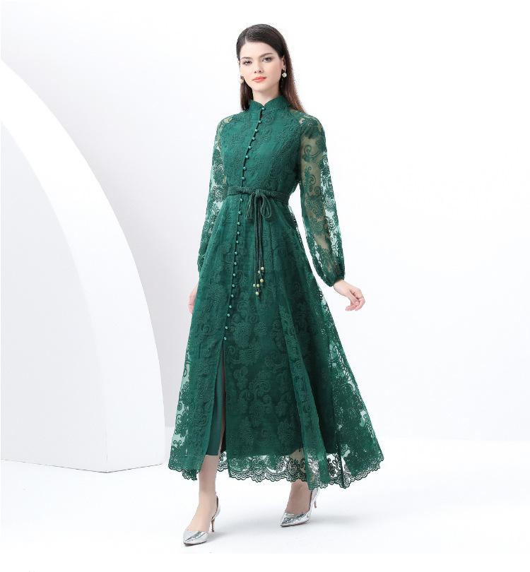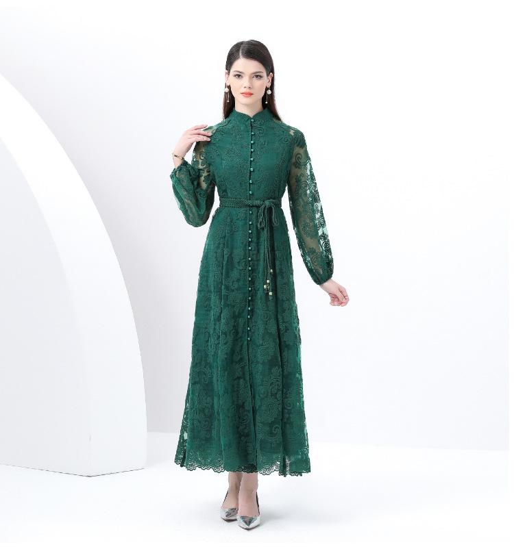 Vestido largo de amplio péndulo con manga farol estilo palaciego para primavera y verano 2025, cuello alto con bordado