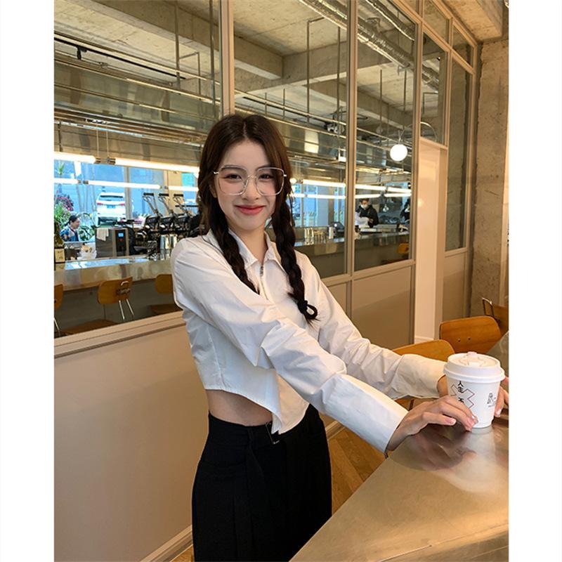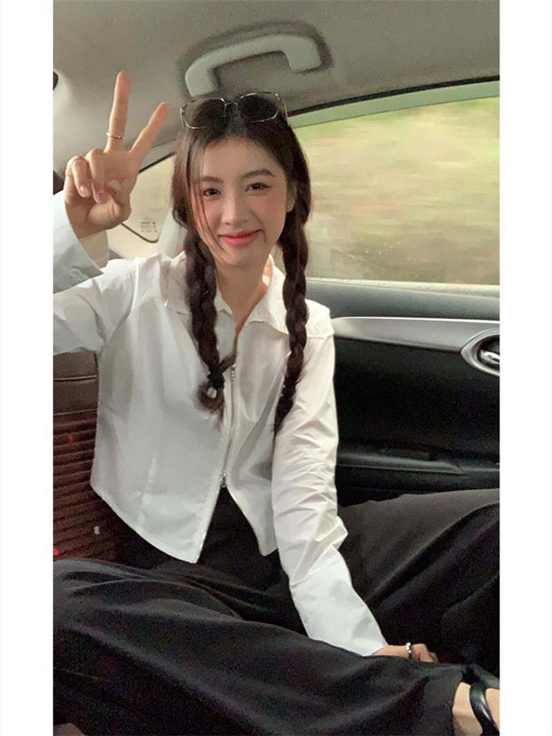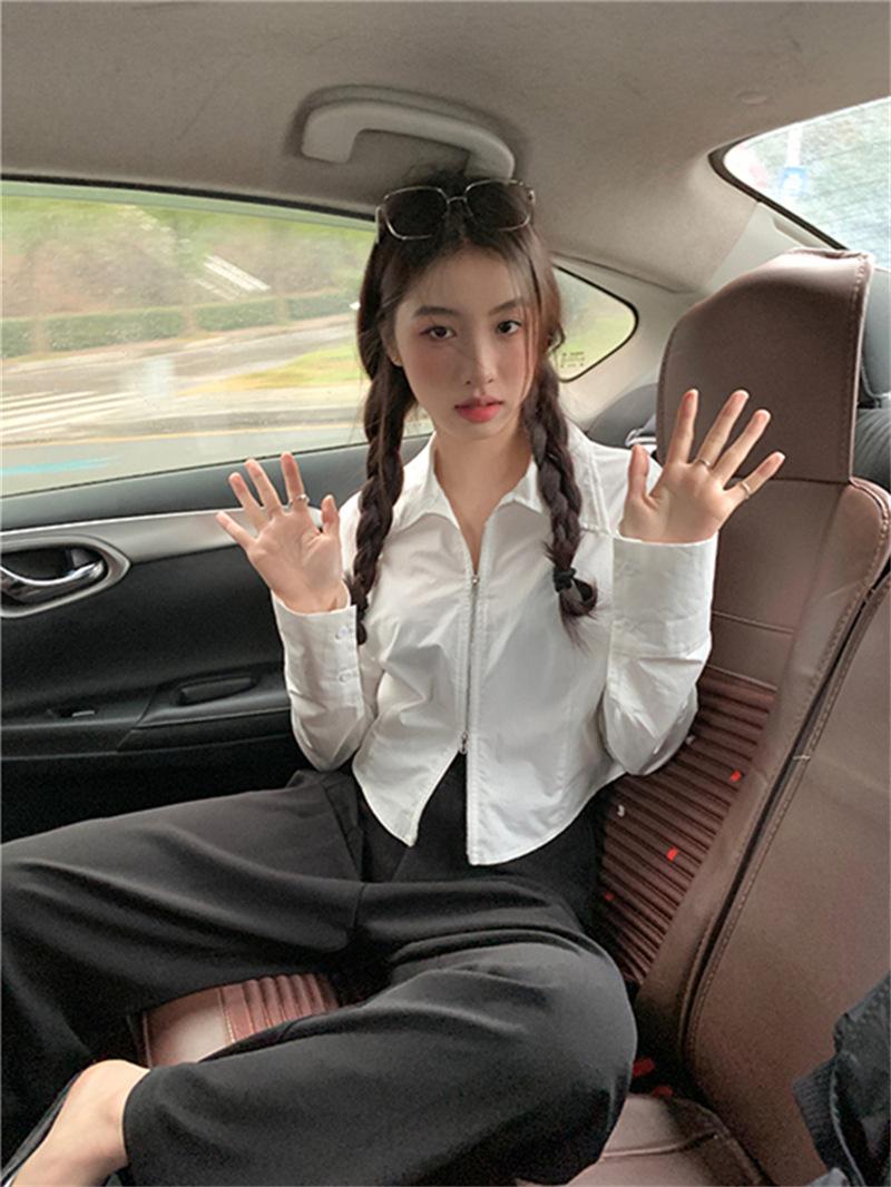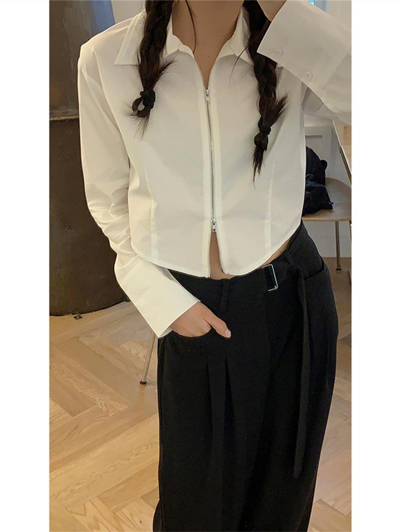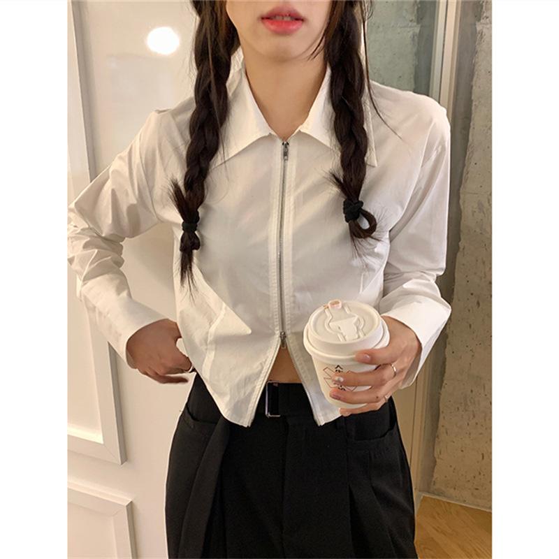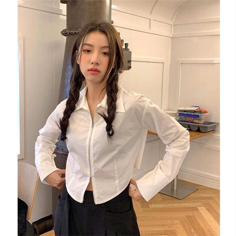 Camisa blanca de manga larga para mujer, estilo coreano, diseño de nicho, nueva llegada de otoño, prenda apilada, top con doble cremallera que combina con todo para comercio exterior