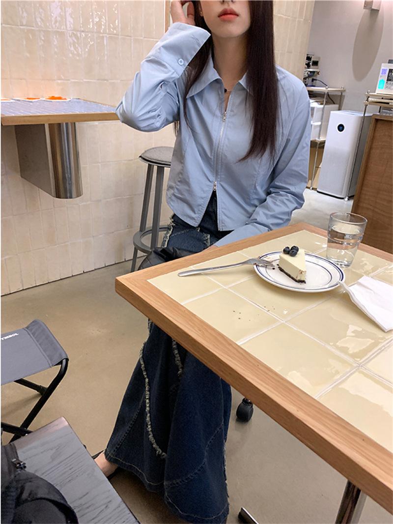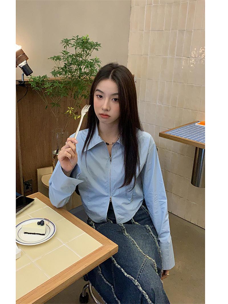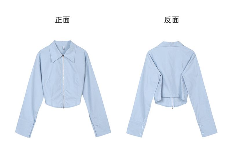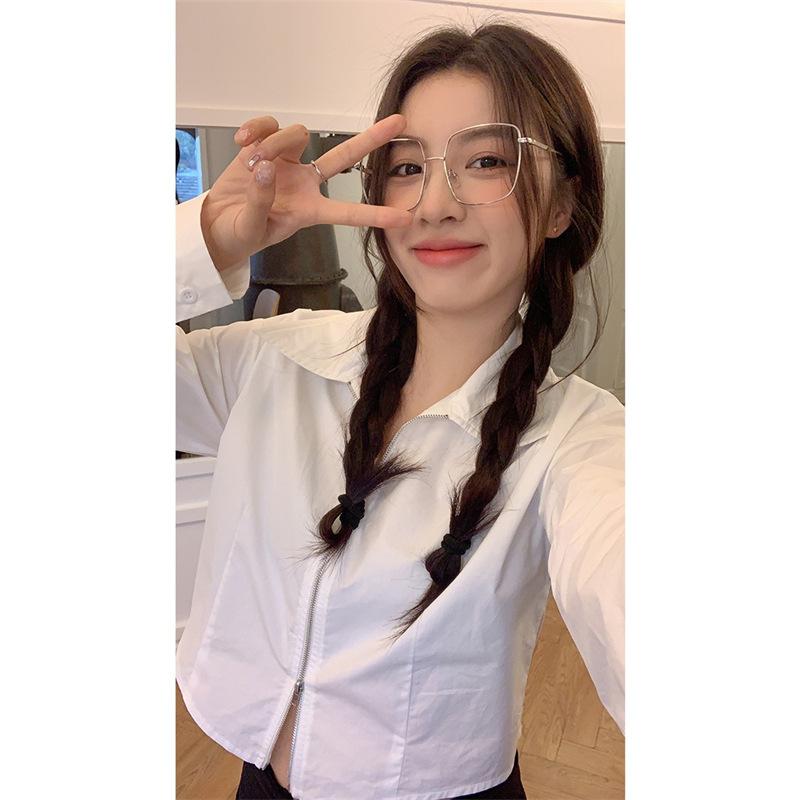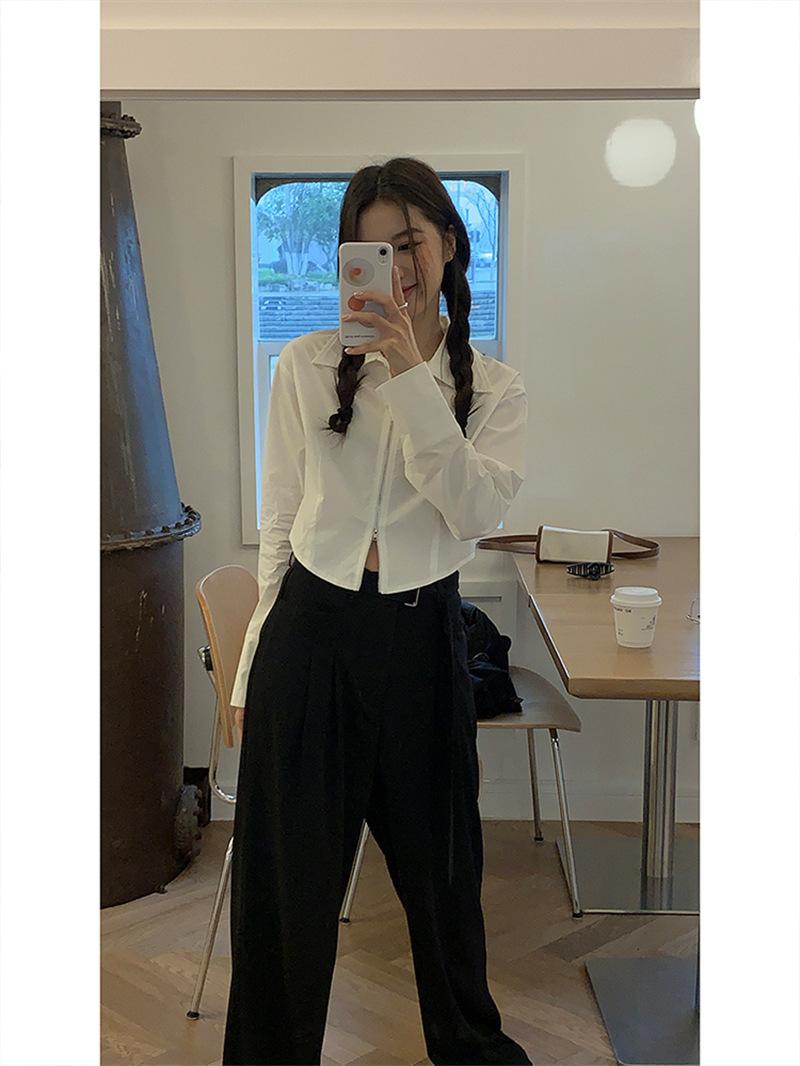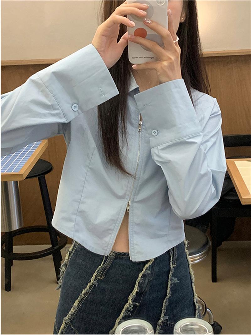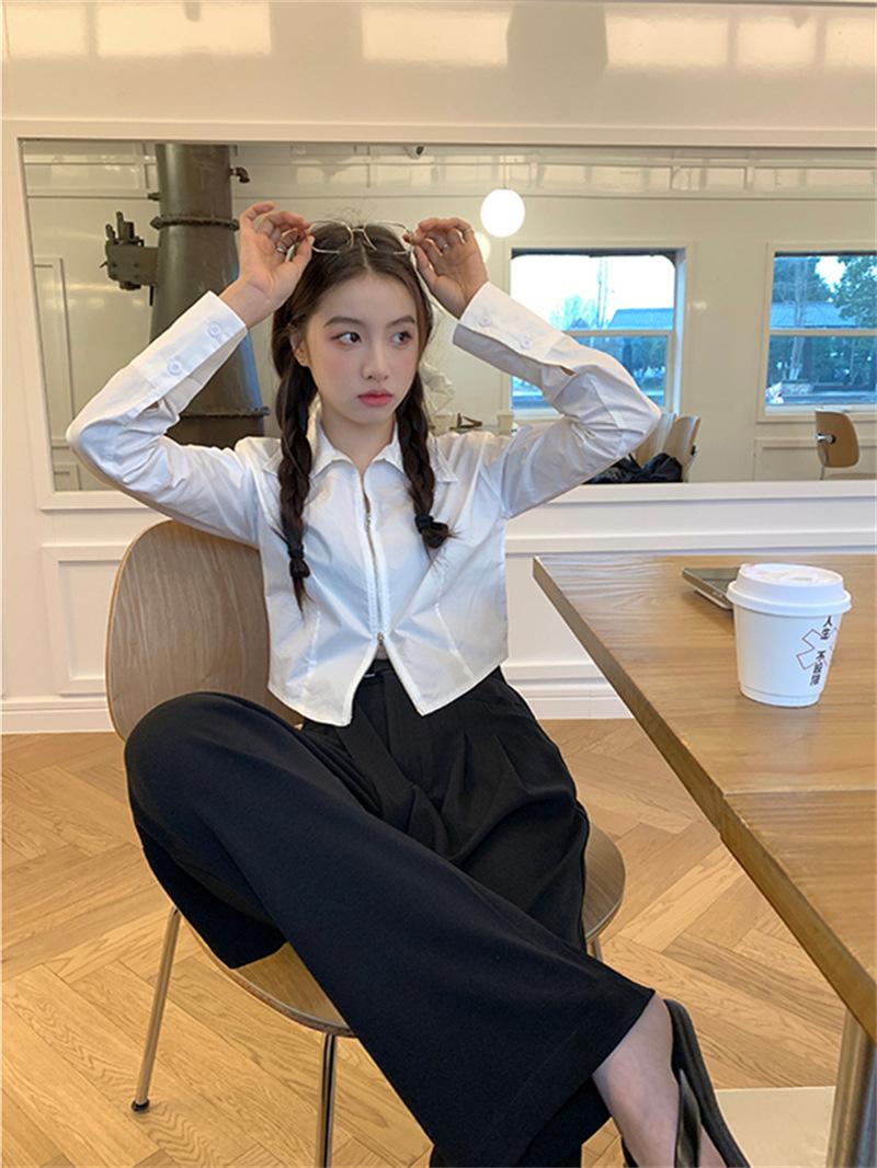 Camisa blanca de manga larga para mujer, estilo coreano, diseño de nicho, nueva llegada de otoño, prenda apilada, top con doble cremallera que combina con todo para comercio exterior