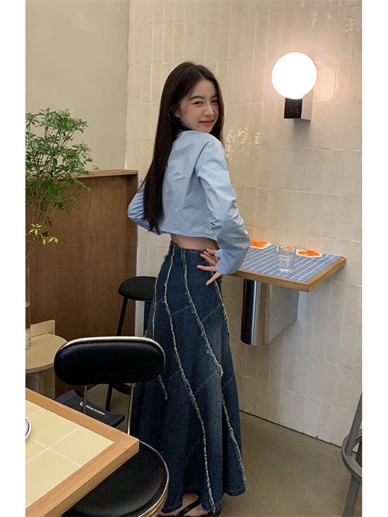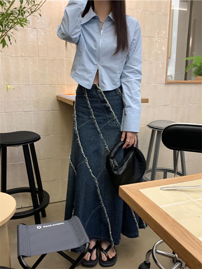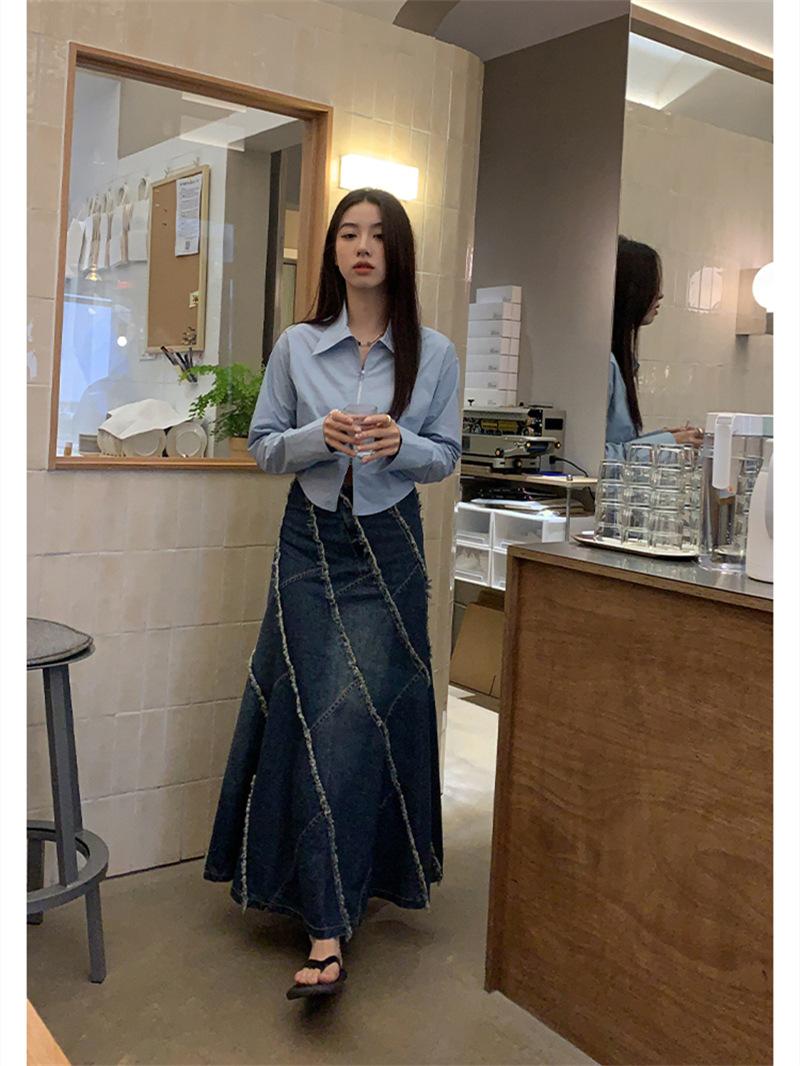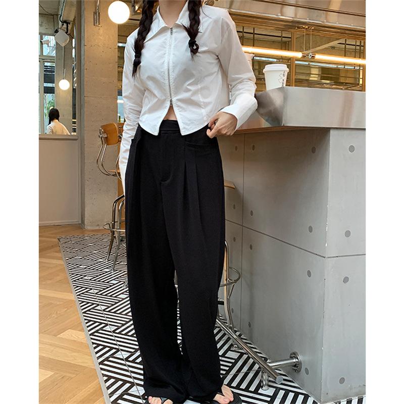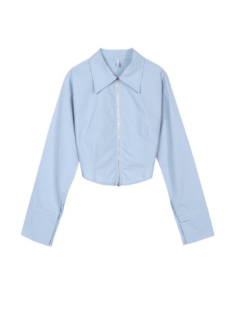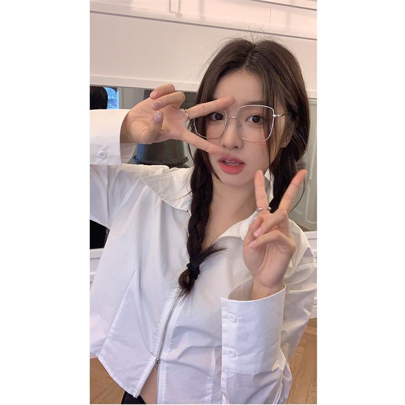 Camisa blanca de manga larga para mujer, estilo coreano, diseño de nicho, nueva llegada de otoño, prenda apilada, top con doble cremallera que combina con todo para comercio exterior