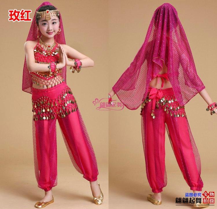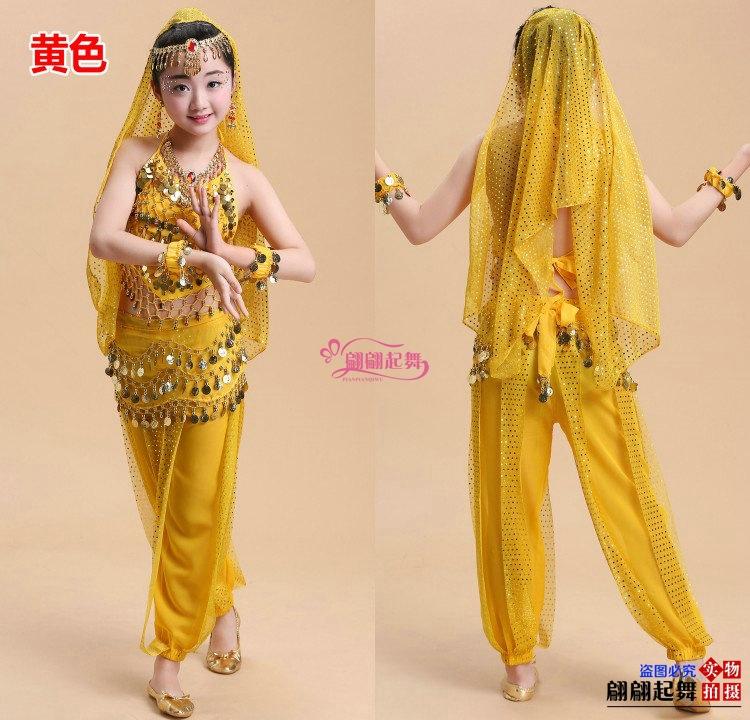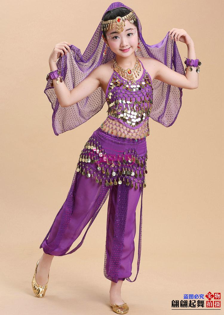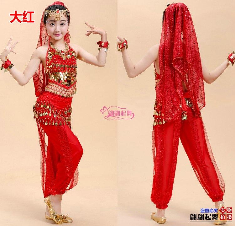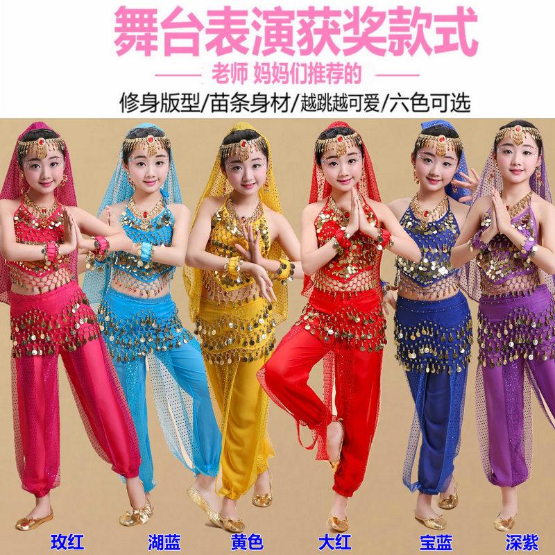 Ropa de Baile para Niños Ropa de Actuación de Danza India Danza Étnica de Xinjiang Niños Pantalones Destacados de Danza del Vientre Traje de Actuación para Práctica