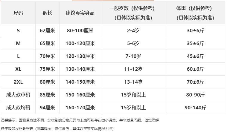 S size: suitable for height 80-110cm, M size: suitable for height 111-120cm, Size l: suitable for height 121-1...