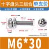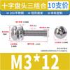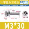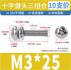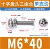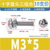 Tornillo de acero inoxidable 201 de tres combinaciones con cabeza redonda y cabeza plana cruzada, almohadilla de resorte, tornillo de tres combinaciones M3M4M5M6