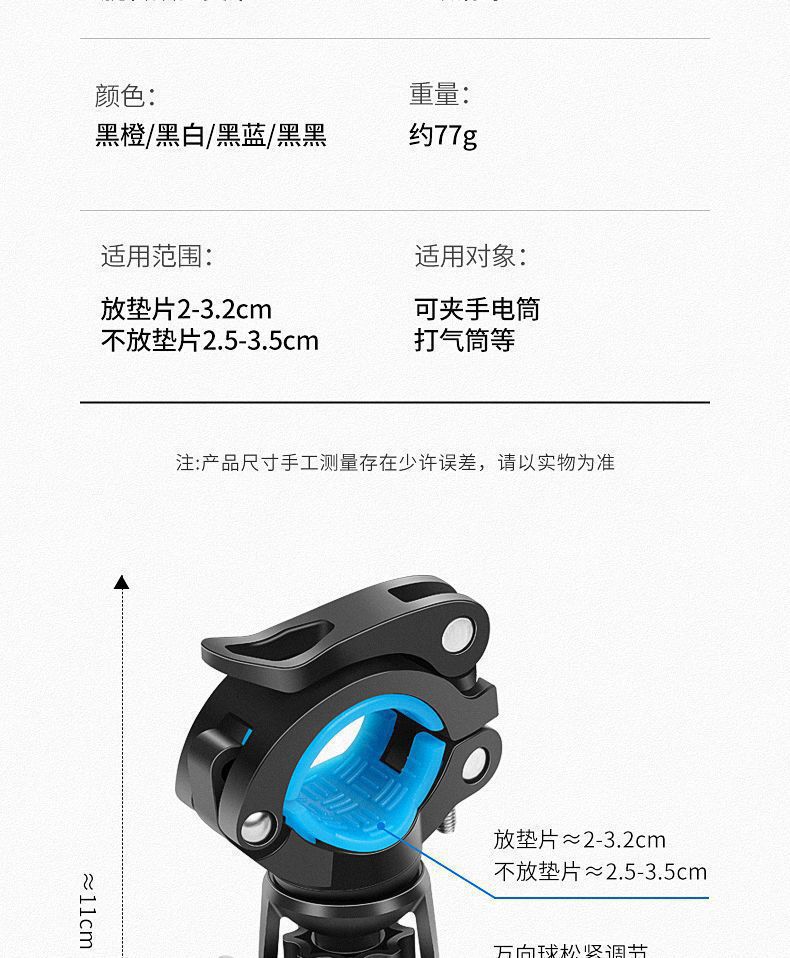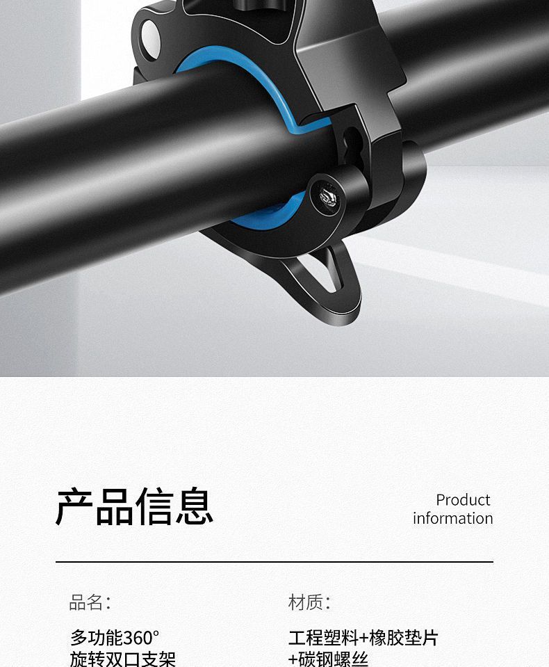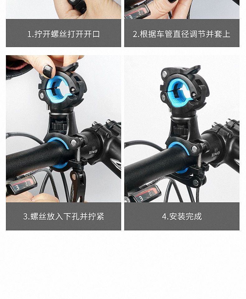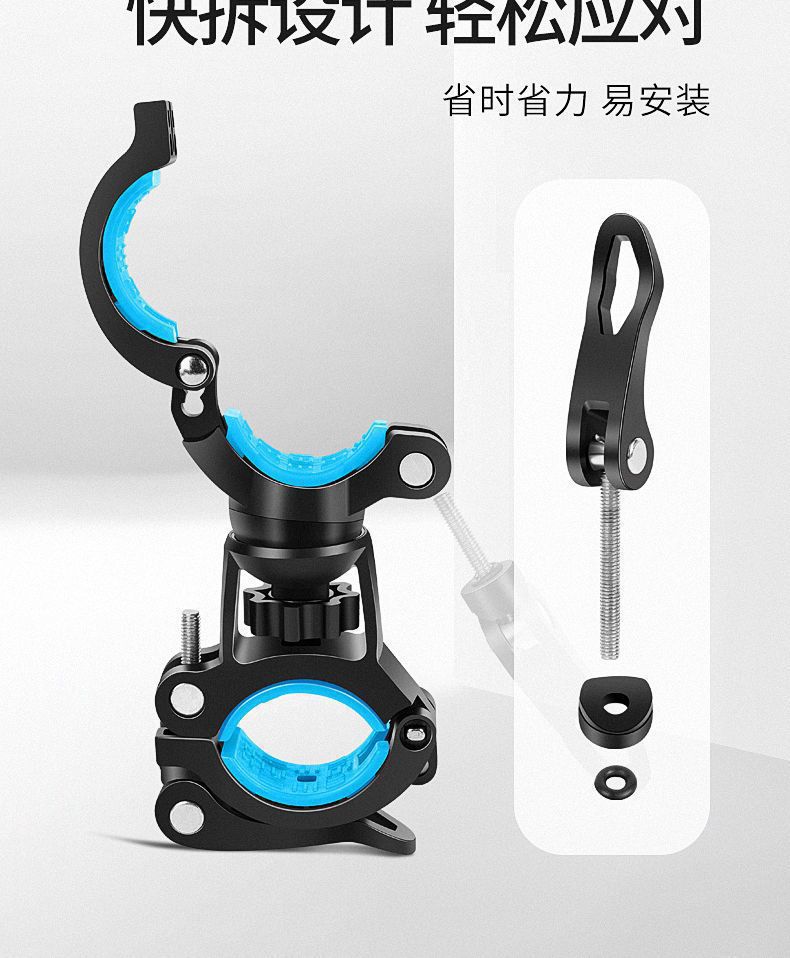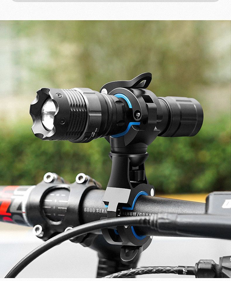 Soporte de linterna con clip para lámpara de bicicleta, soporte de lámpara frontal con bola giratoria universal de 720 grados, soporte de lámpara multifunción para bicicleta de montaña
