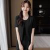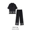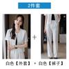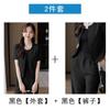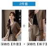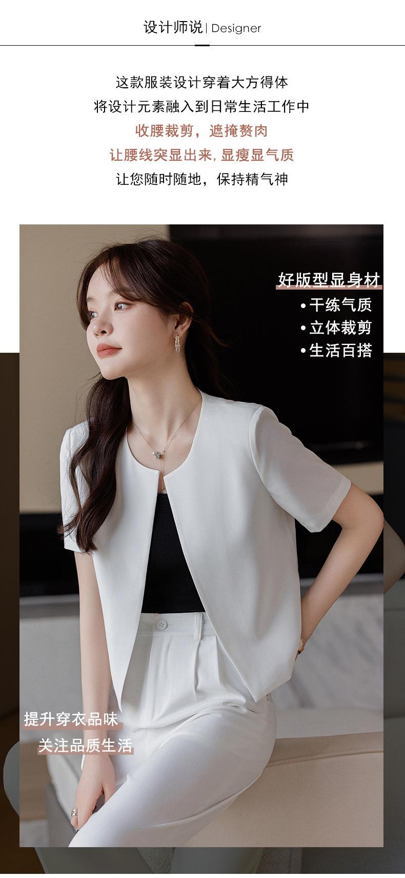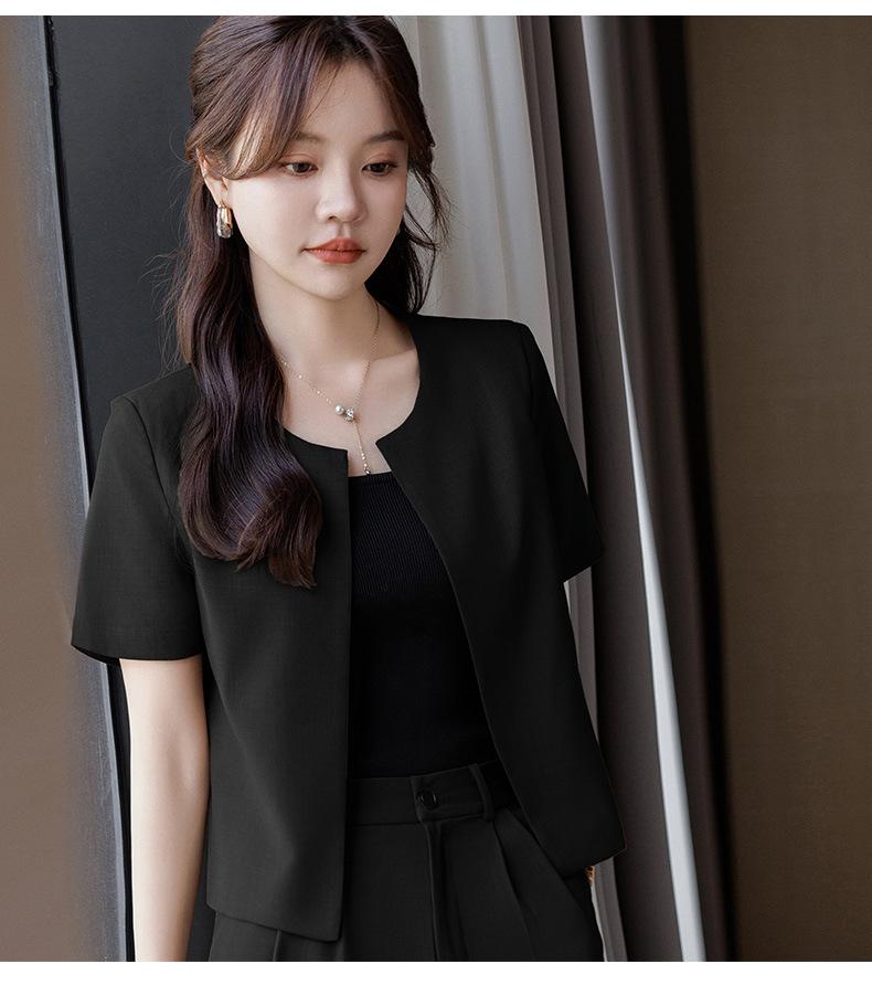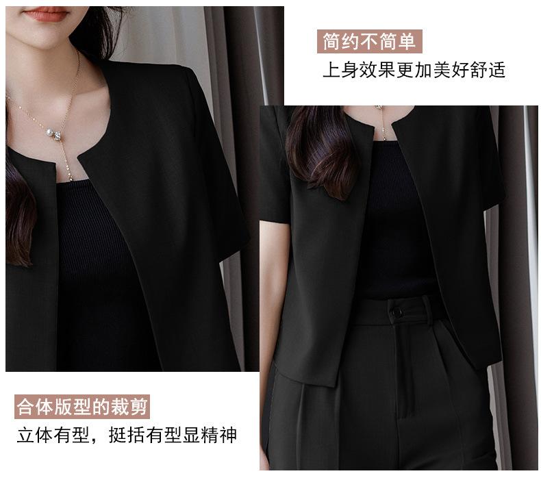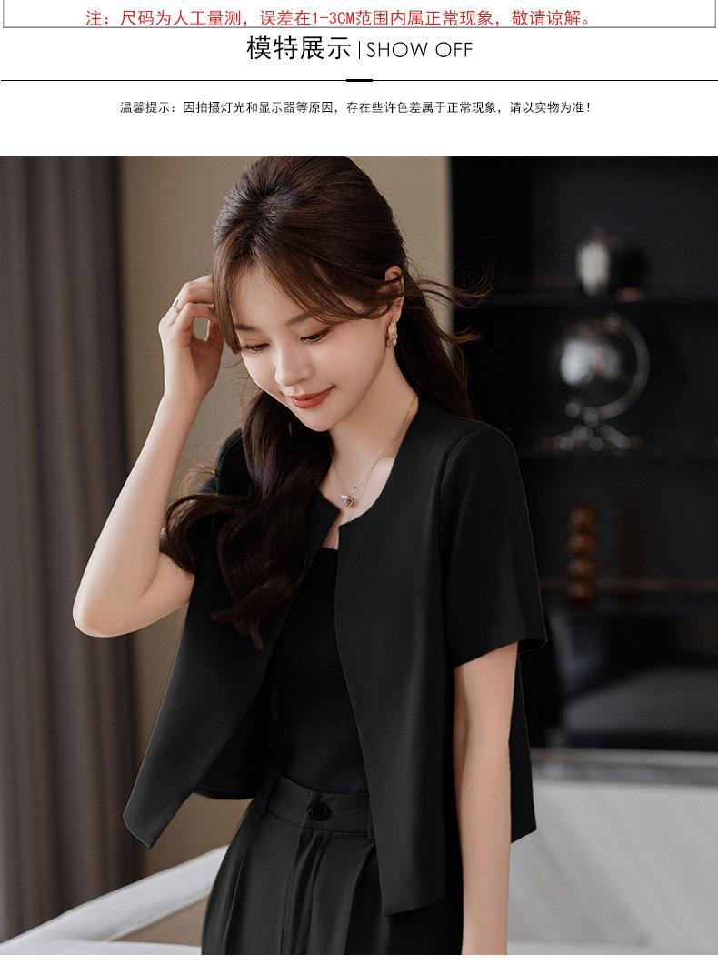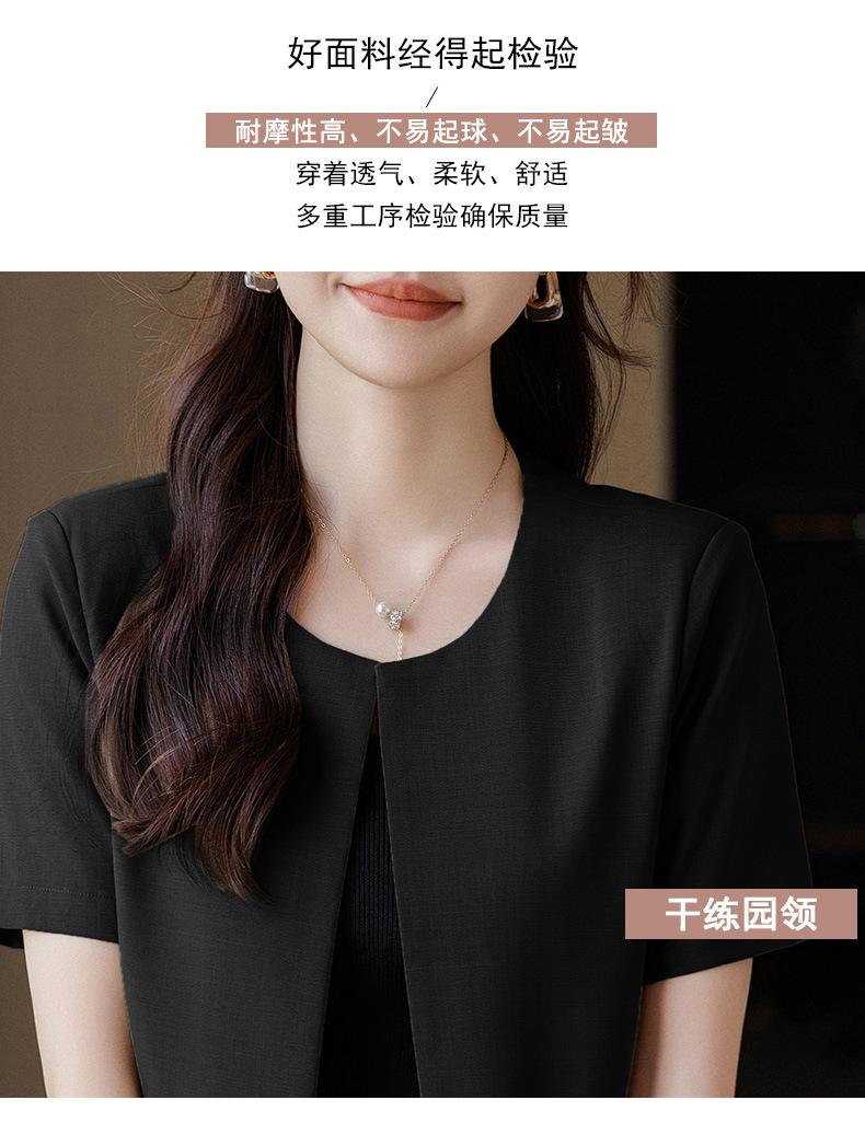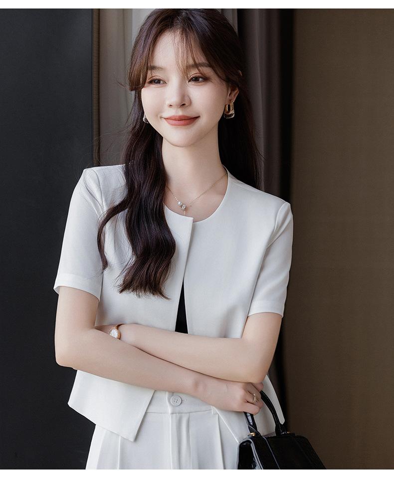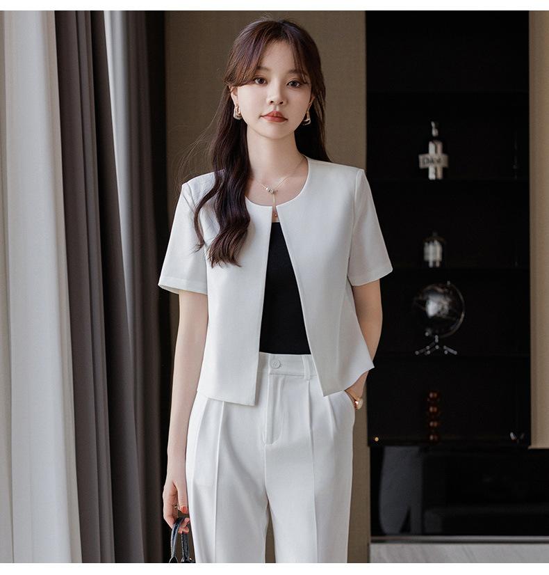 Verano 2024 Nuevo abrigo corto marrón de manga corta sin cuello, pantalones de mujer, traje de dos piezas, moda sencilla.