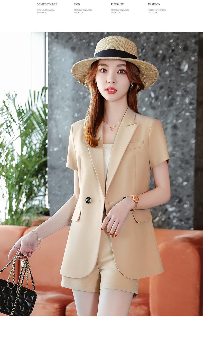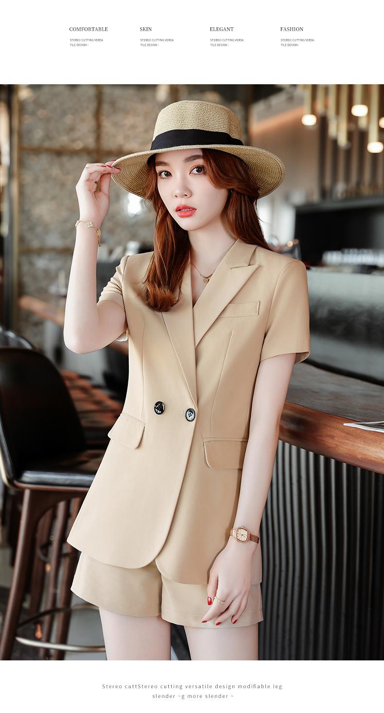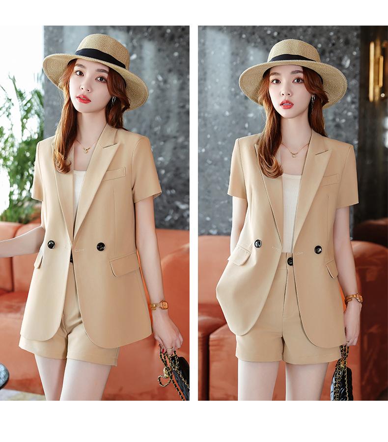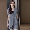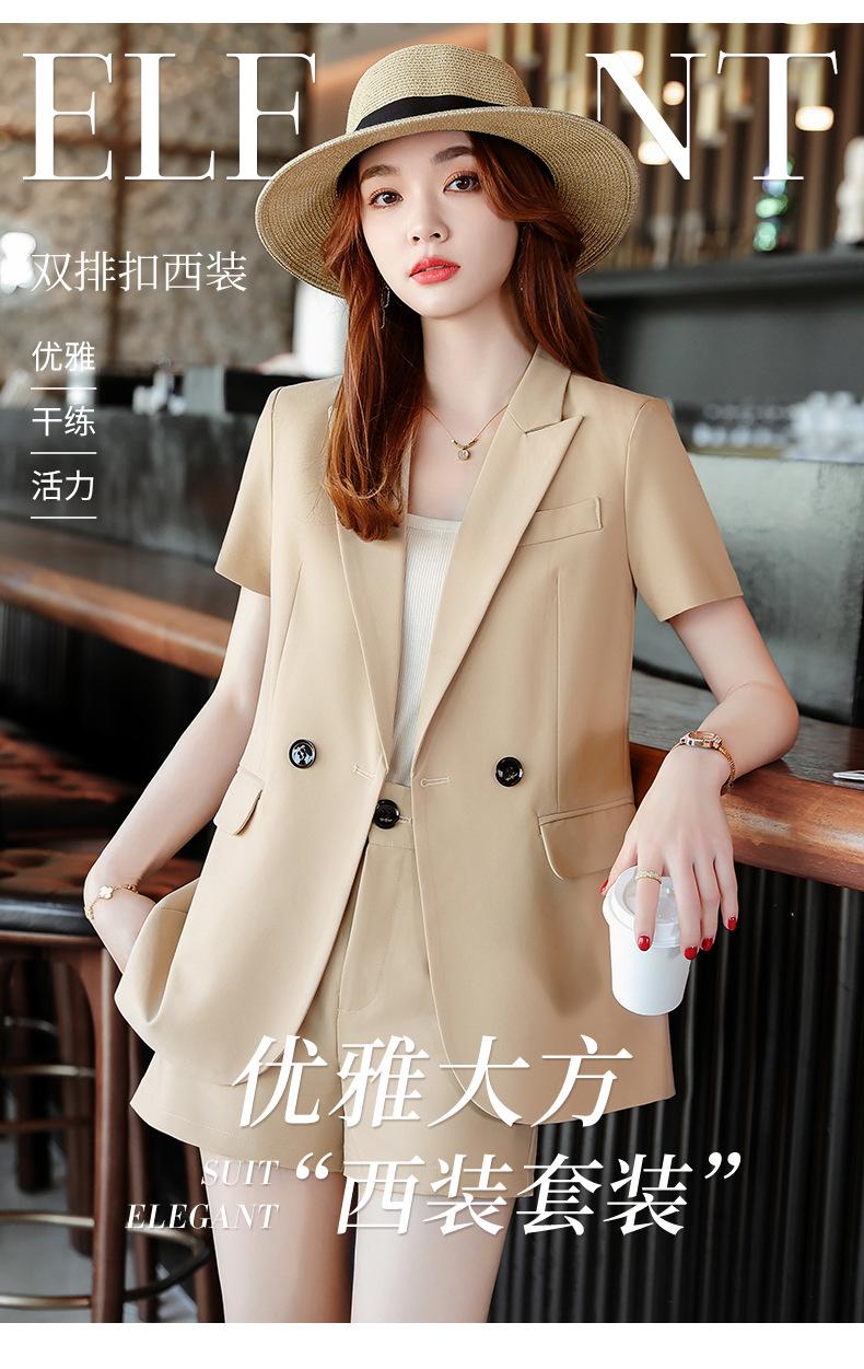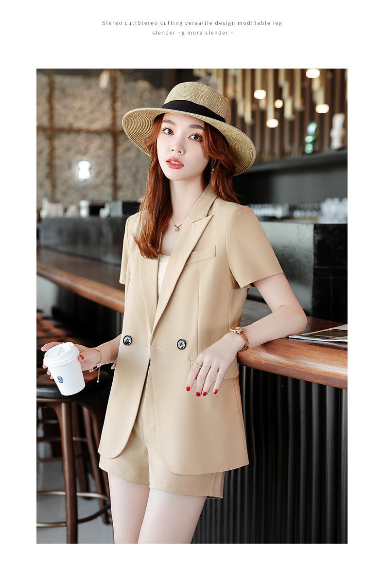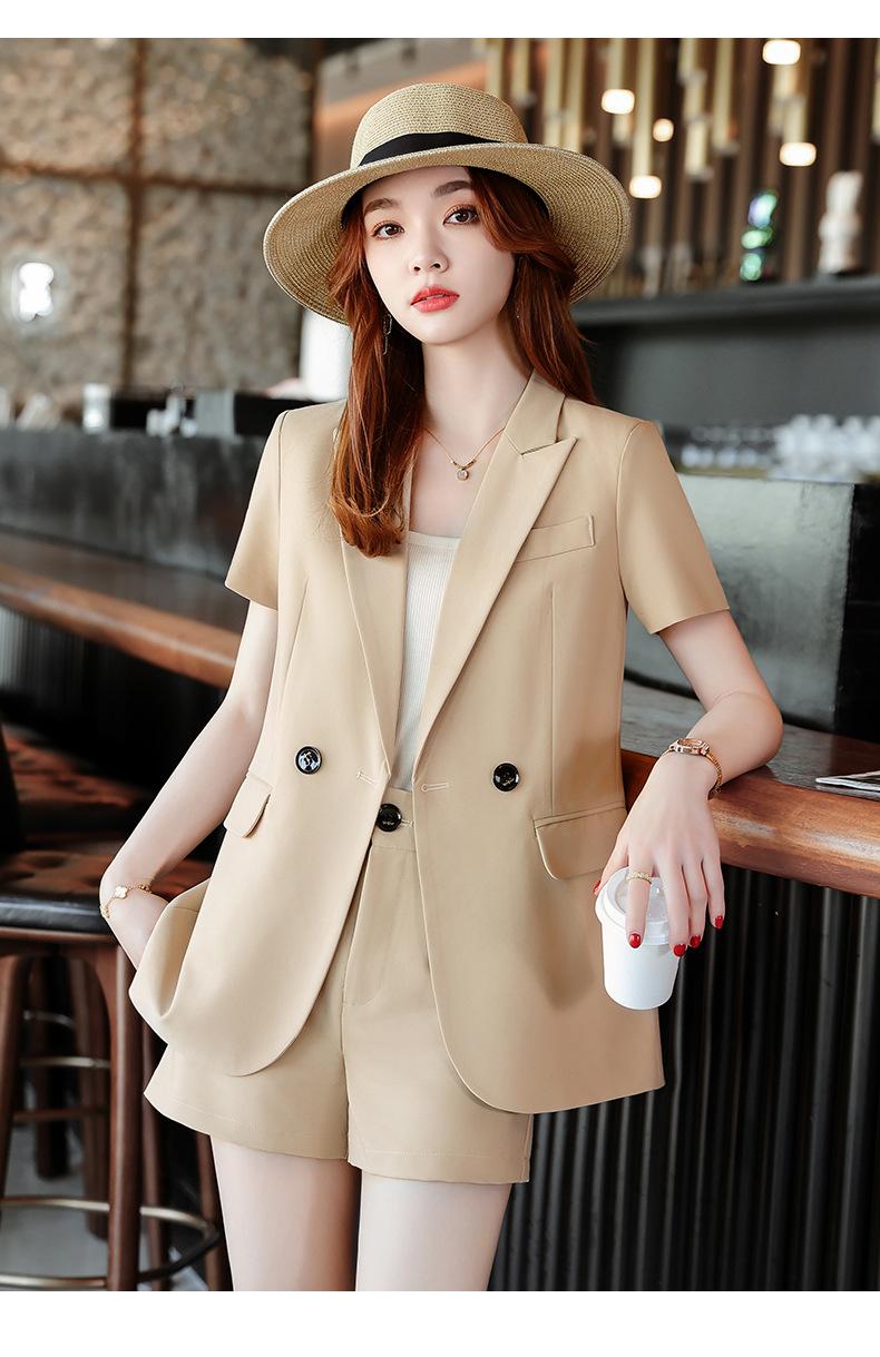 2024 Verano nuevo manga corta caqui profesional pequeño traje cuello chaqueta mujer pantalones cortos traje de dos piezas moda moda