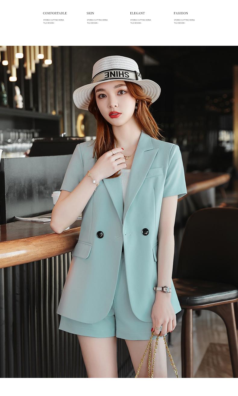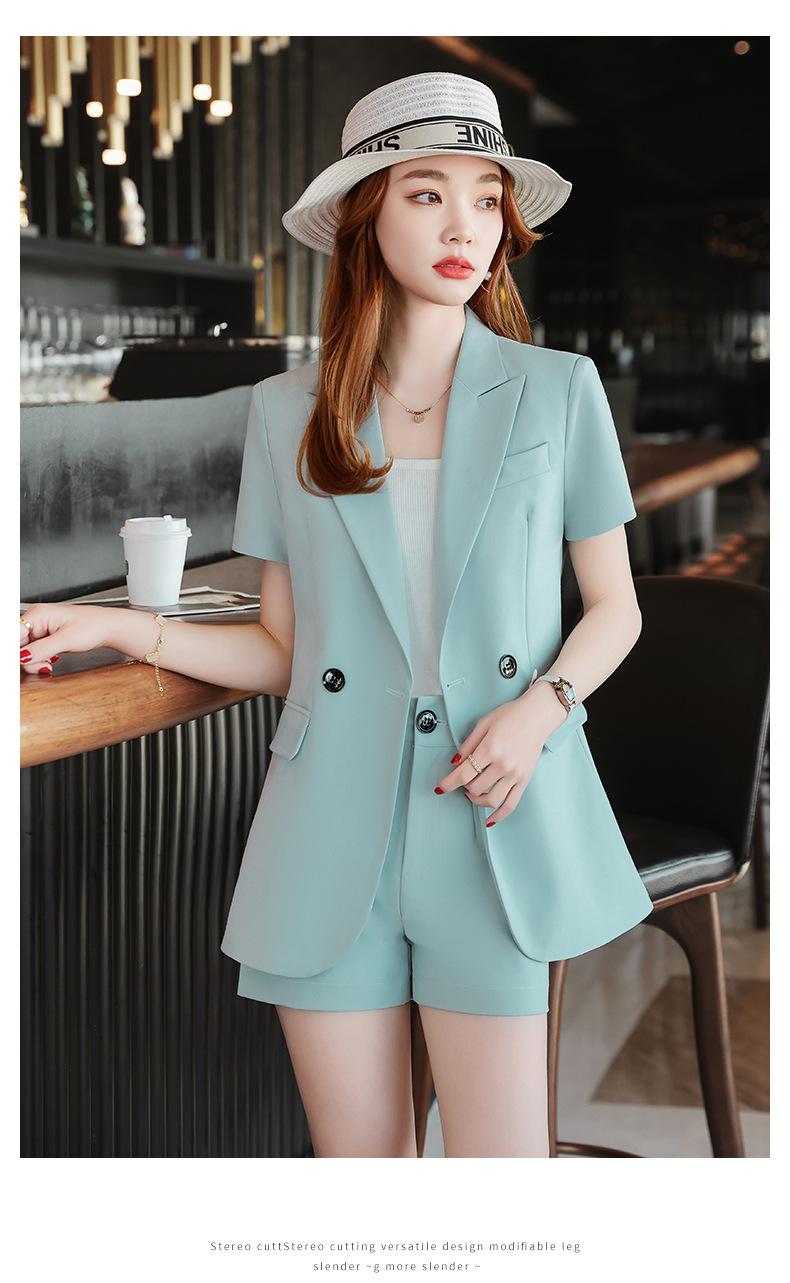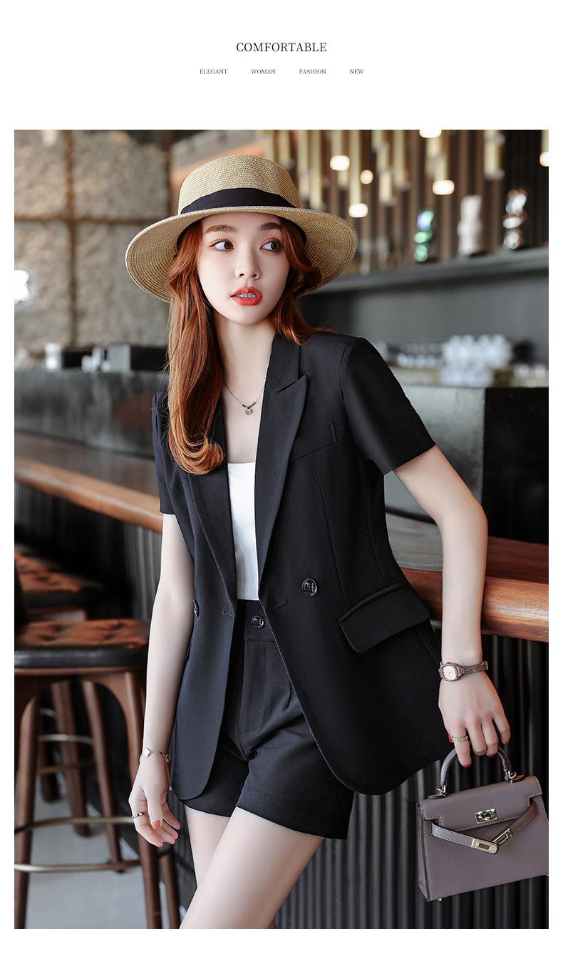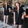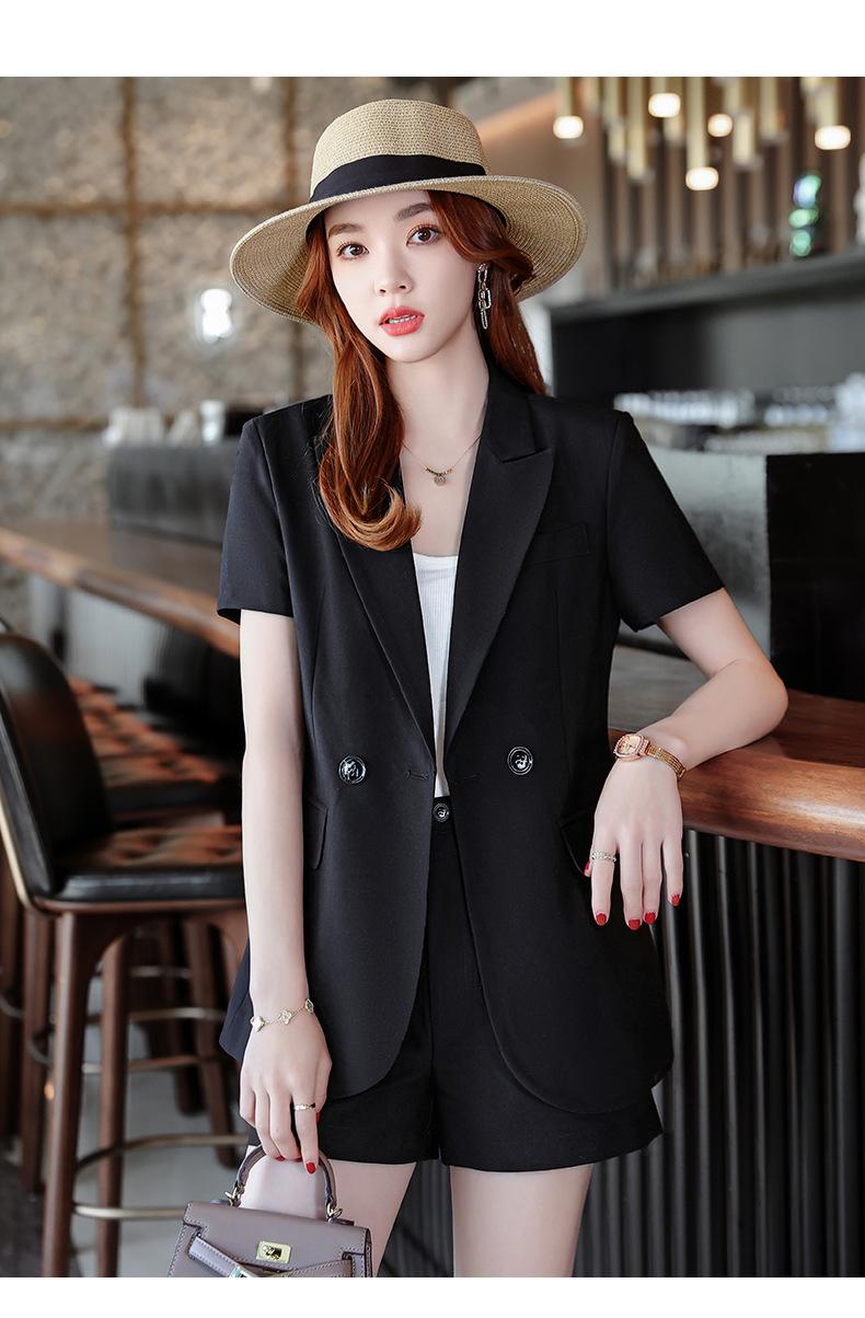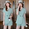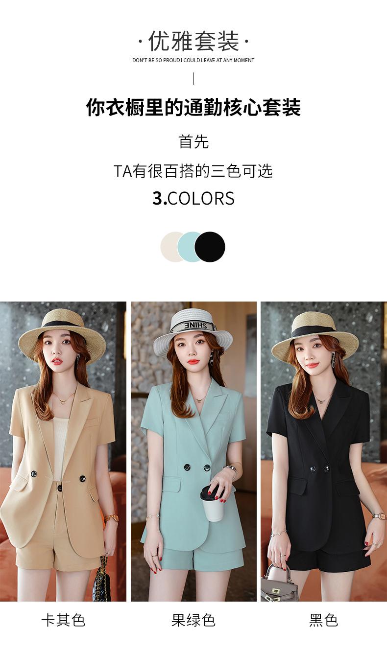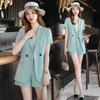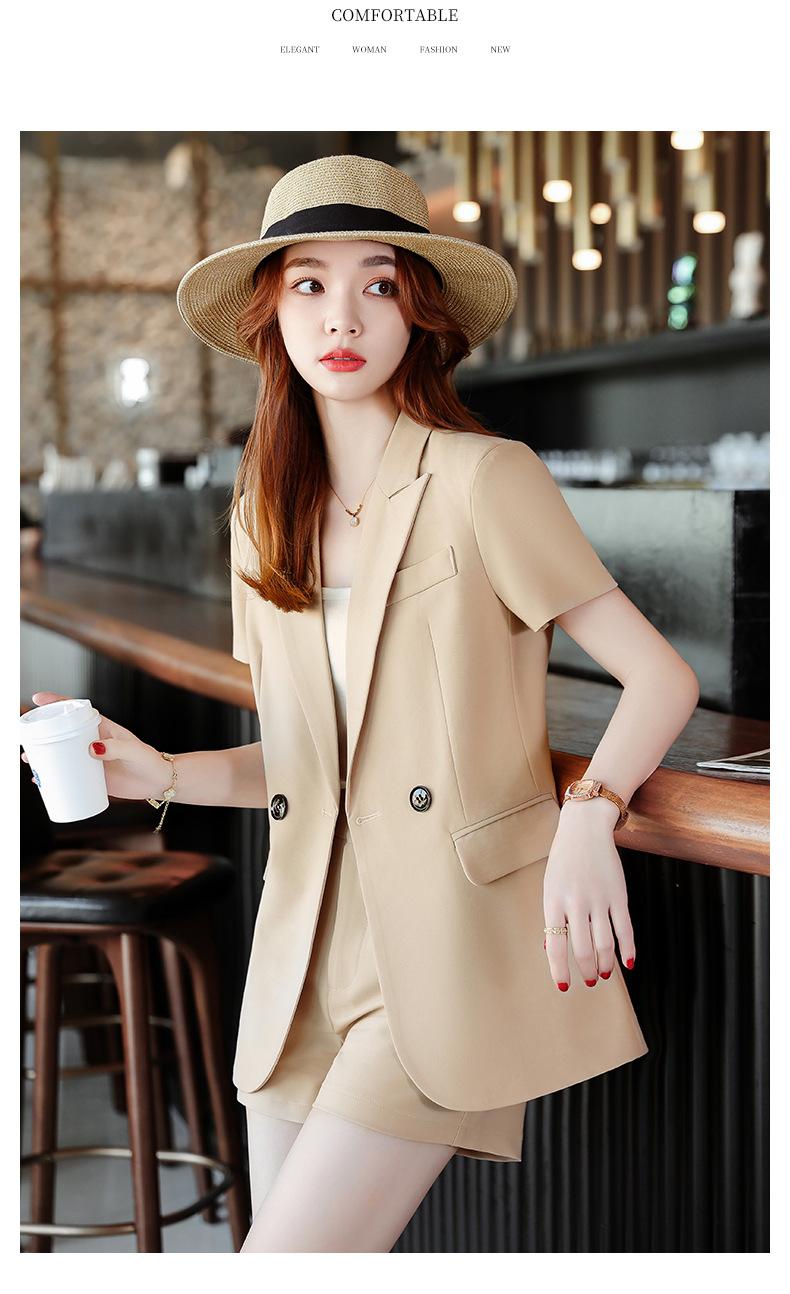 2024 Verano nuevo manga corta caqui profesional pequeño traje cuello chaqueta mujer pantalones cortos traje de dos piezas moda moda