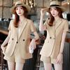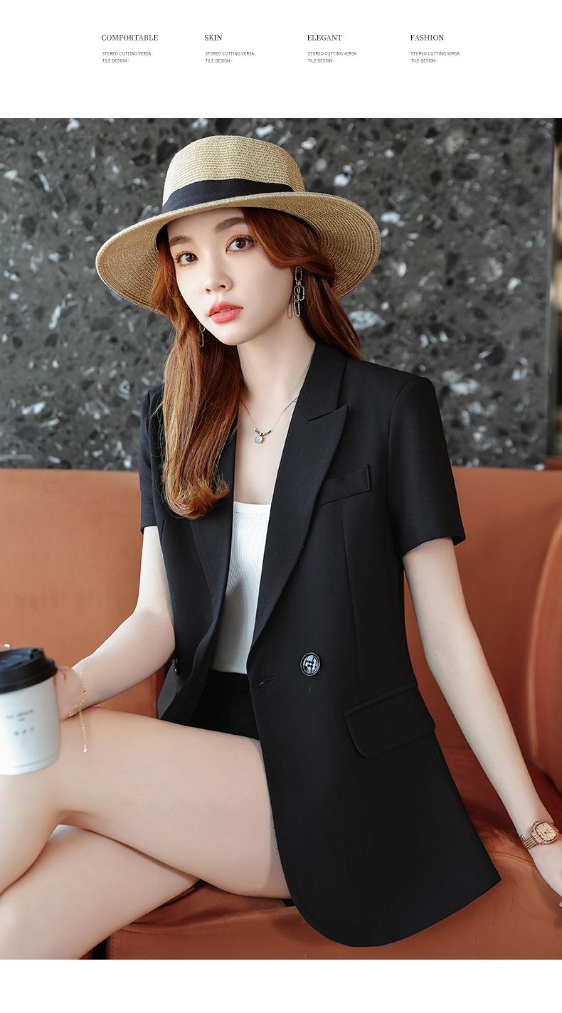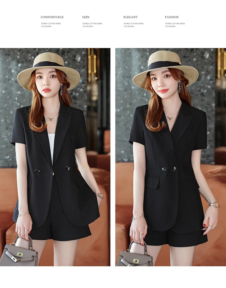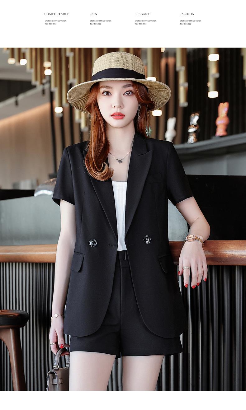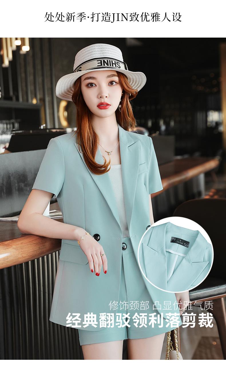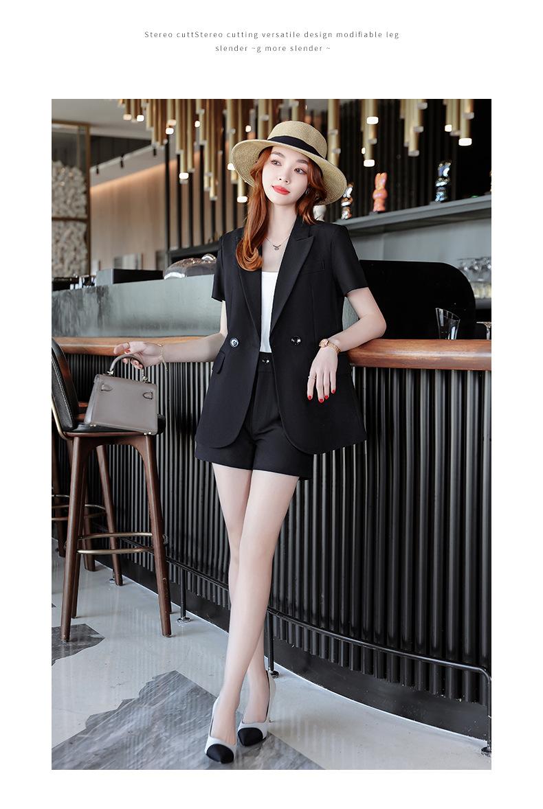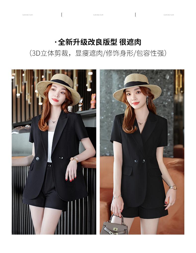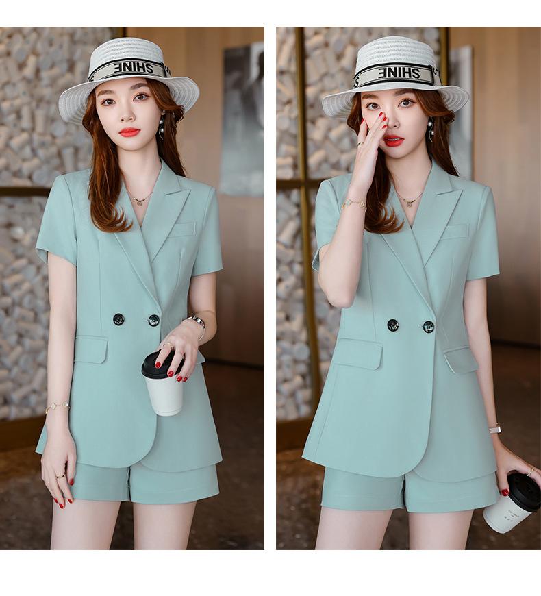 2024 Verano nuevo manga corta caqui profesional pequeño traje cuello chaqueta mujer pantalones cortos traje de dos piezas moda moda