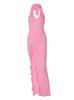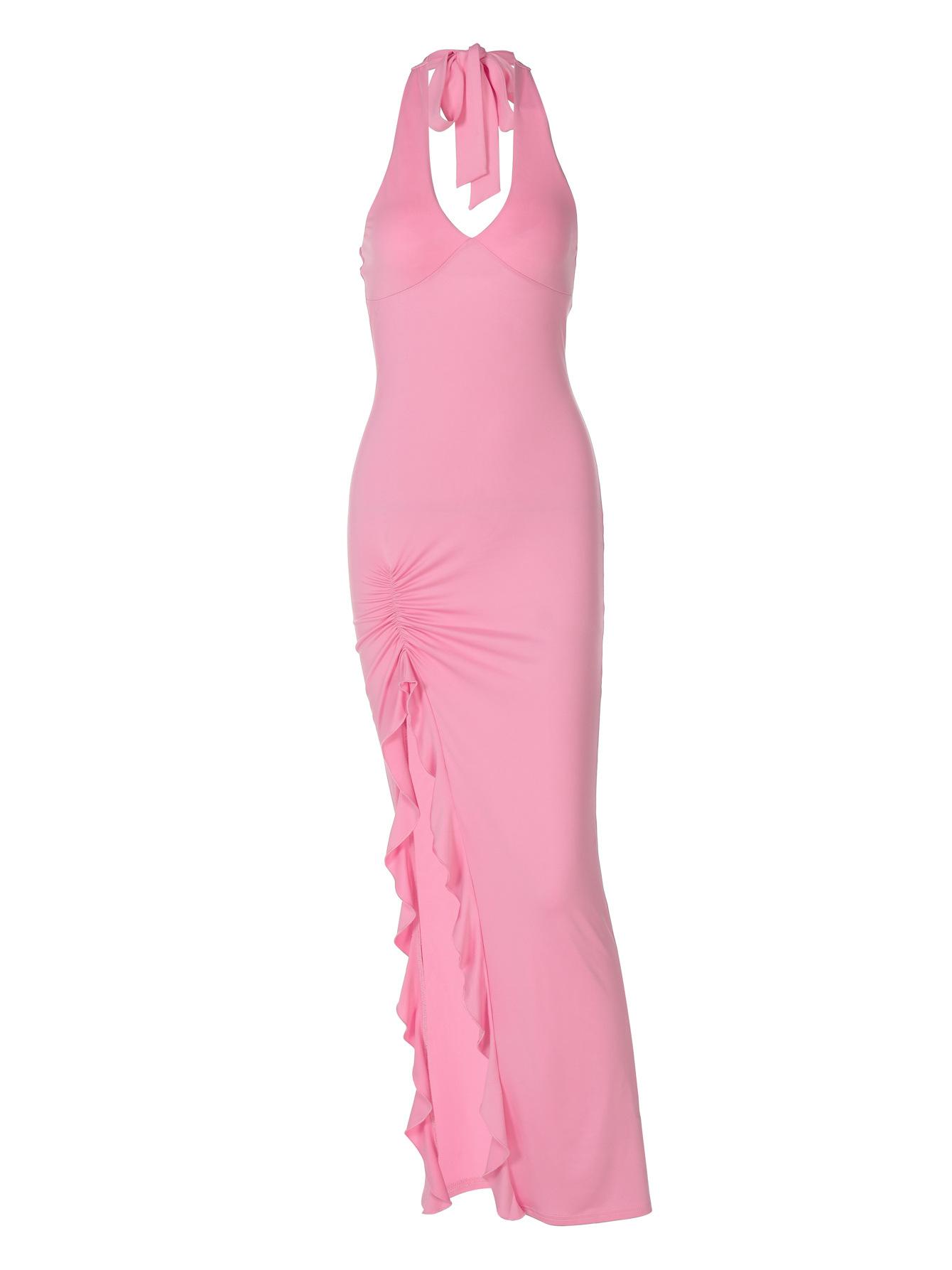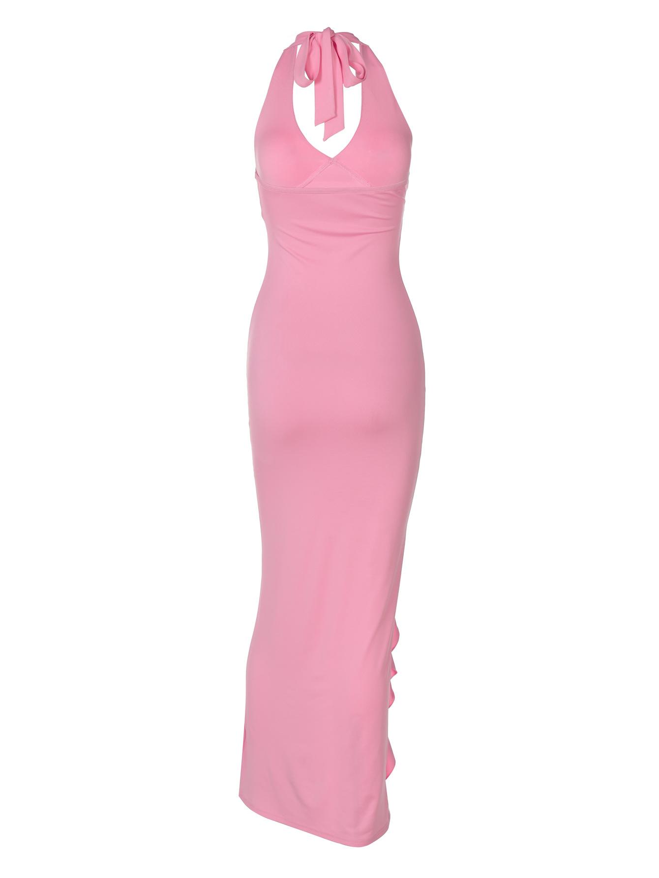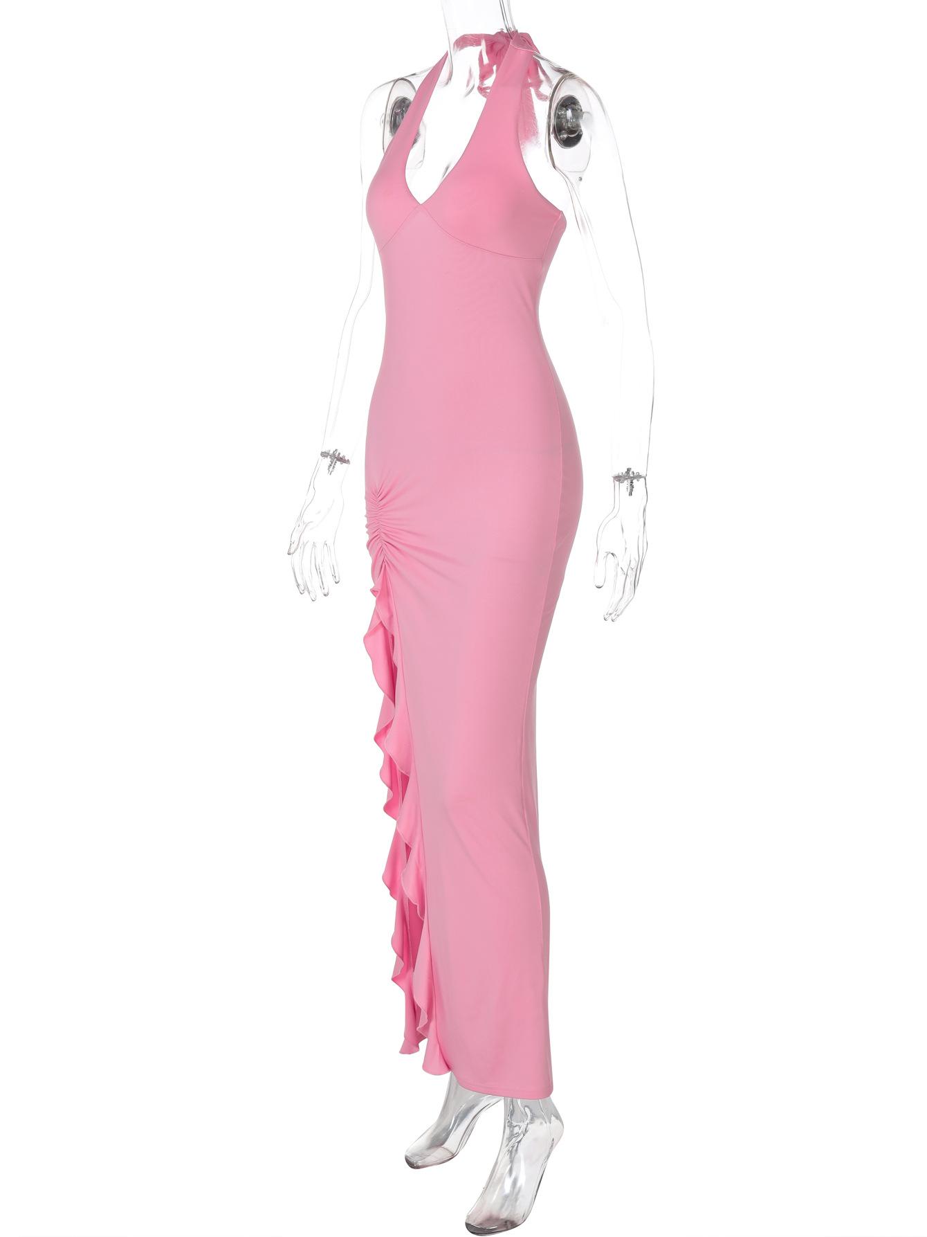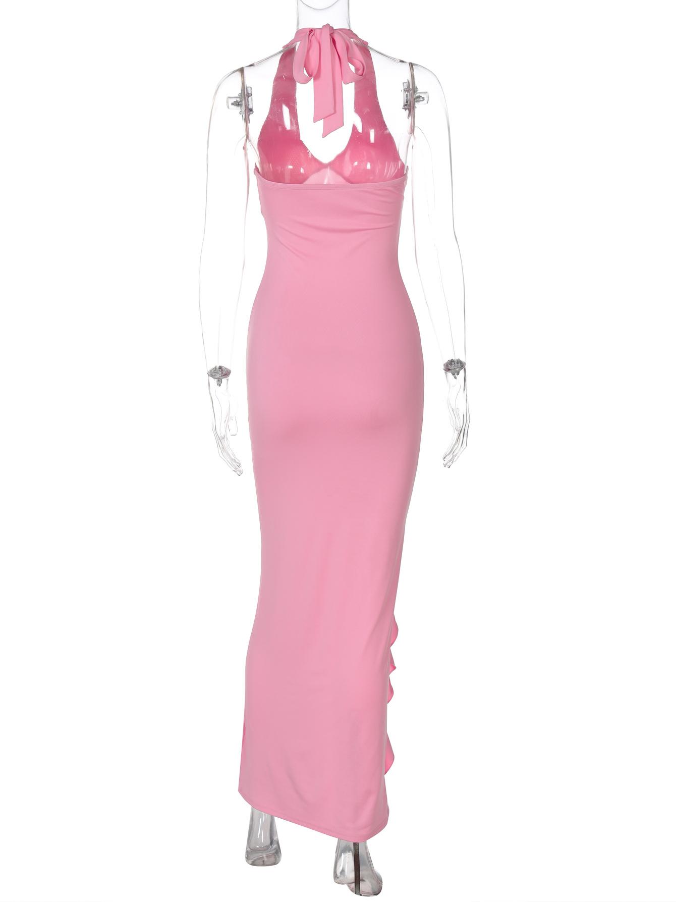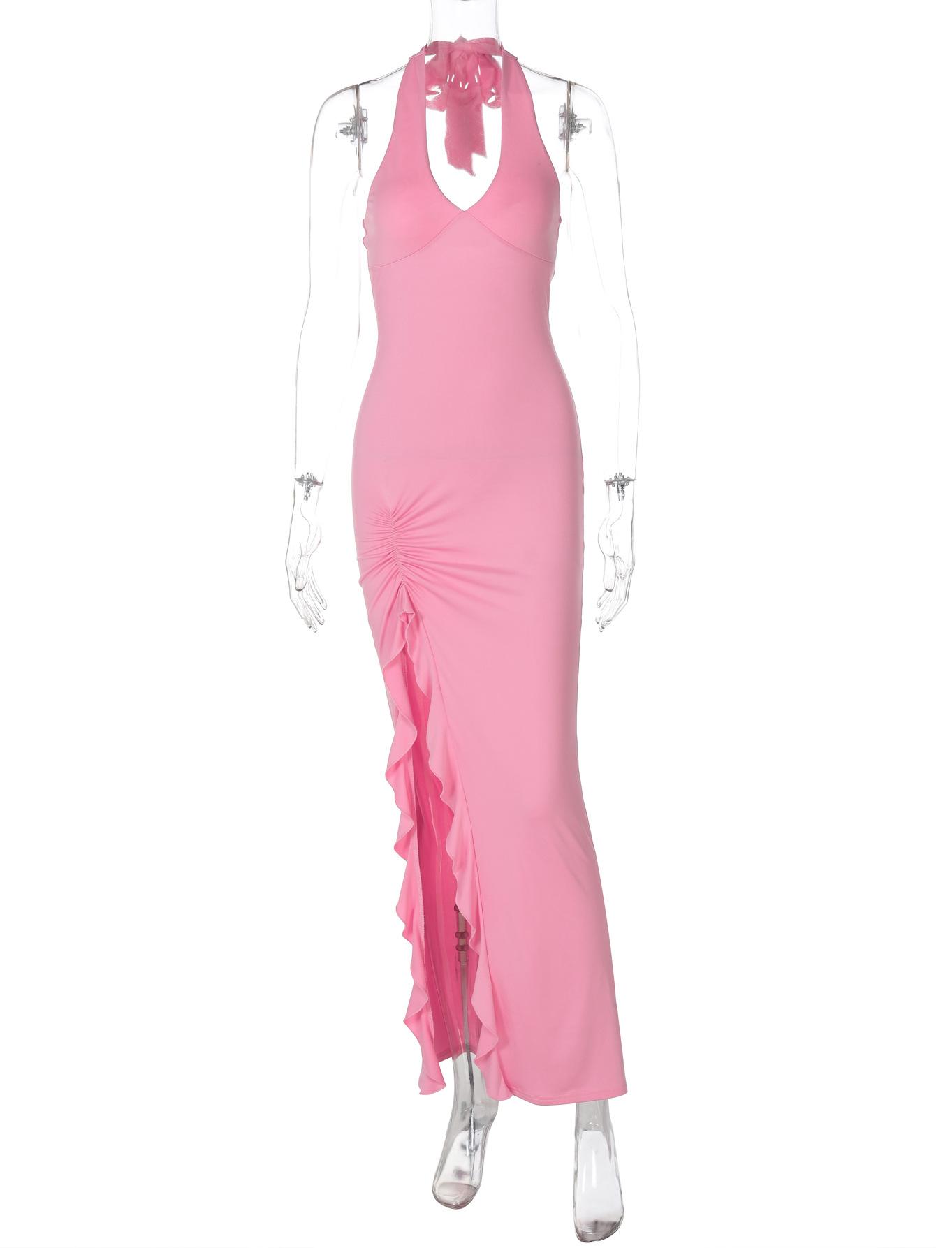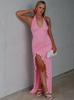 Falda cruzada europea y americana, verano 2025, nuevo vestido largo con cuello en V, vestido sexy sin espalda con abertura, venta al por mayor para mujeres