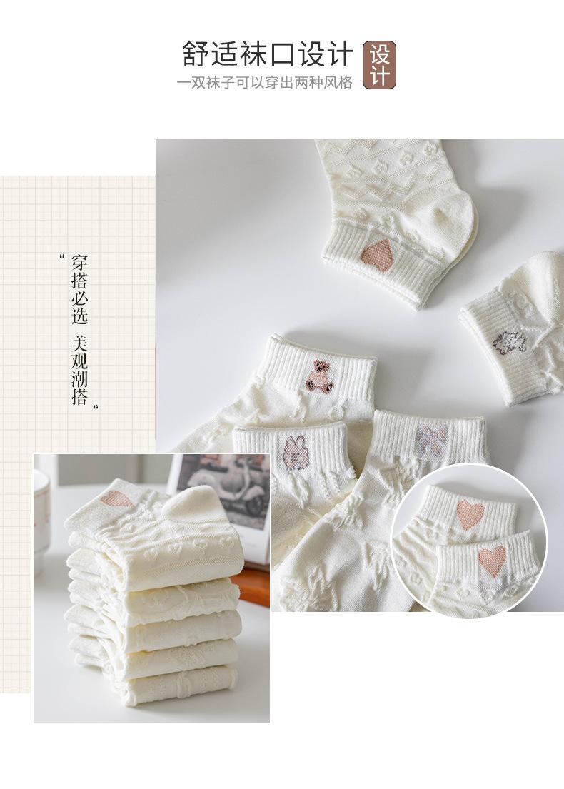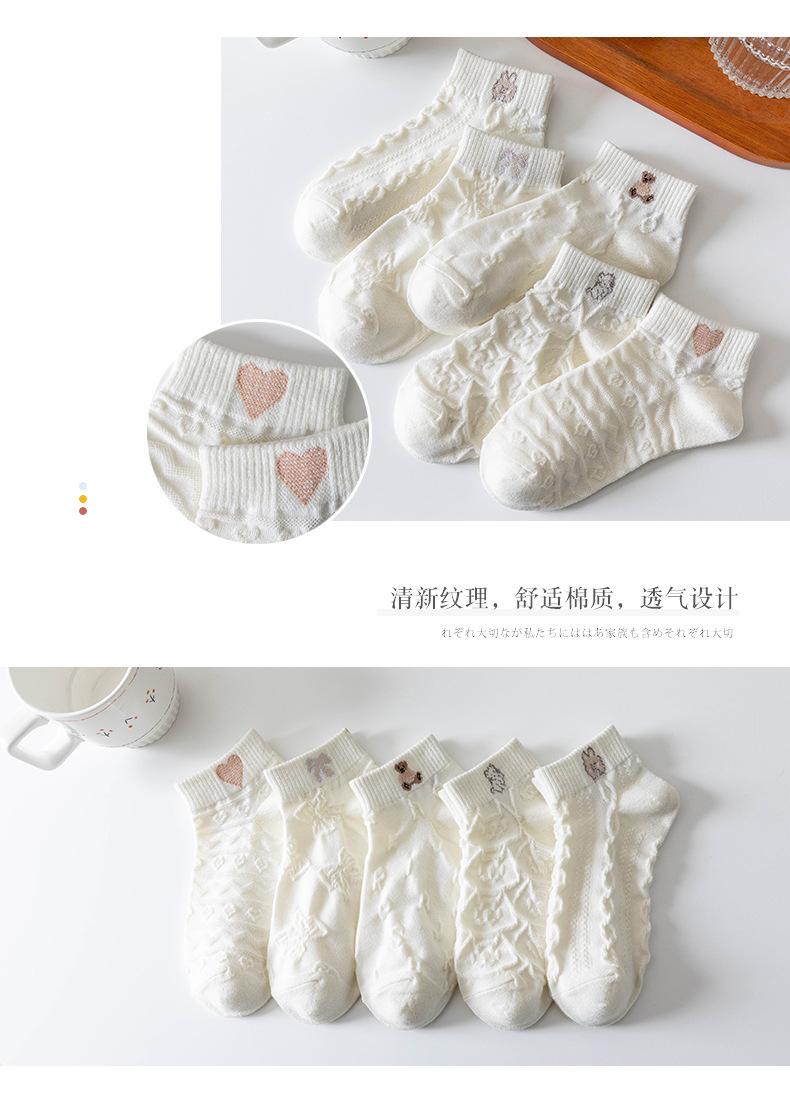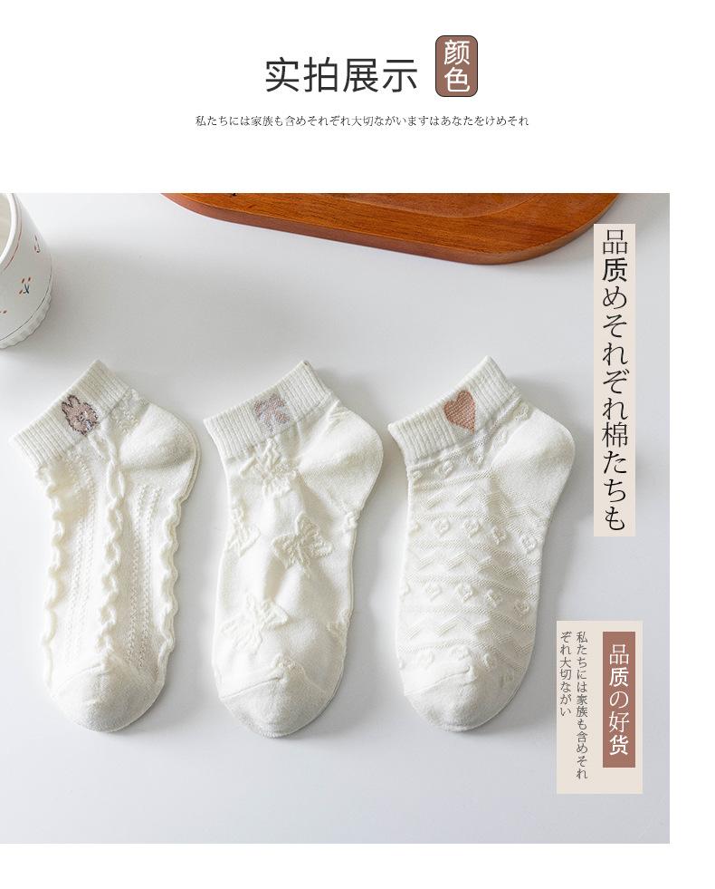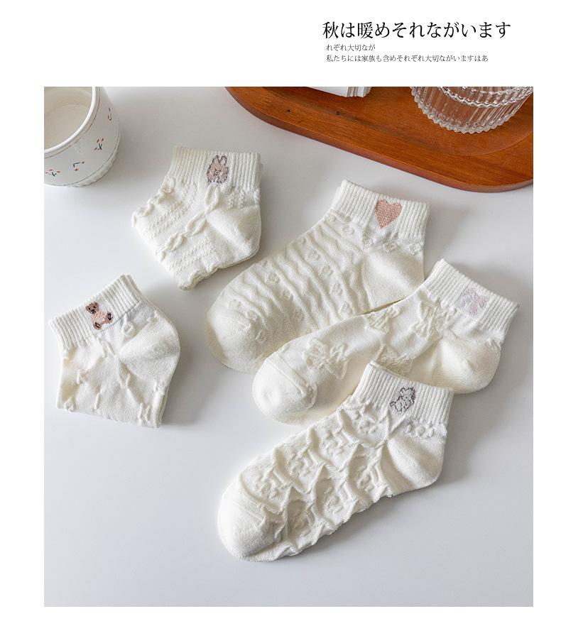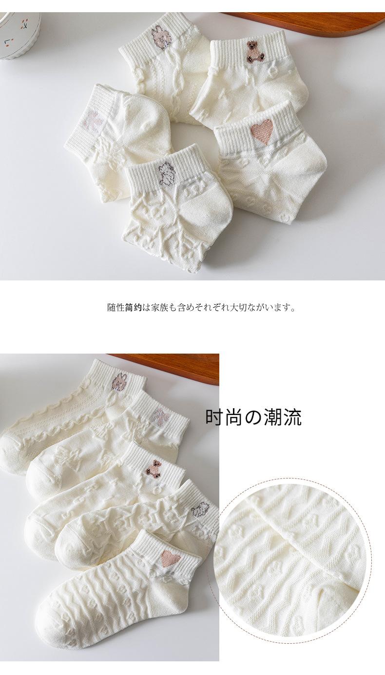 Calcetines de Barco de Color Puro Off-White Calcetines de Primavera y Verano Finos de Boca Baja Oso Corazón Estilo K Estilo Preppy Calcetines Ins para Mujer