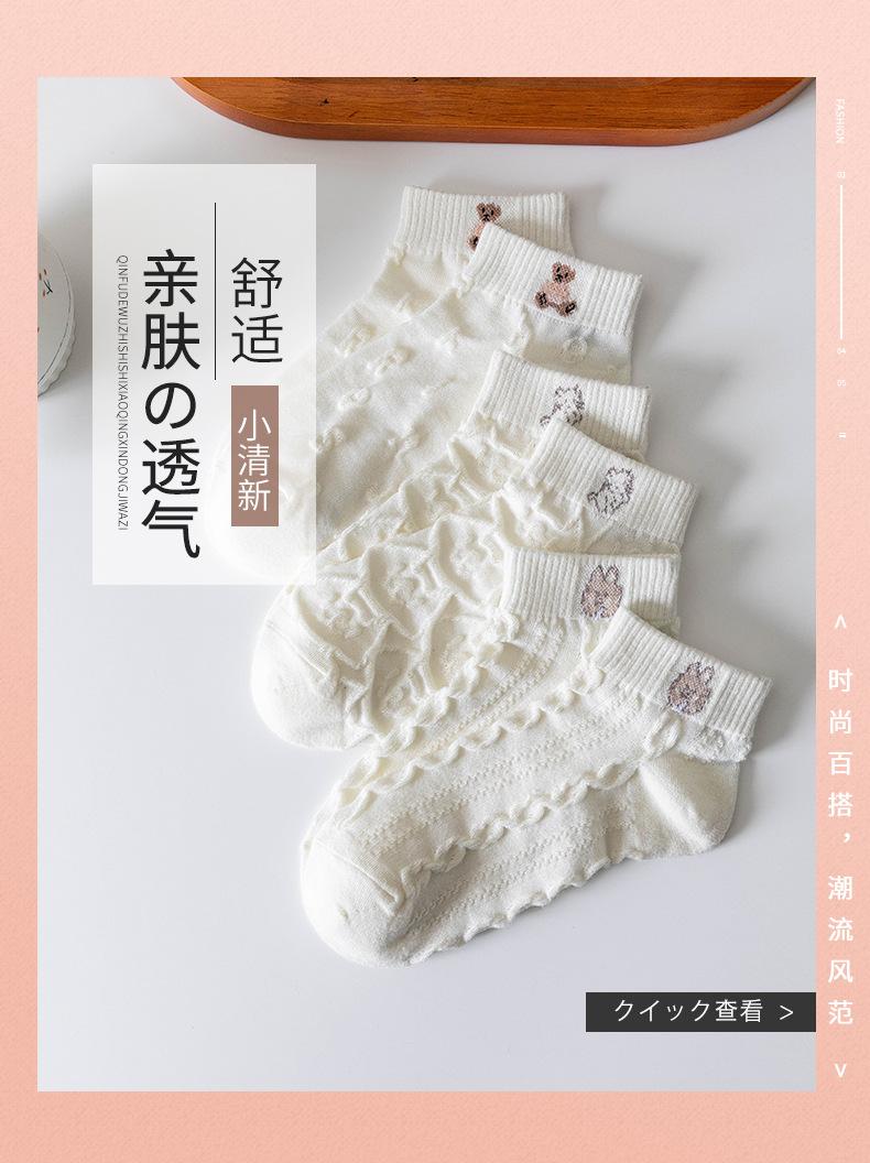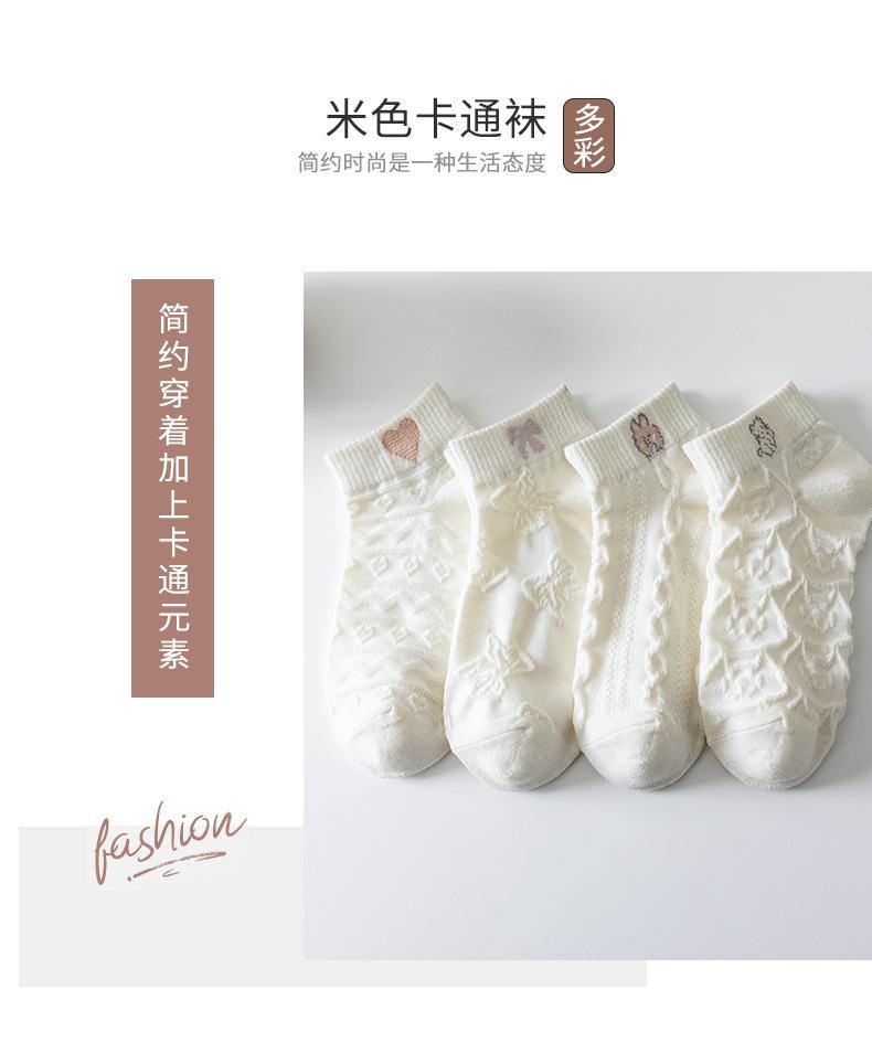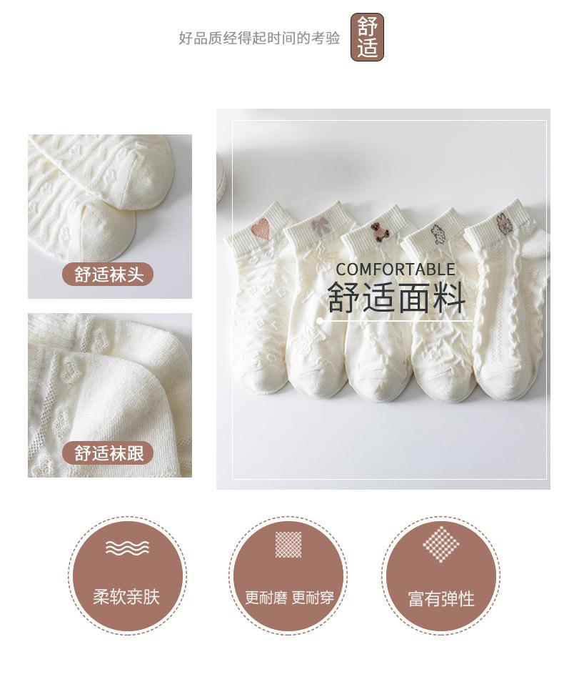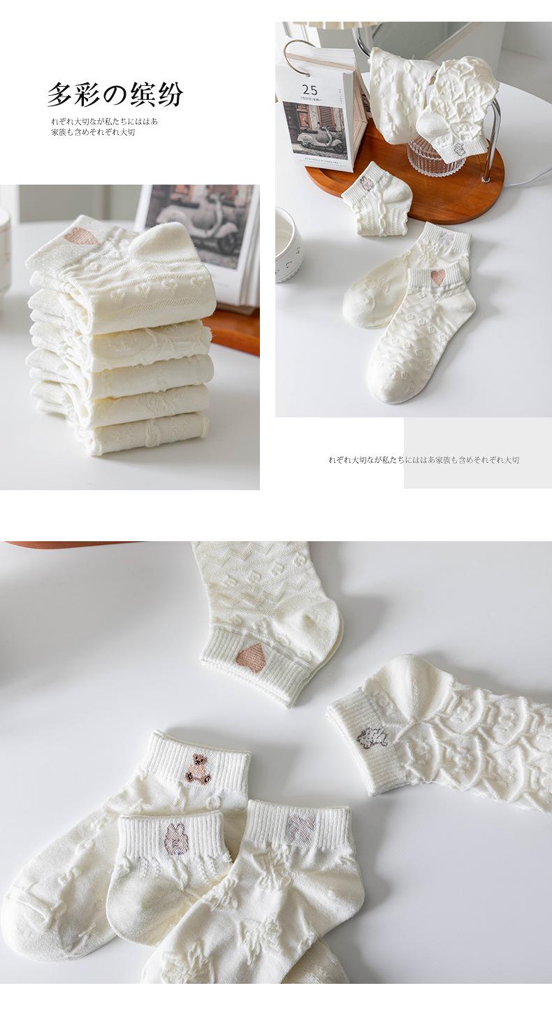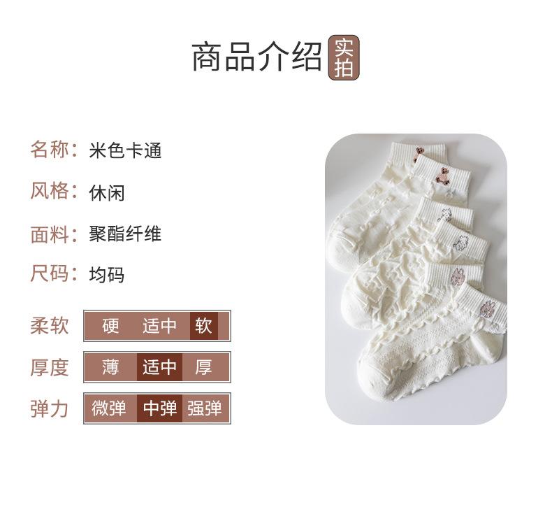 Calcetines de Barco de Color Puro Off-White Calcetines de Primavera y Verano Finos de Boca Baja Oso Corazón Estilo K Estilo Preppy Calcetines Ins para Mujer