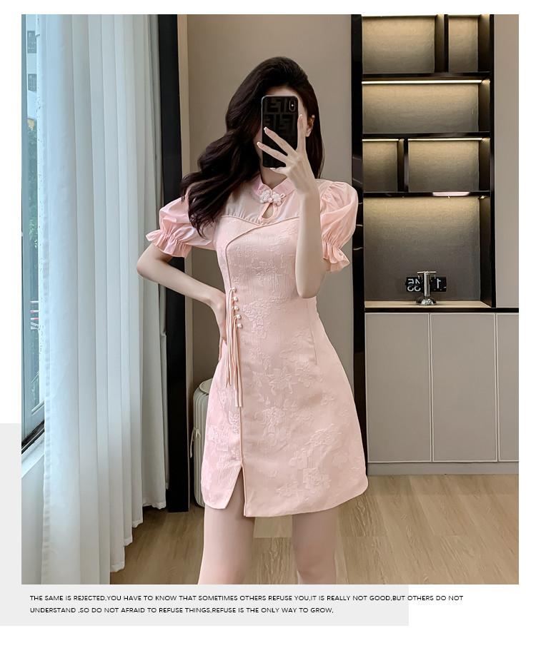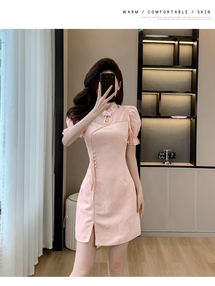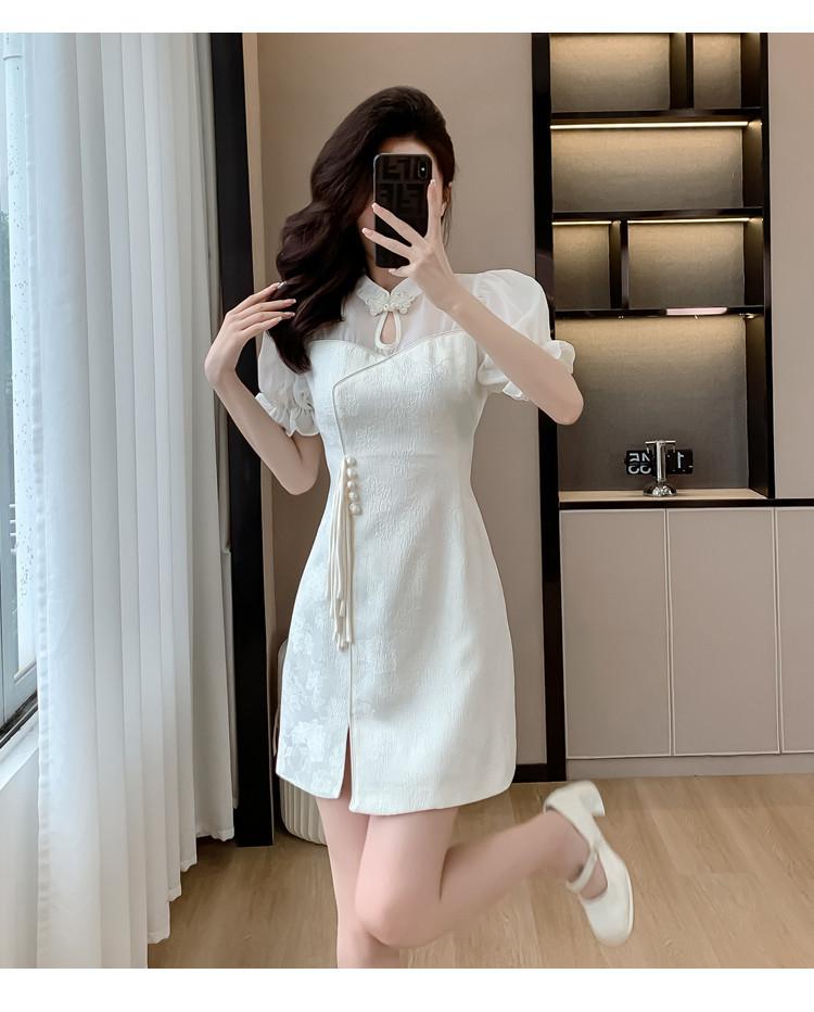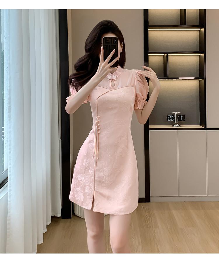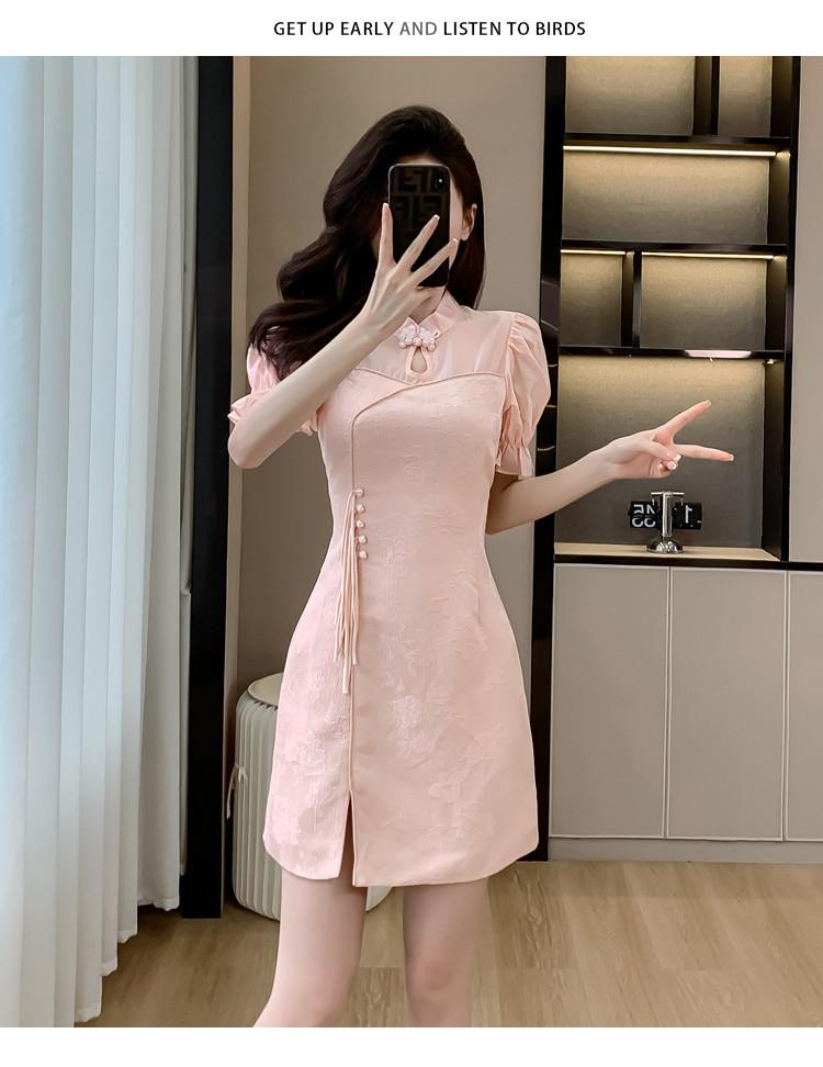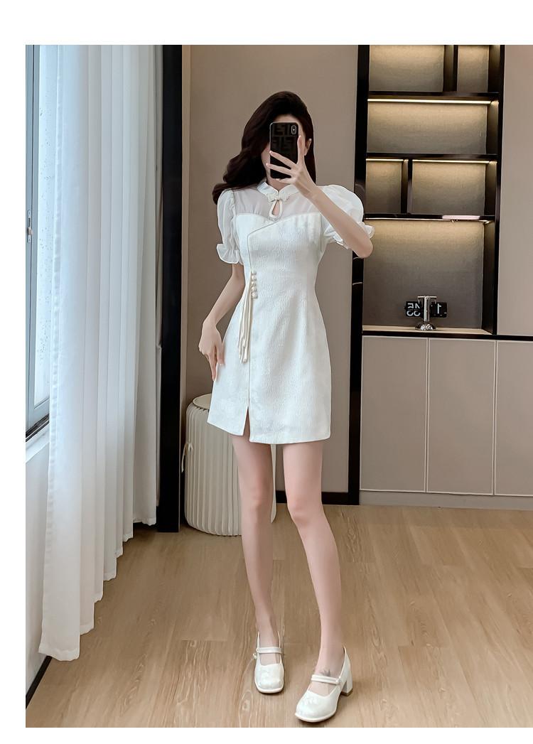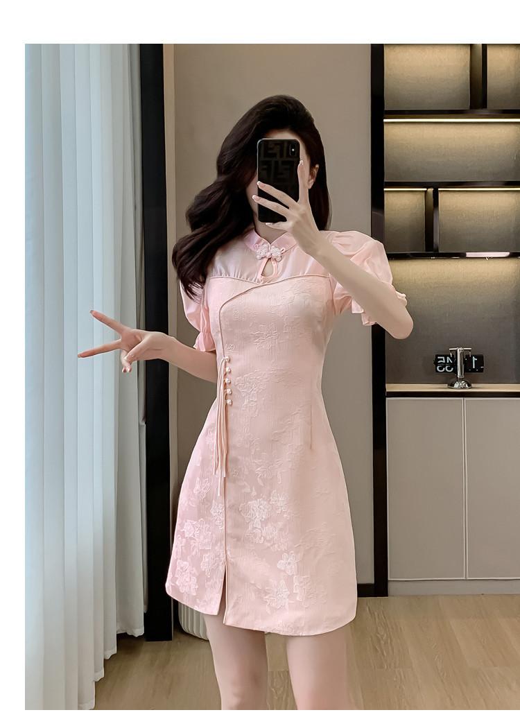 Vestido cheongsam mejorado transfronterizo para mujer, verano 2025, nuevo estilo chino, falda con hebilla, falda ajustada a la cadera