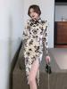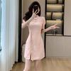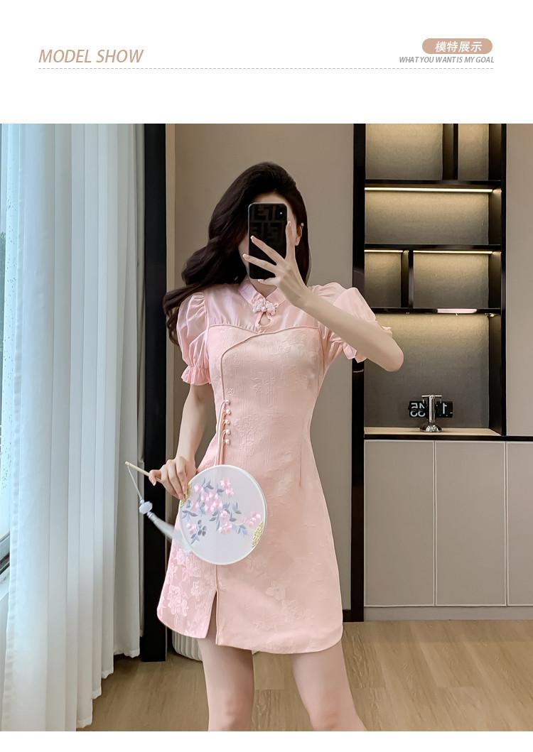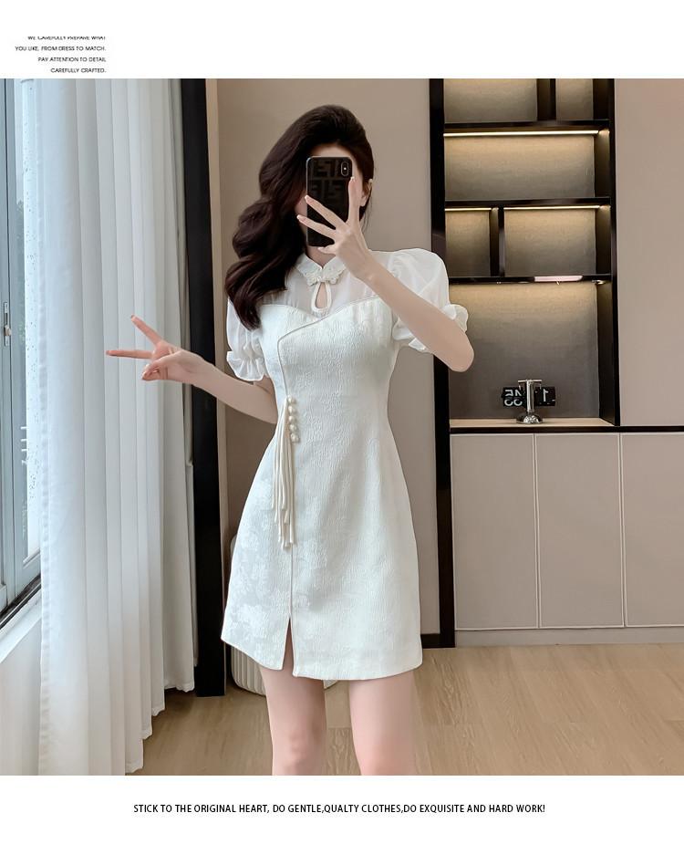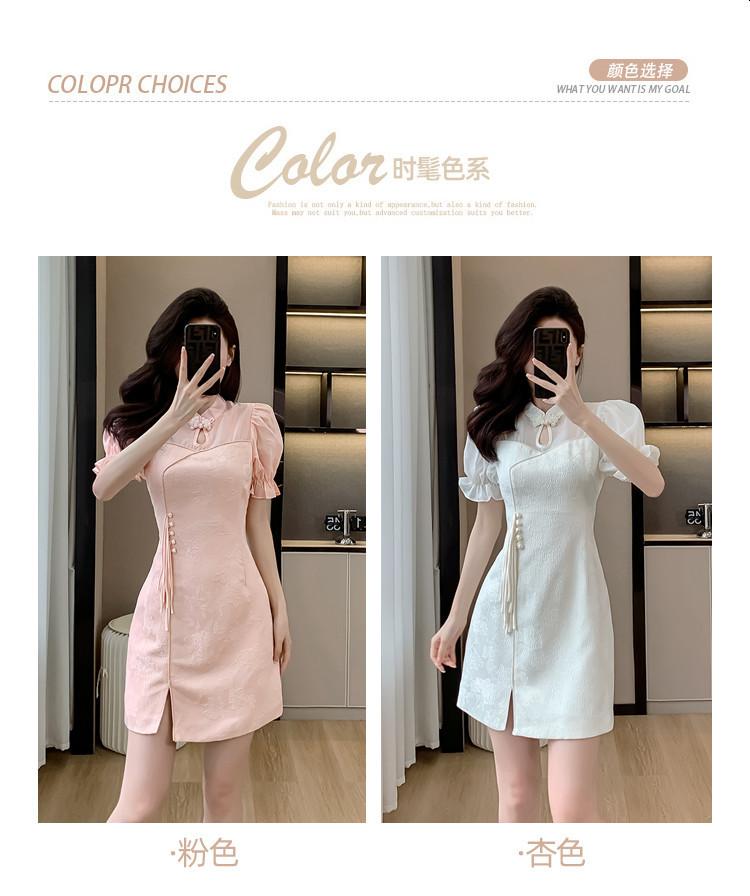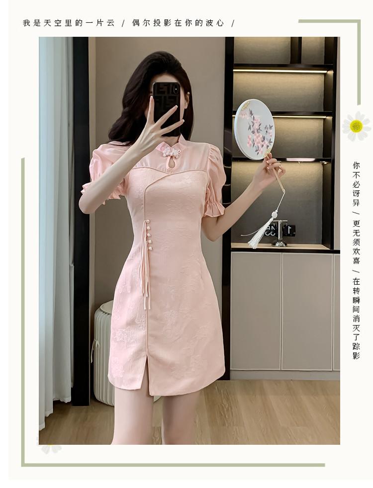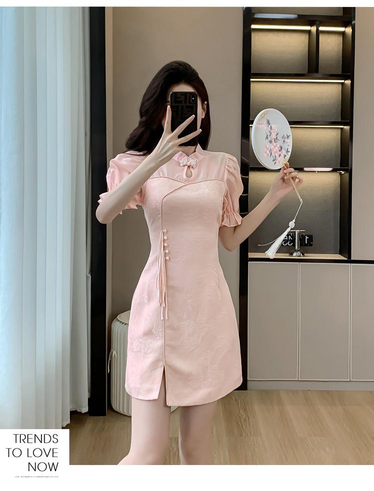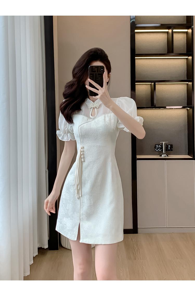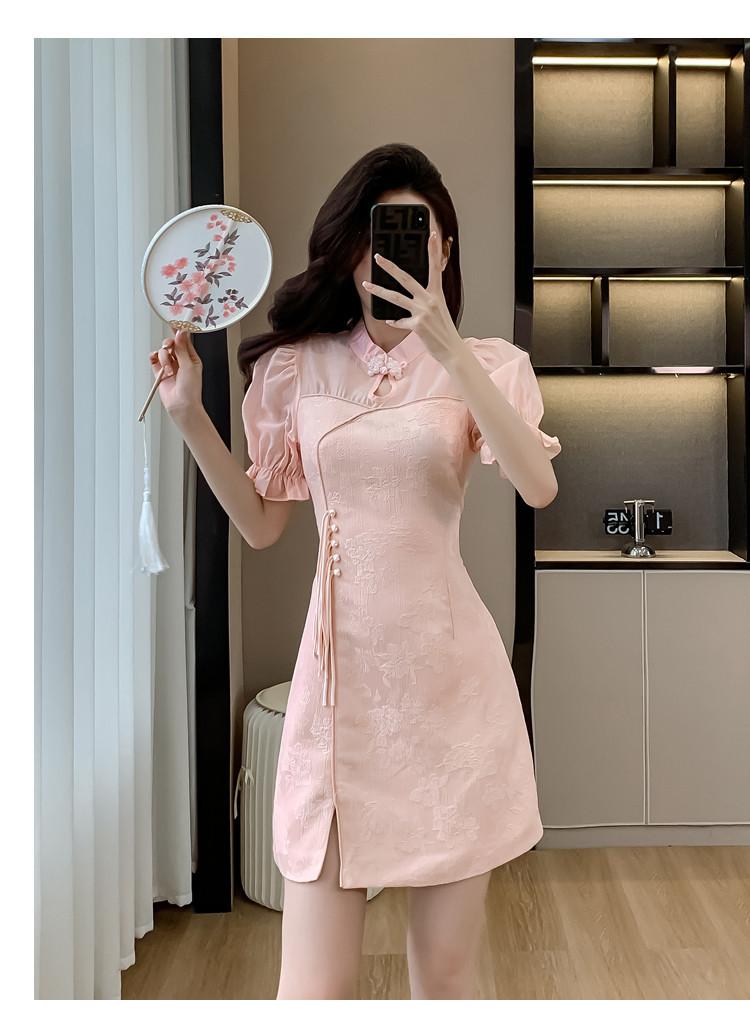 Vestido cheongsam mejorado transfronterizo para mujer, verano 2025, nuevo estilo chino, falda con hebilla, falda ajustada a la cadera