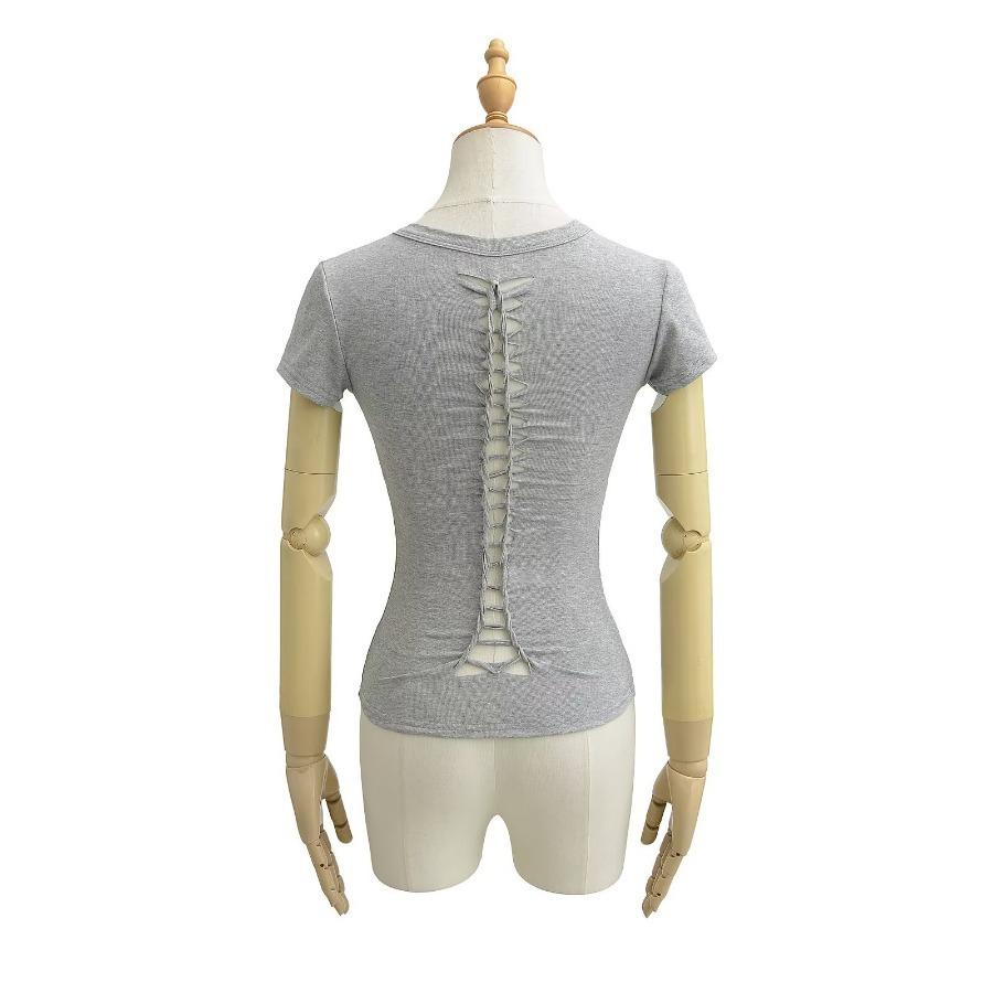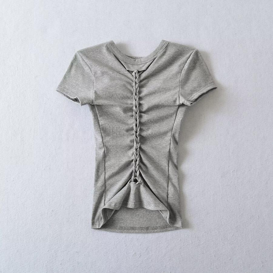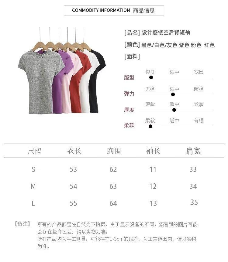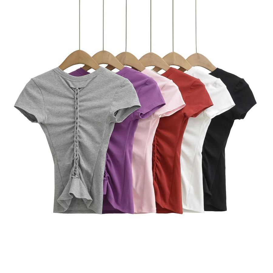 2025 Nuevo Estilo de Verano Diseño de Espalda Descubierta Sexy Sexy Camiseta de Manga Corta Top con Almohadillas para el Busto para Mujer