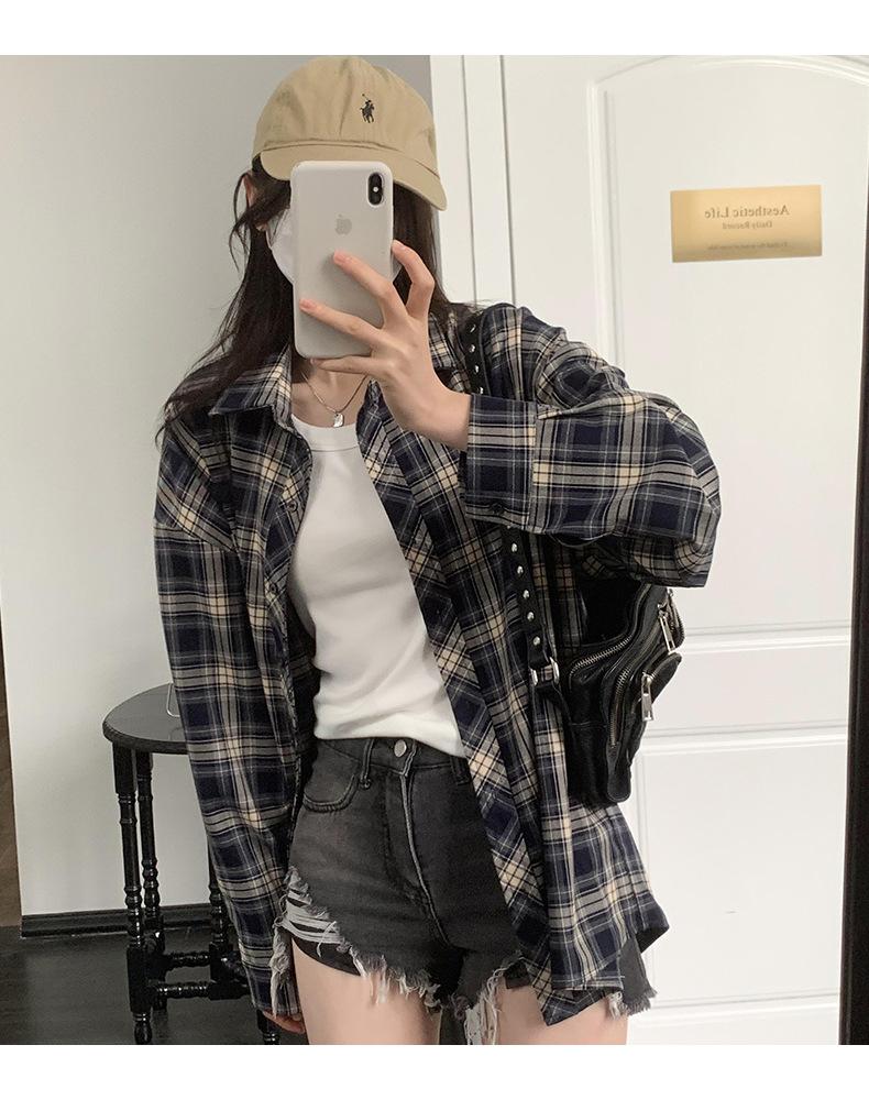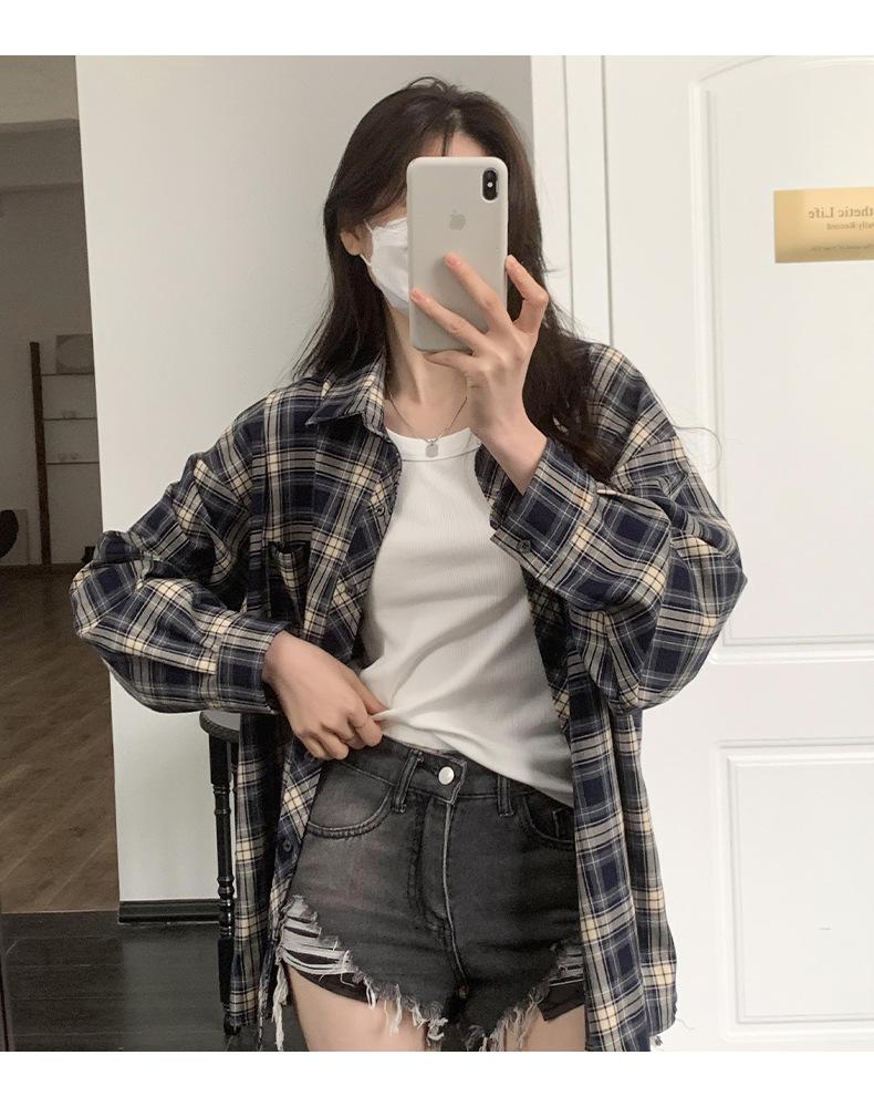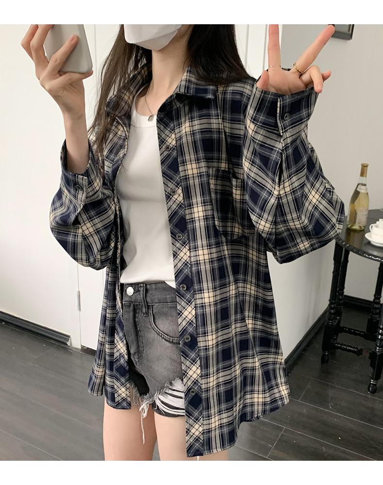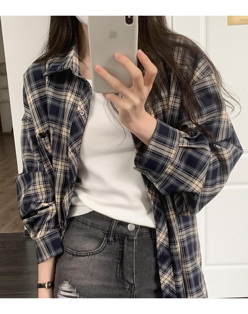 ¡Estilo alto y fijo! Camisa a cuadros vintage de otoño e invierno 2024, nueva, de manga larga, holgada, informal, ajustada, de comercio exterior