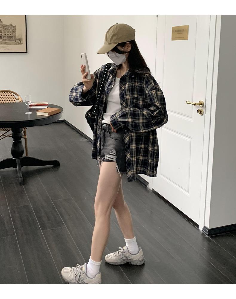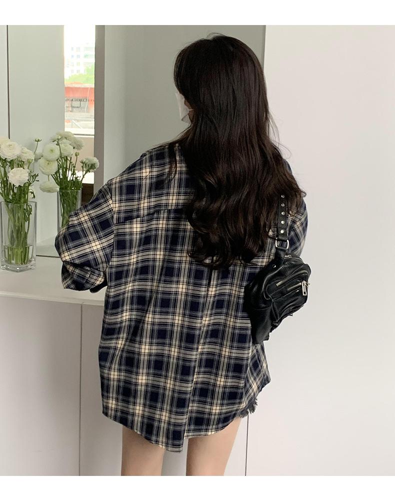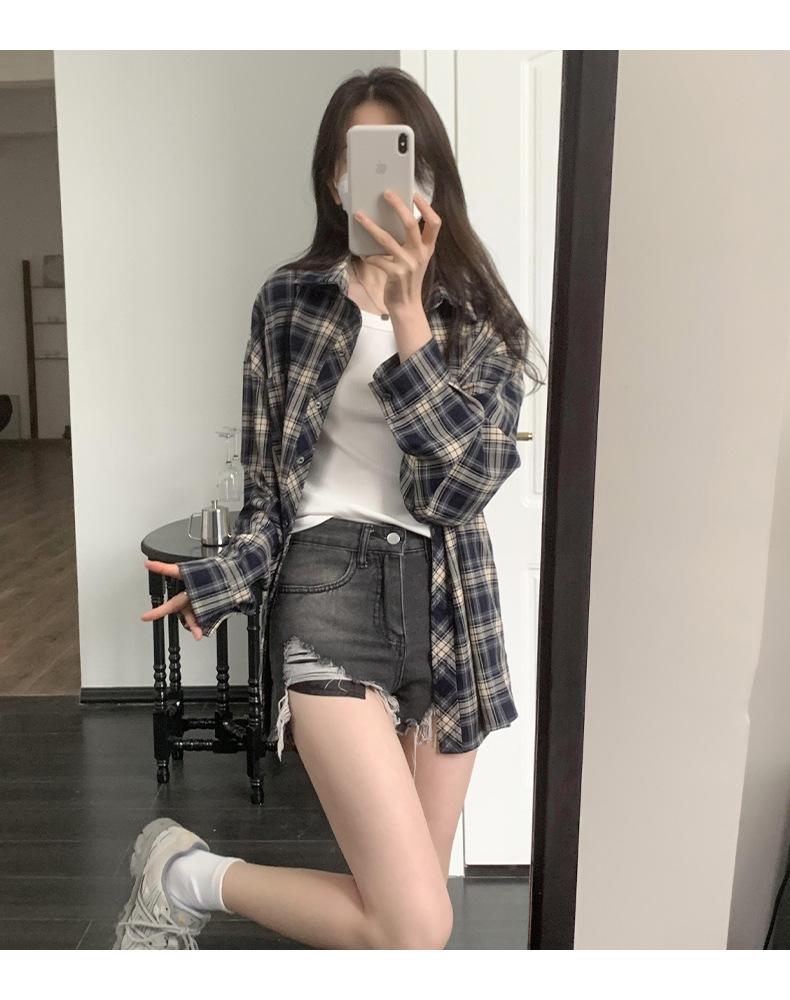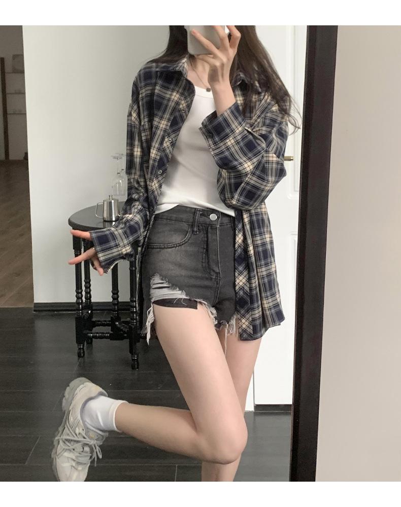 ¡Estilo alto y fijo! Camisa a cuadros vintage de otoño e invierno 2024, nueva, de manga larga, holgada, informal, ajustada, de comercio exterior