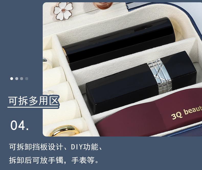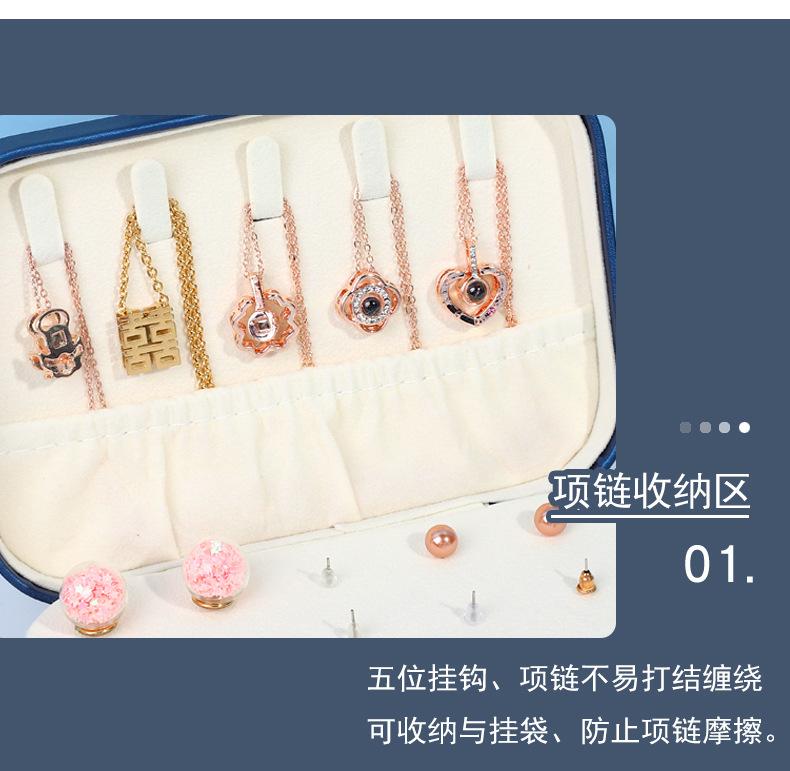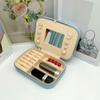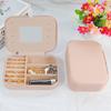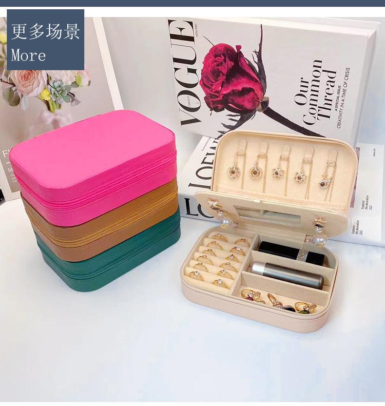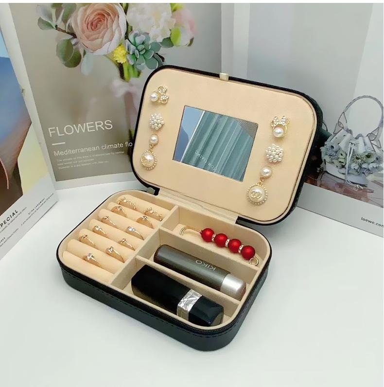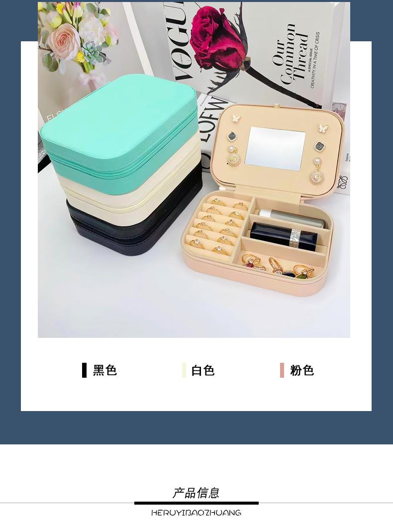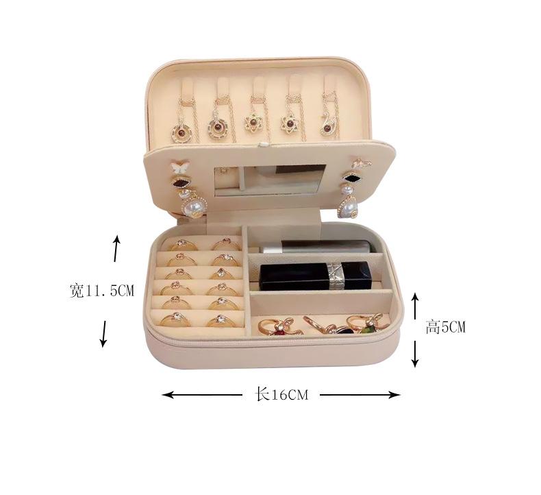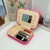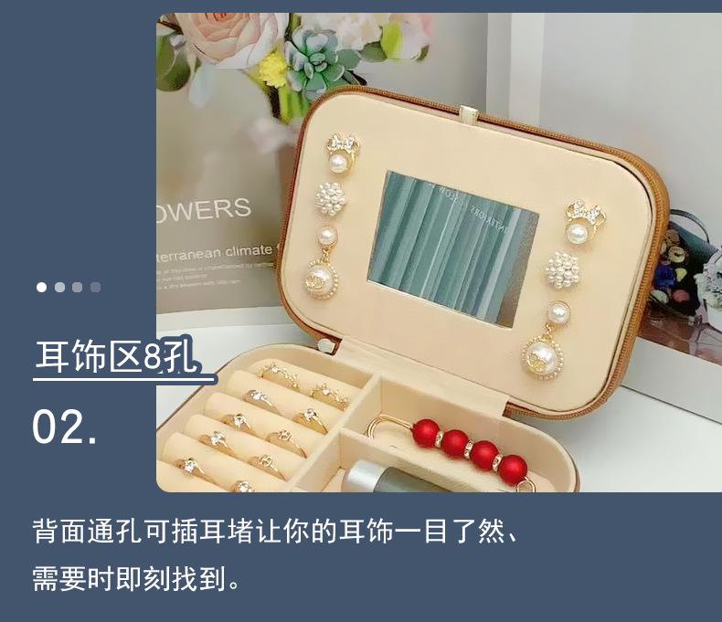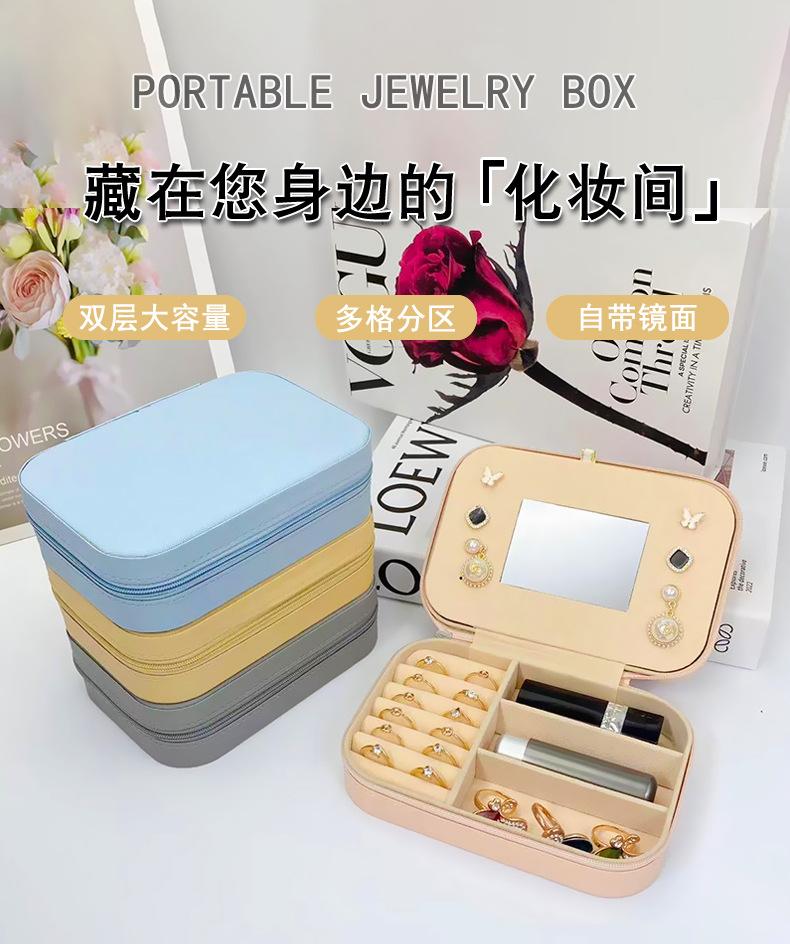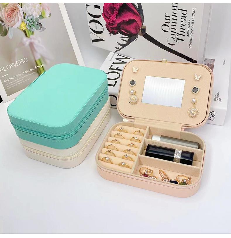 Joyero portátil de PVC con espejo, sencillo, para pendientes, anillos, joyas, caja de almacenamiento multifuncional con cremallera.