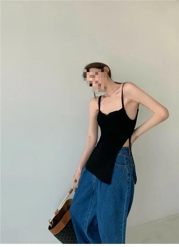 Camisola sexy para mujer con almohadillas para el pecho, estilo Hong Kong, top sexy retro francés, estilo chica sexy, estilo europeo y americano.