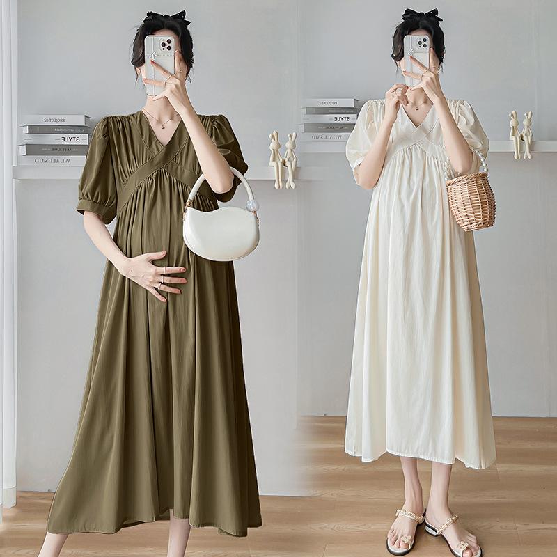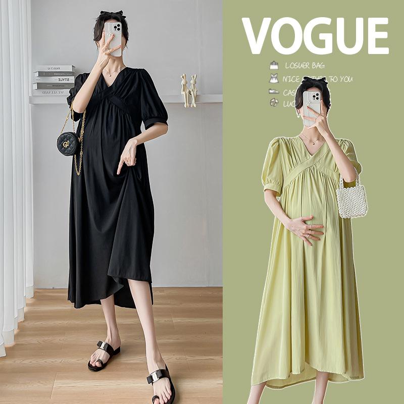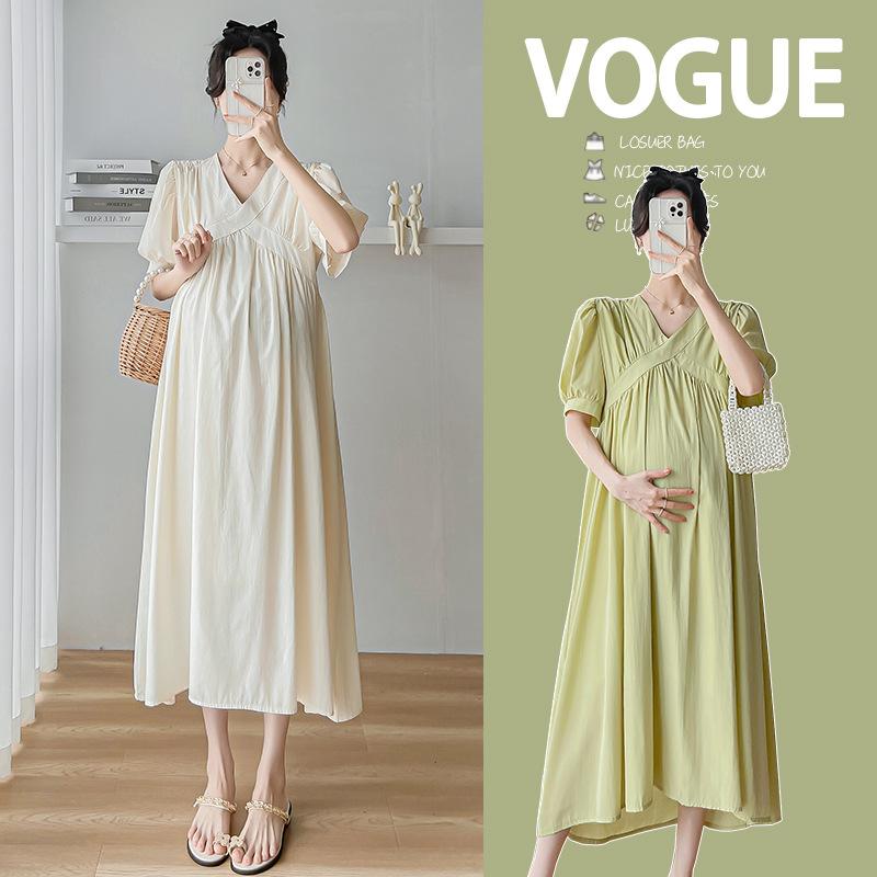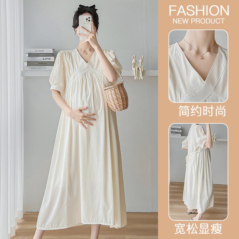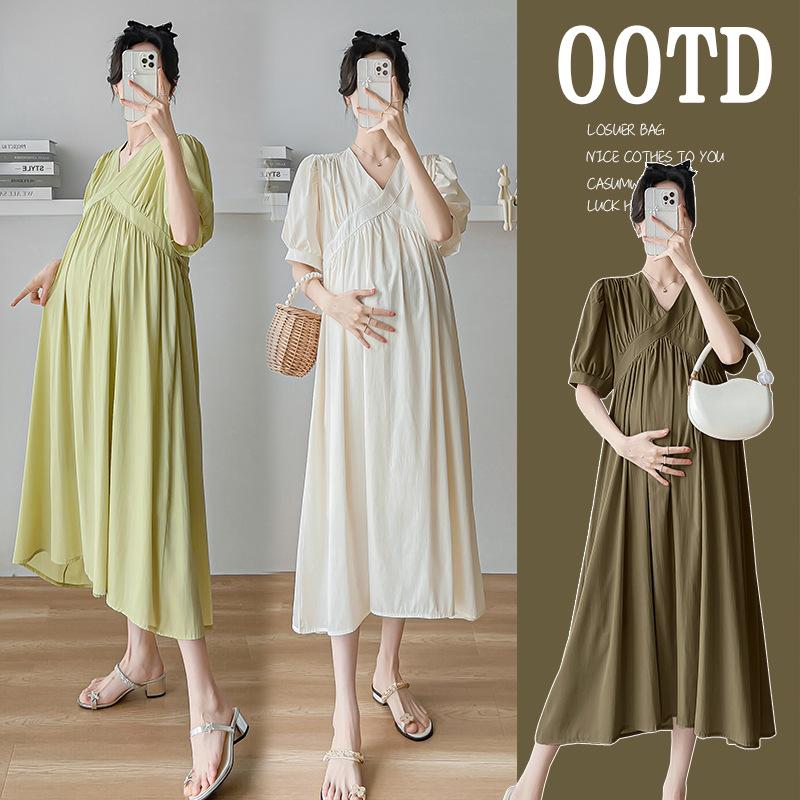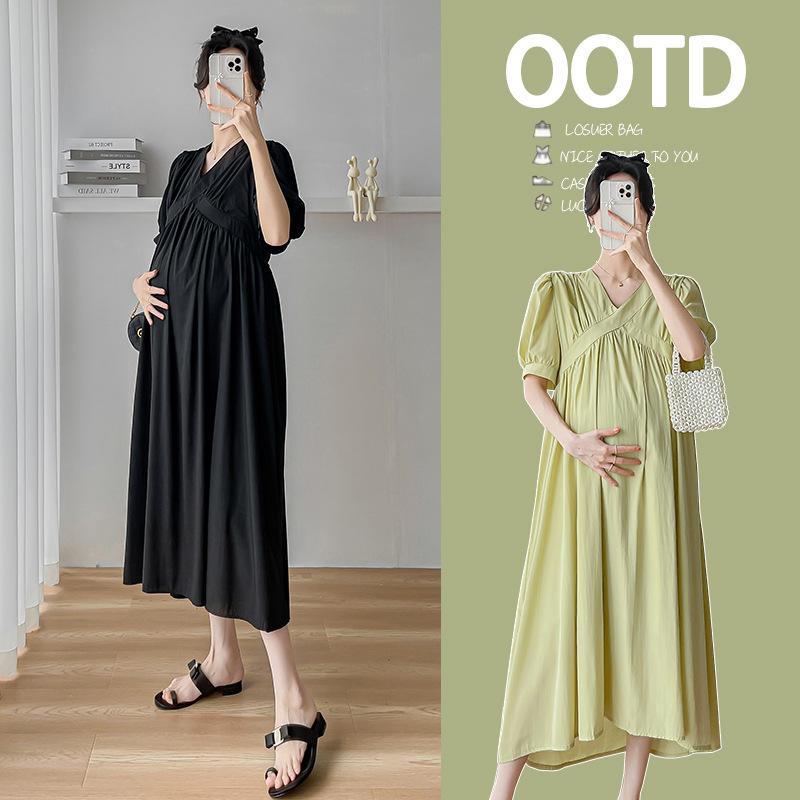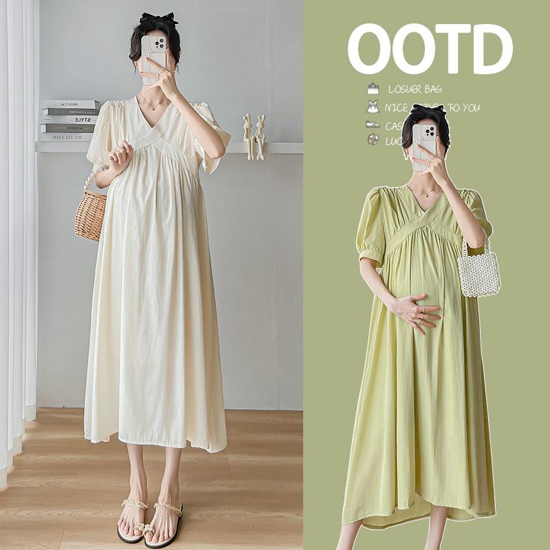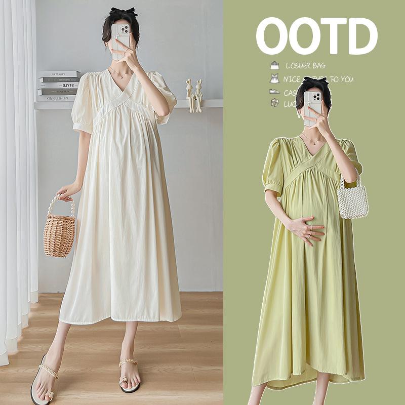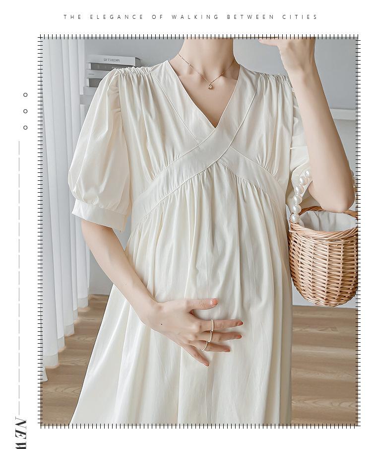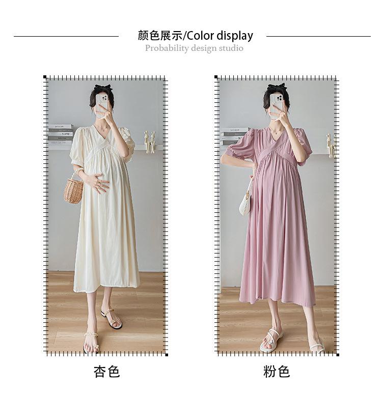 En Stock 2024 Nuevo Verano Ropa de Maternidad Estilo Hepburn Francés Vestido de Maternidad Suelto 5 Colores