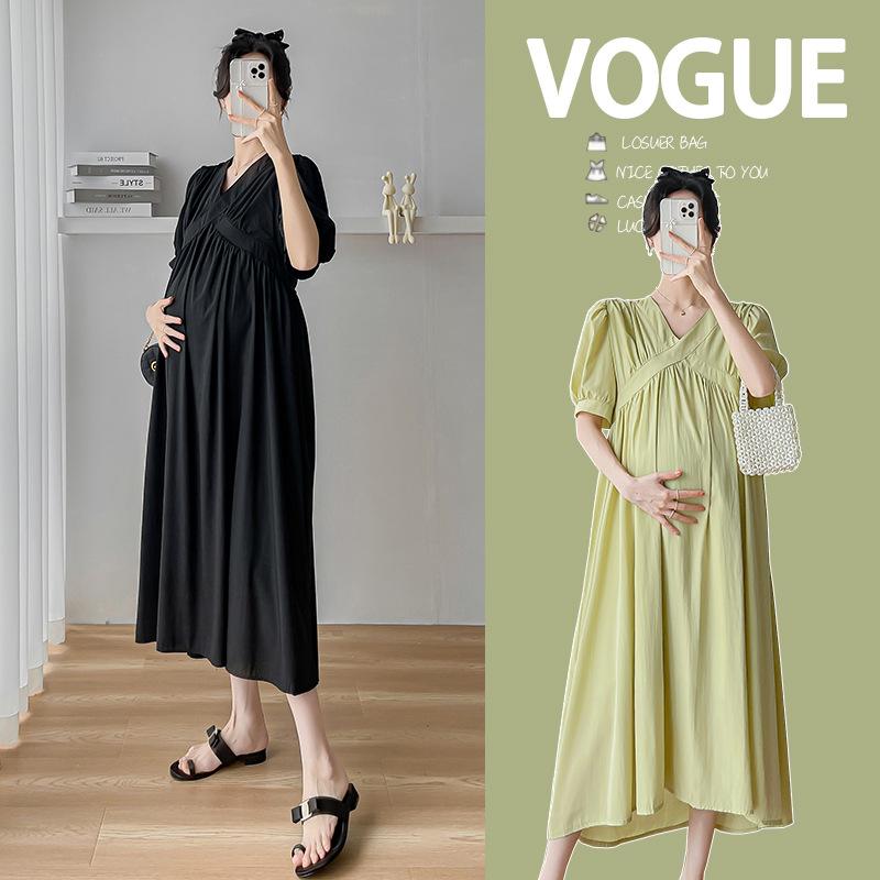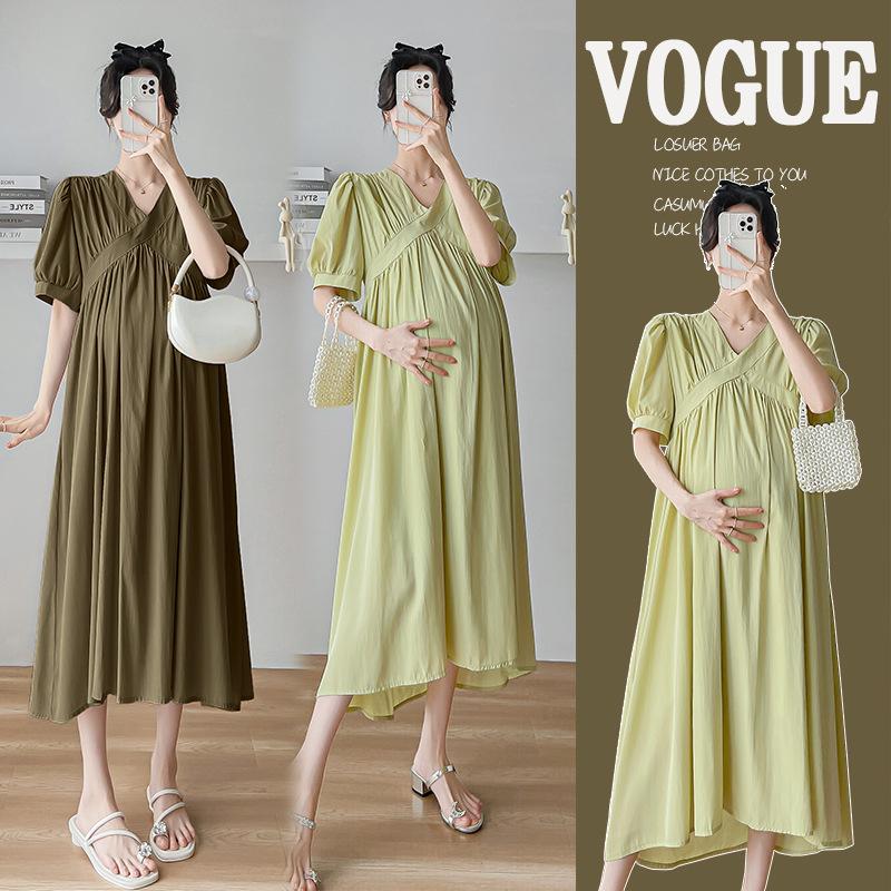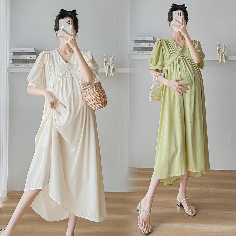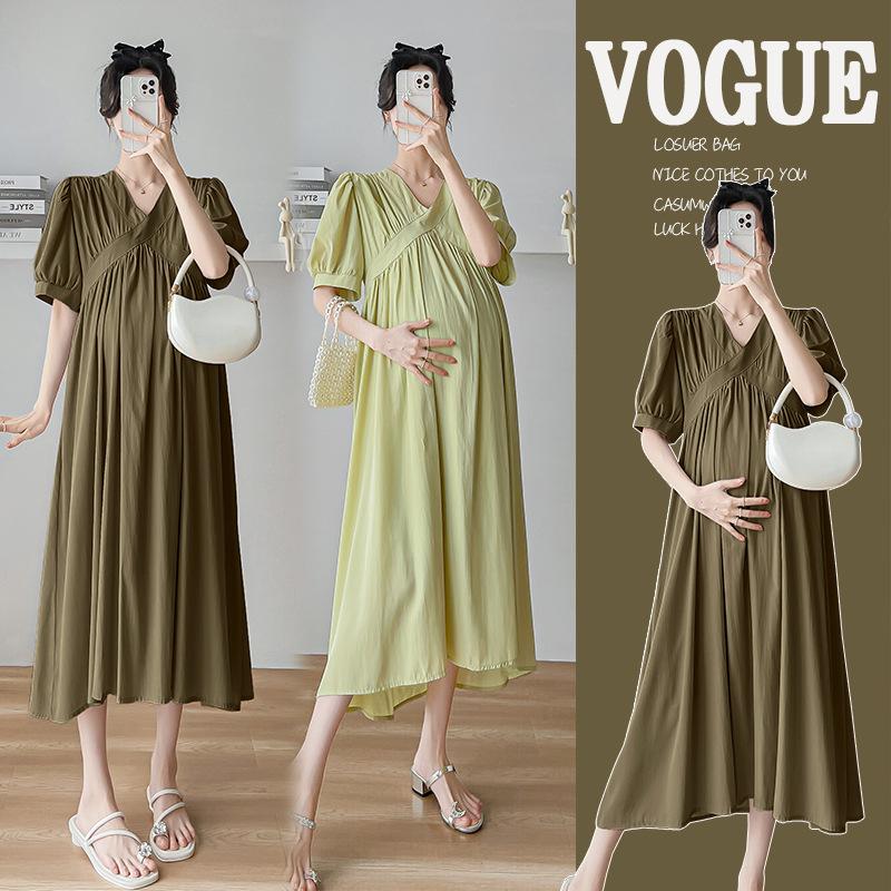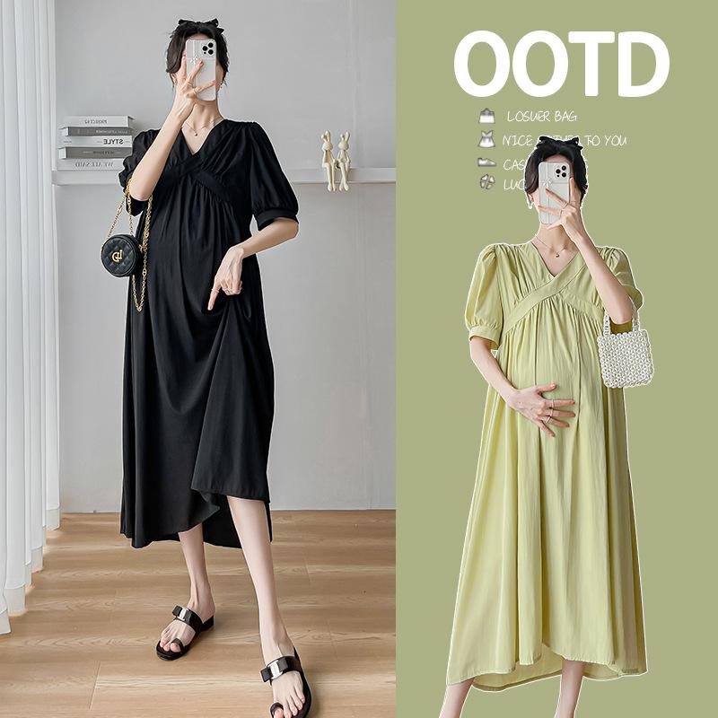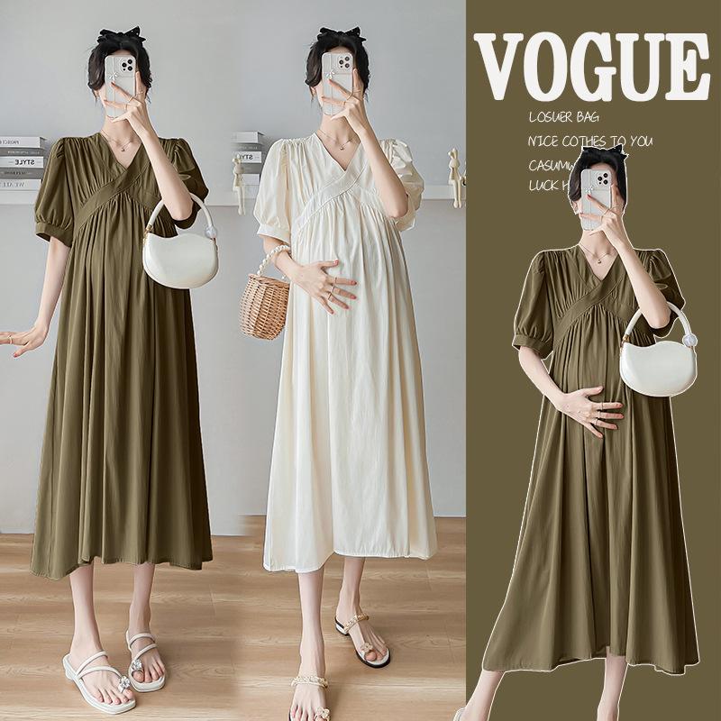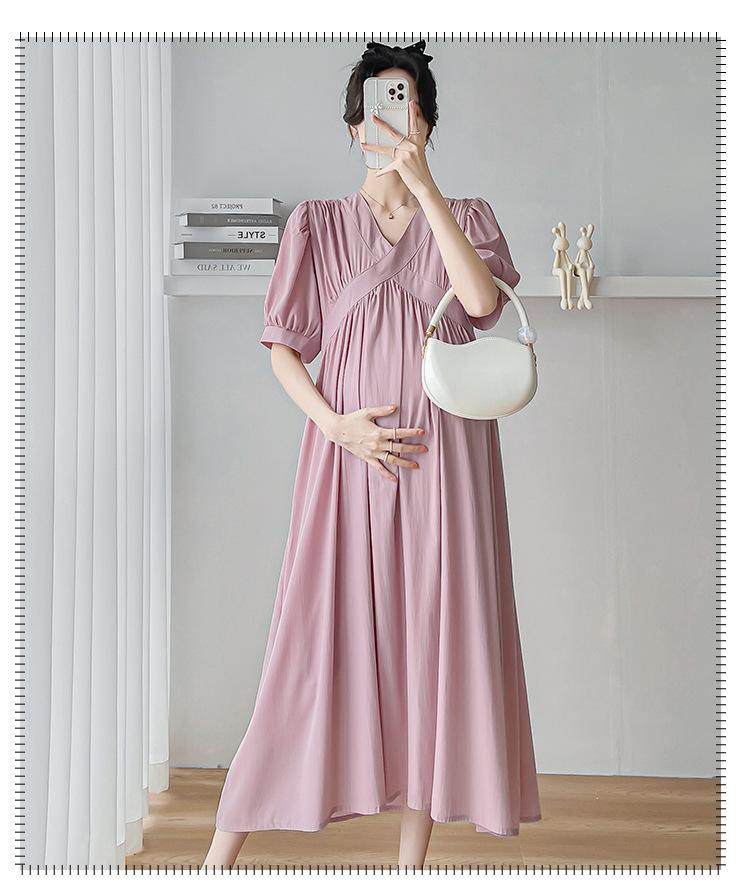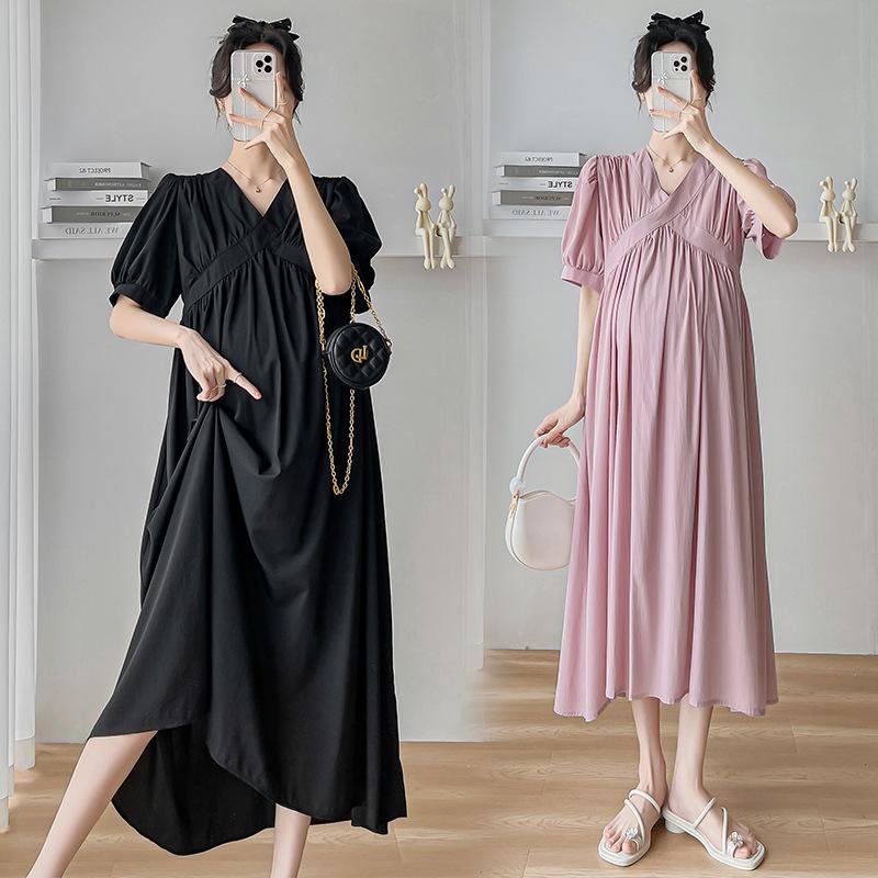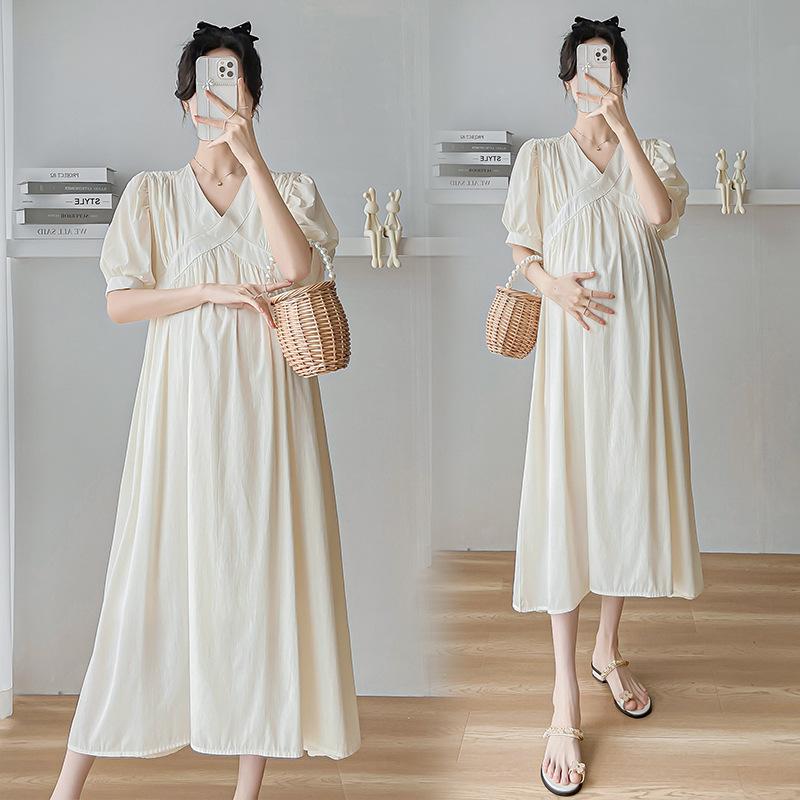 En Stock 2024 Nuevo Verano Ropa de Maternidad Estilo Hepburn Francés Vestido de Maternidad Suelto 5 Colores