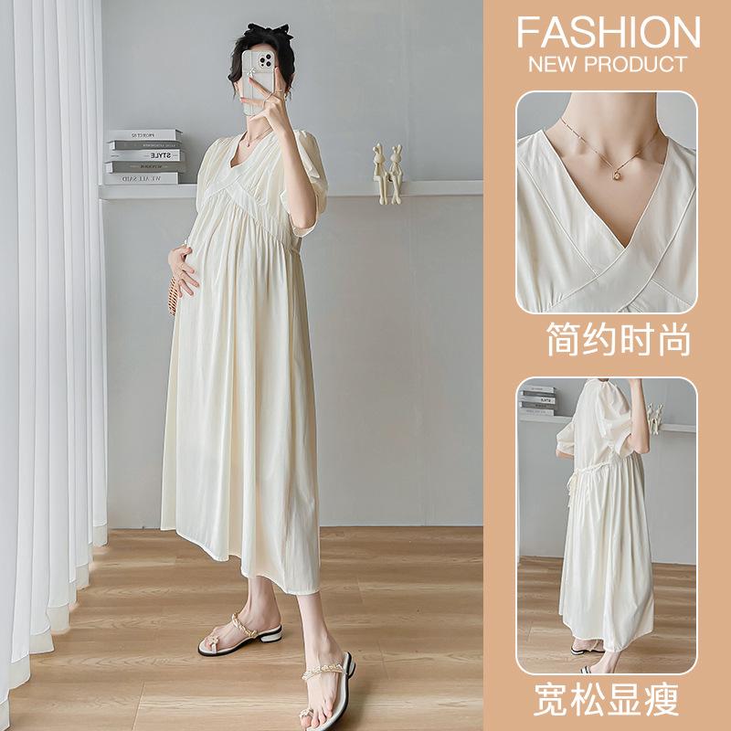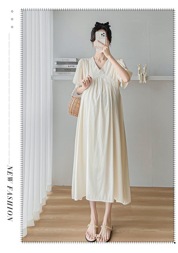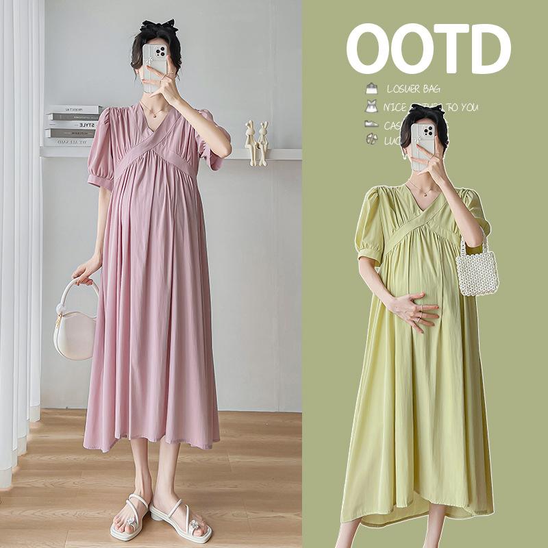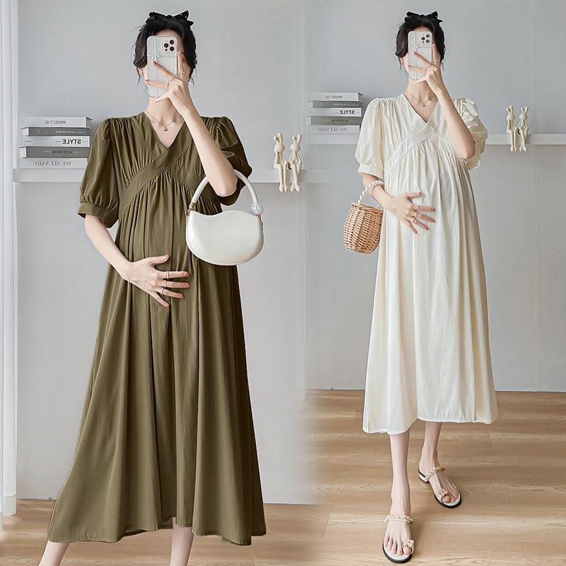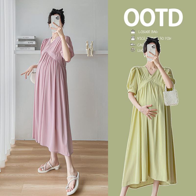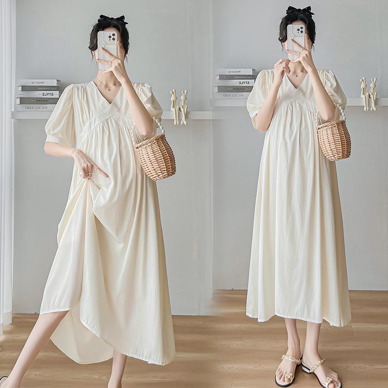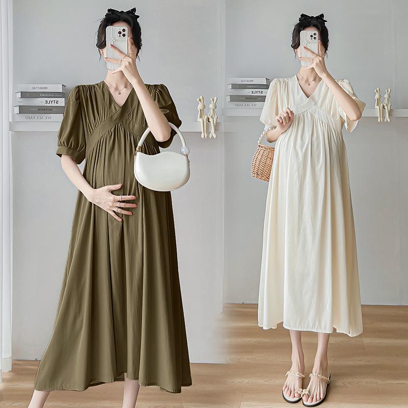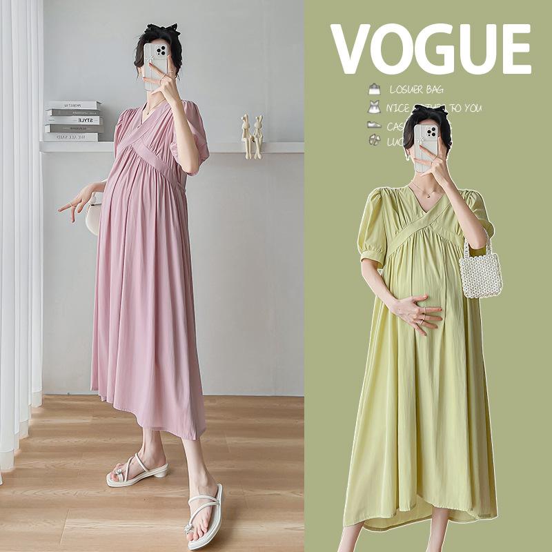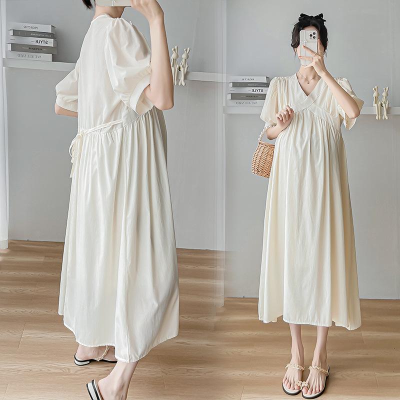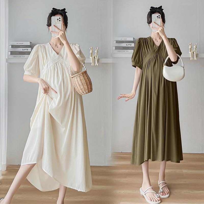 En Stock 2024 Nuevo Verano Ropa de Maternidad Estilo Hepburn Francés Vestido de Maternidad Suelto 5 Colores