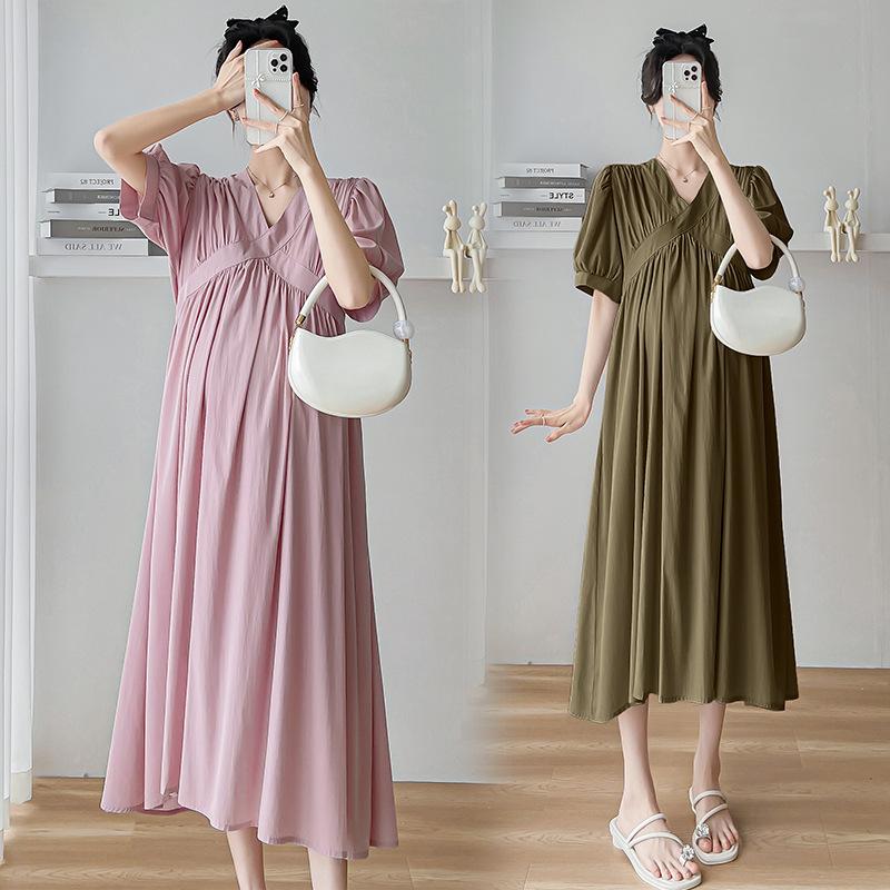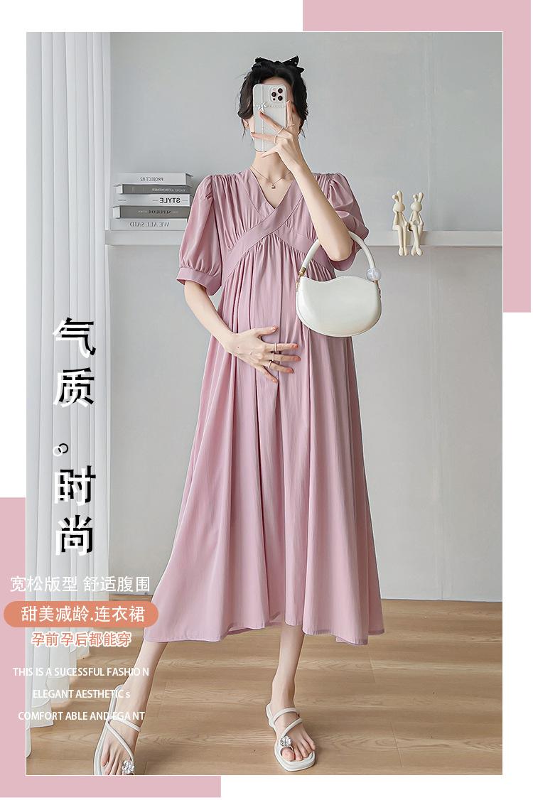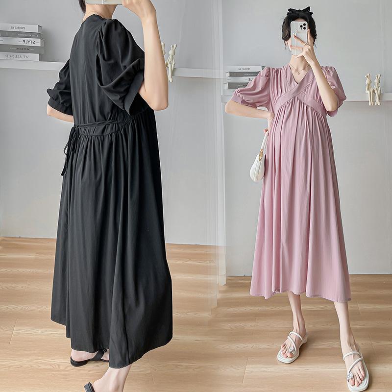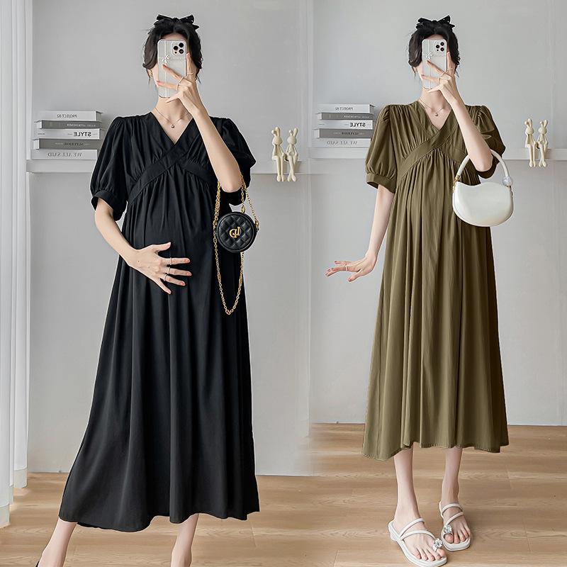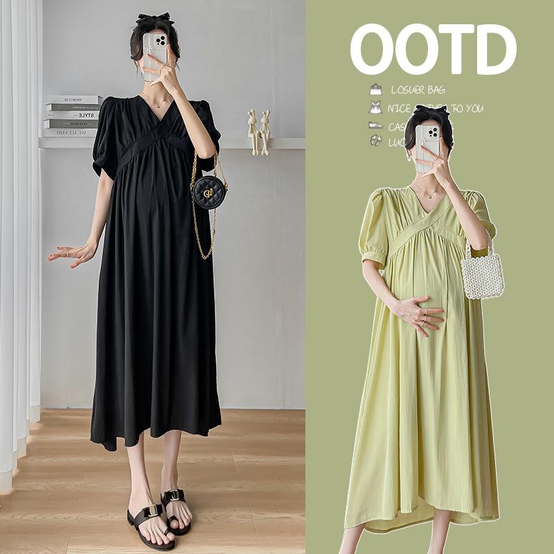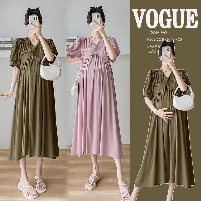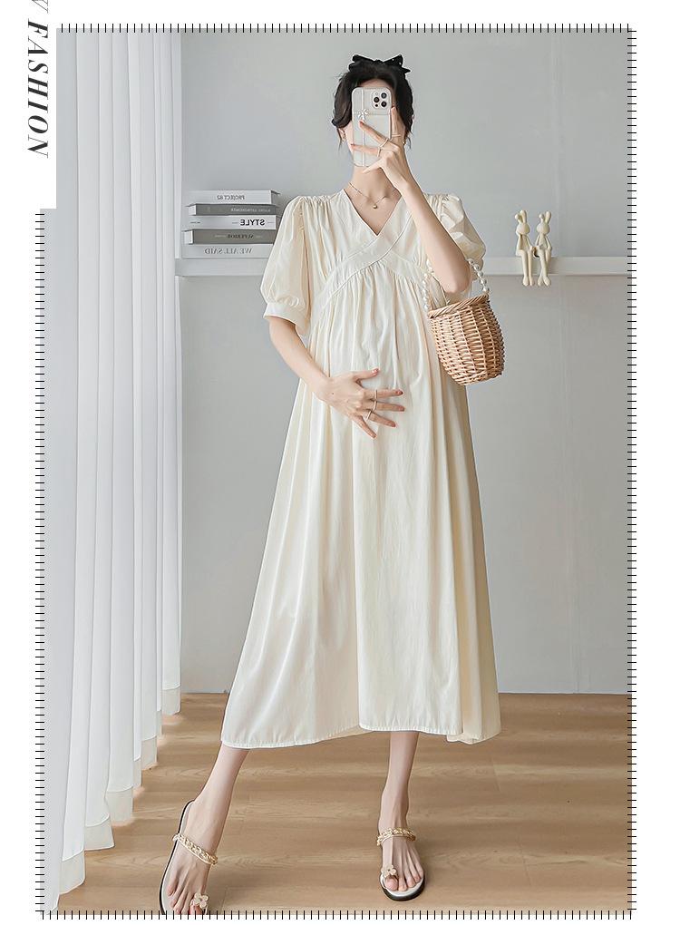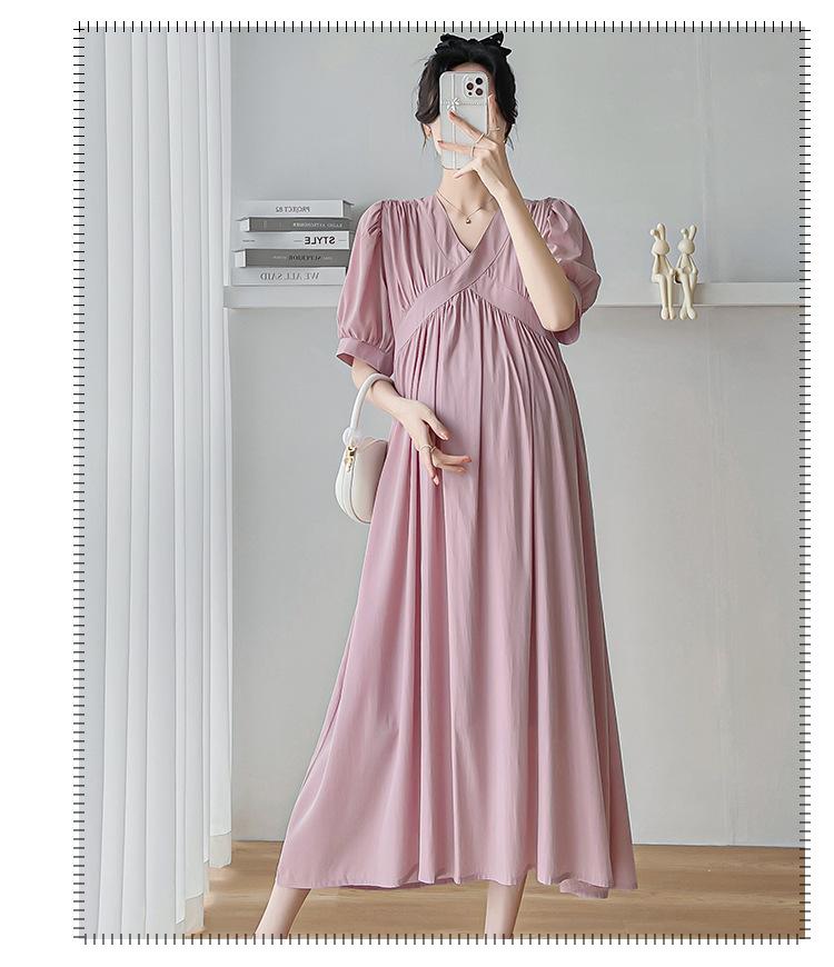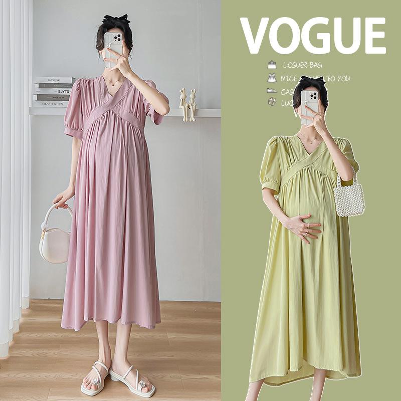 En Stock 2024 Nuevo Verano Ropa de Maternidad Estilo Hepburn Francés Vestido de Maternidad Suelto 5 Colores