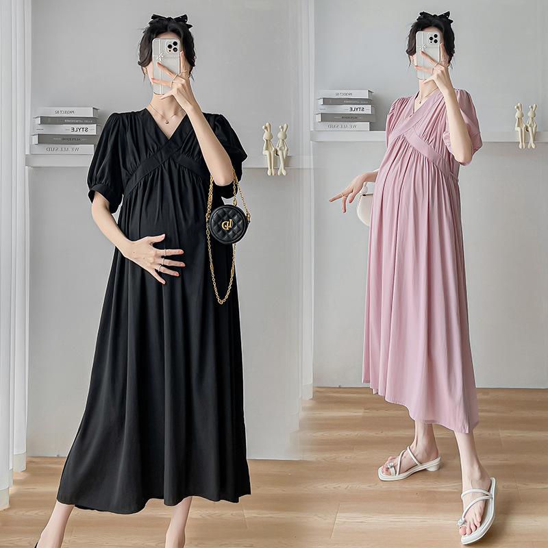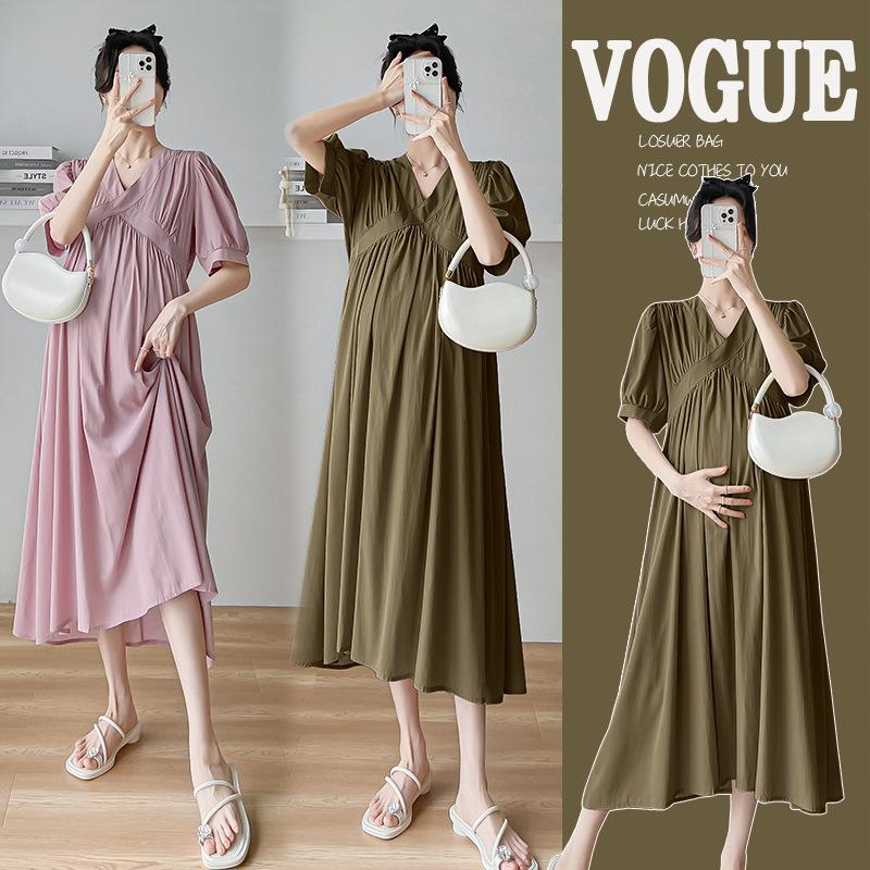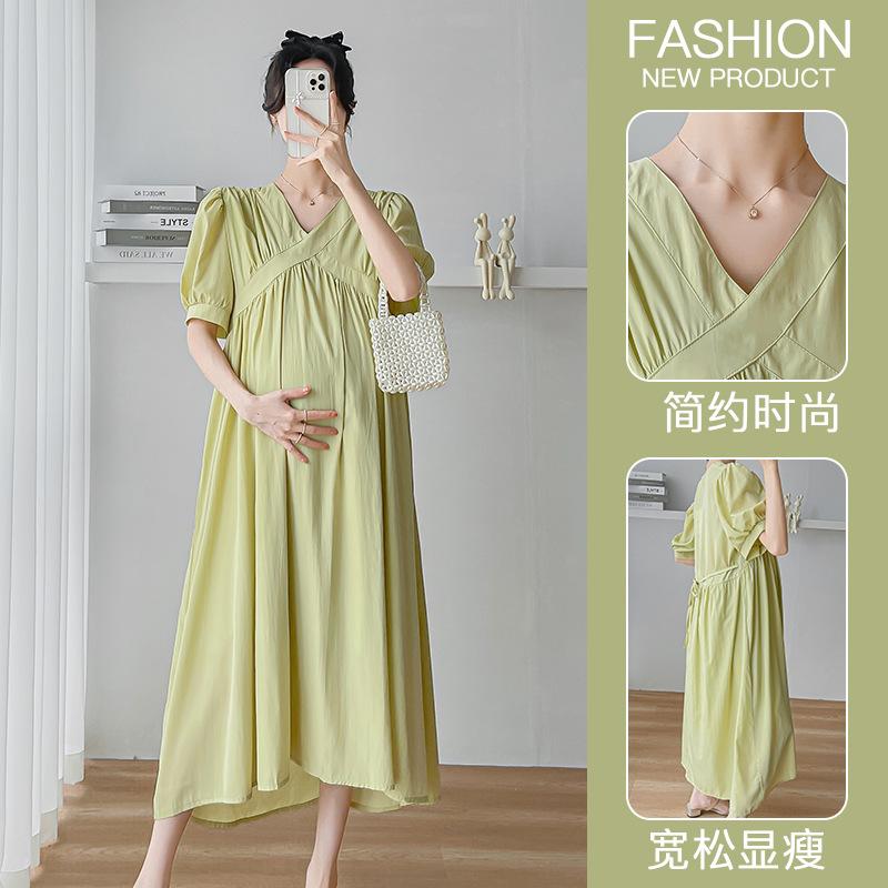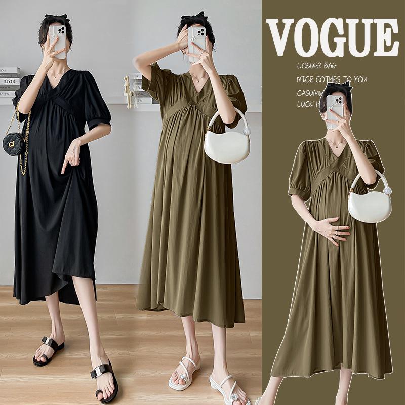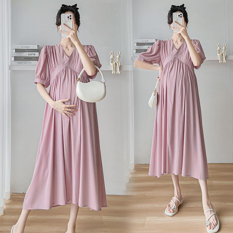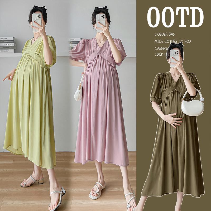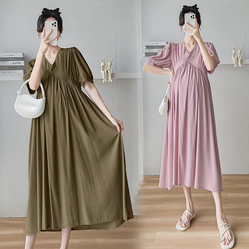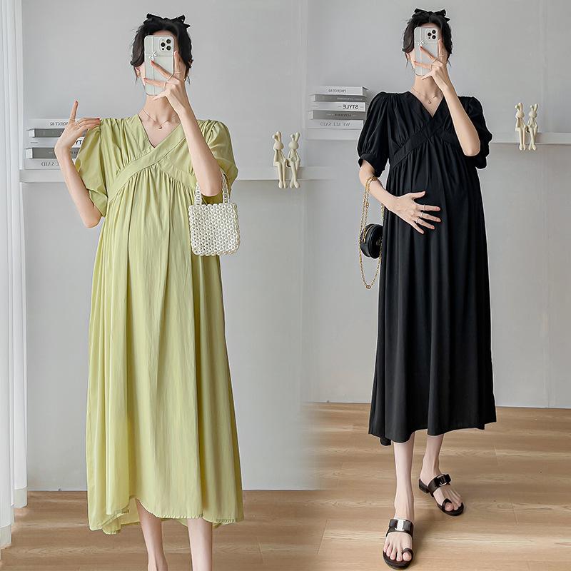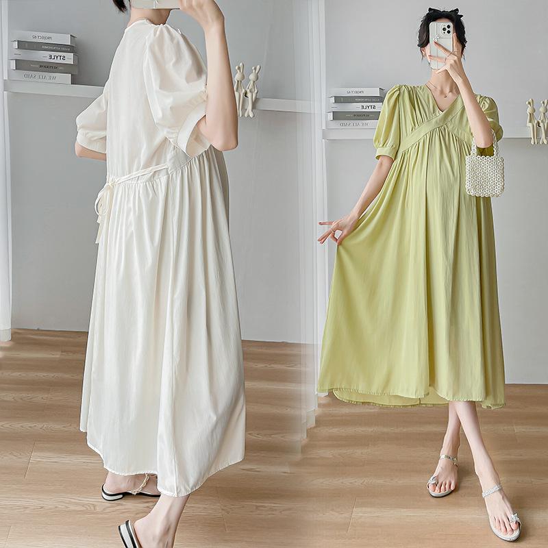 En Stock 2024 Nuevo Verano Ropa de Maternidad Estilo Hepburn Francés Vestido de Maternidad Suelto 5 Colores