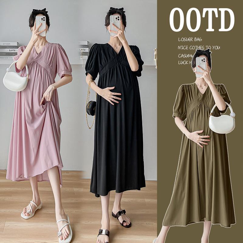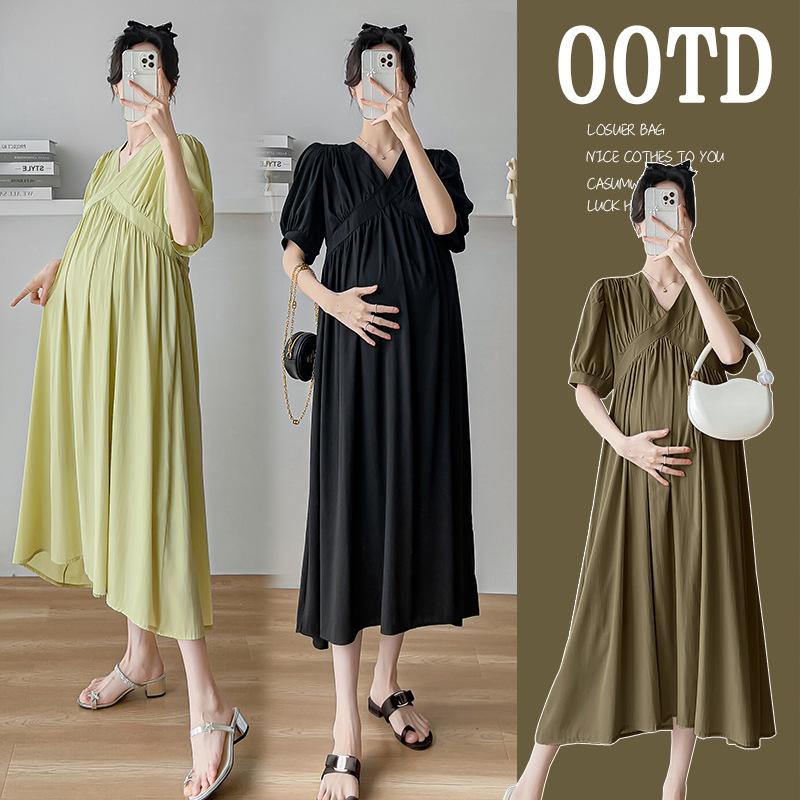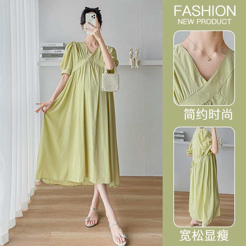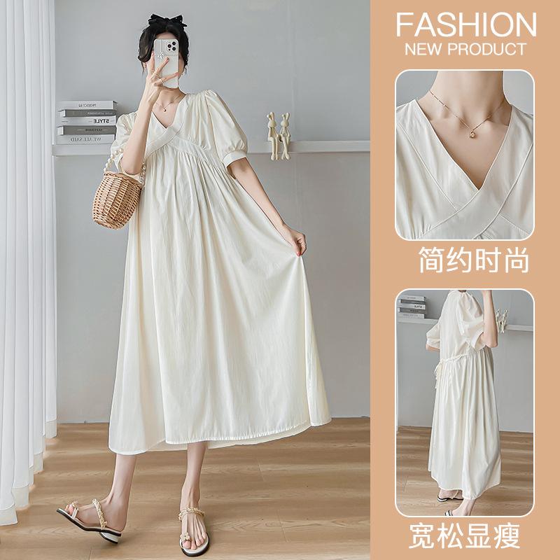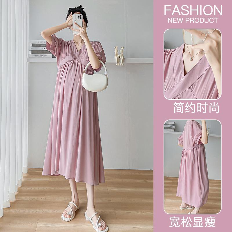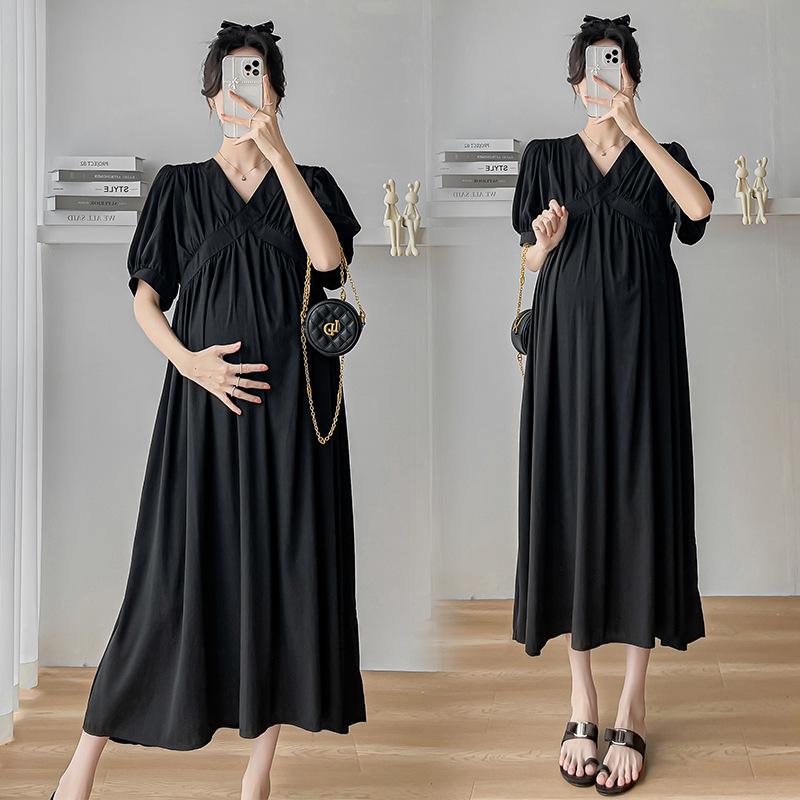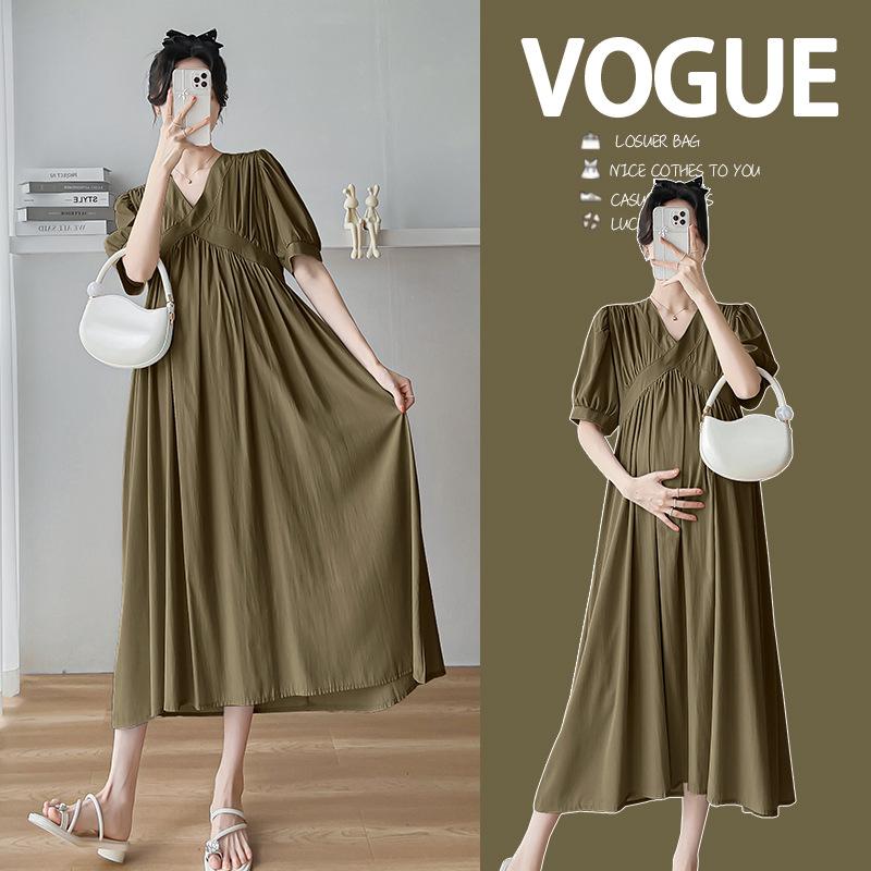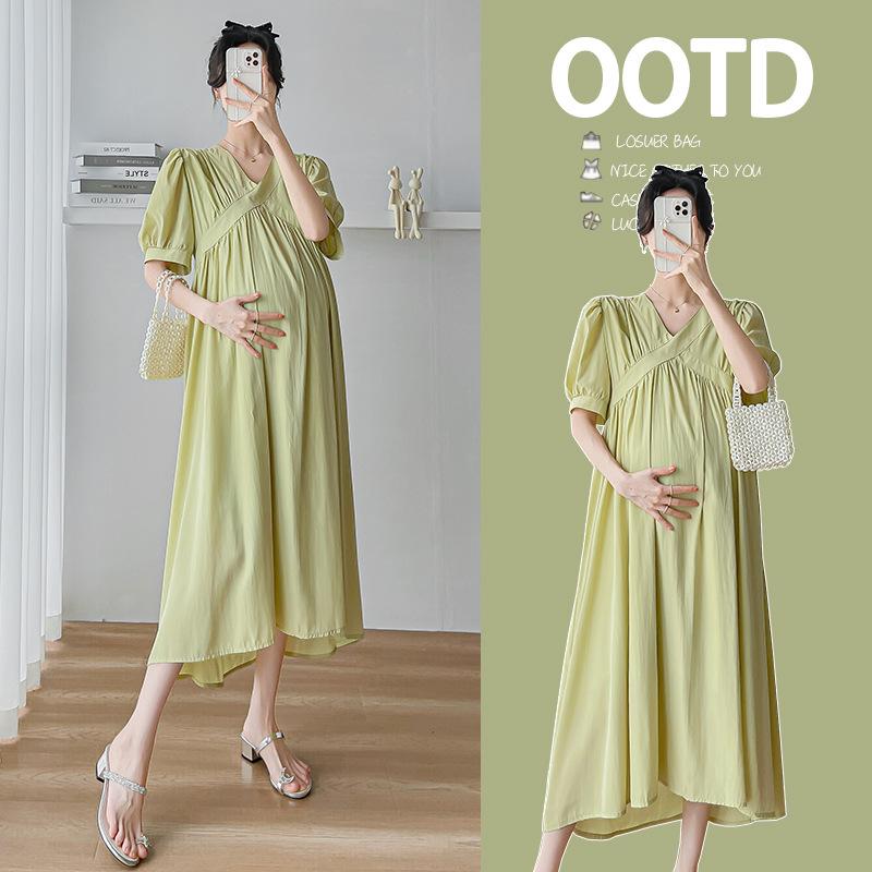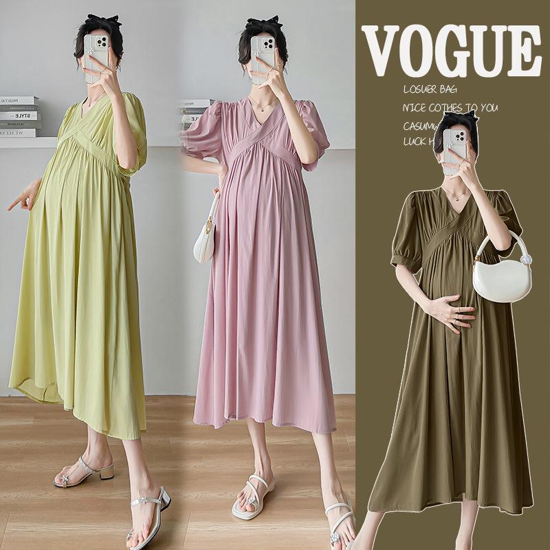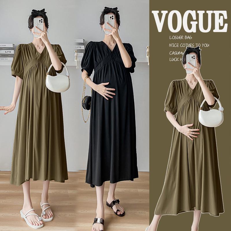 En Stock 2024 Nuevo Verano Ropa de Maternidad Estilo Hepburn Francés Vestido de Maternidad Suelto 5 Colores