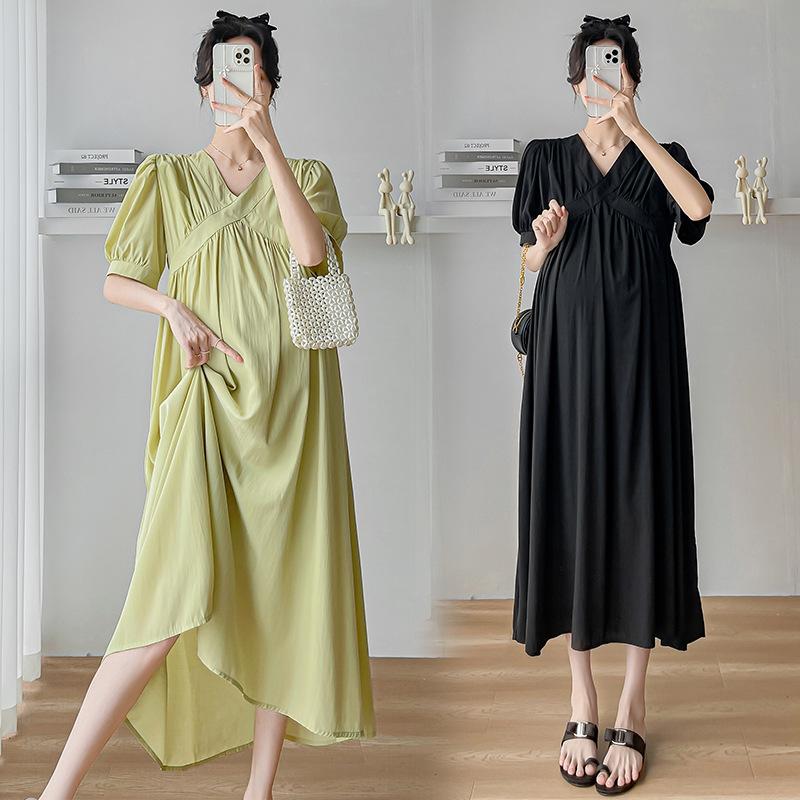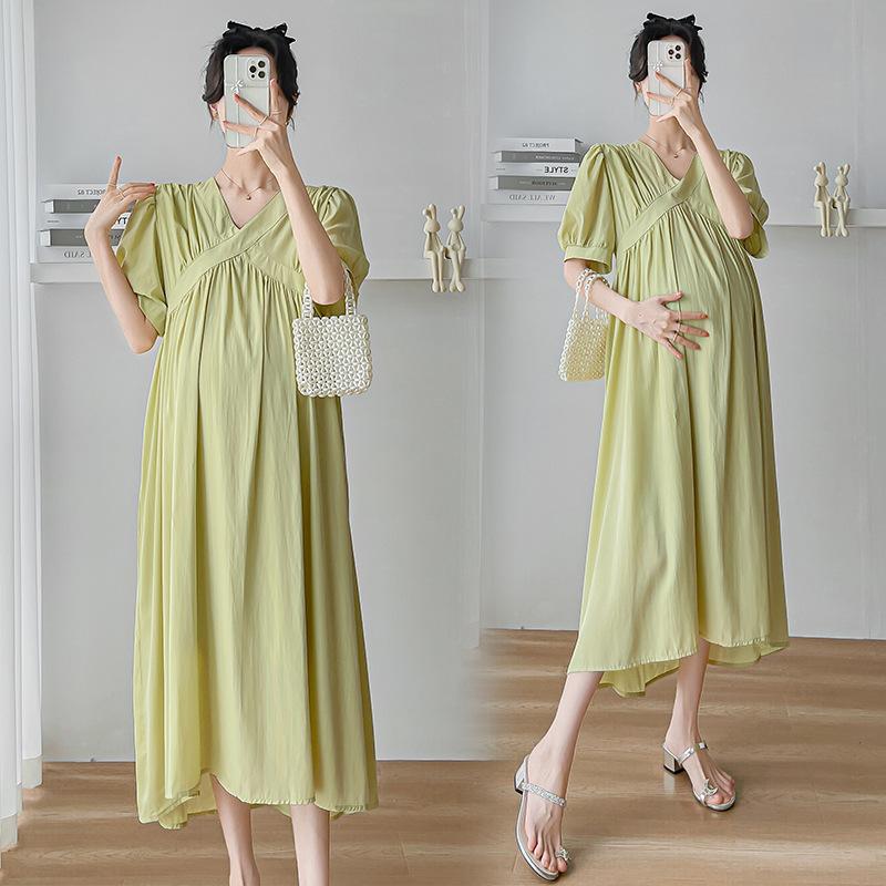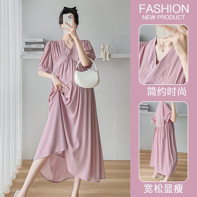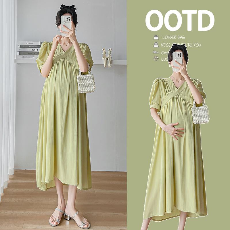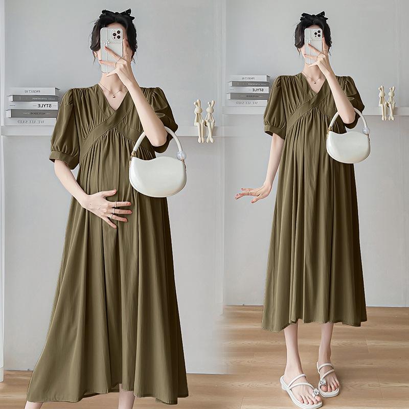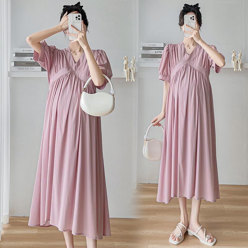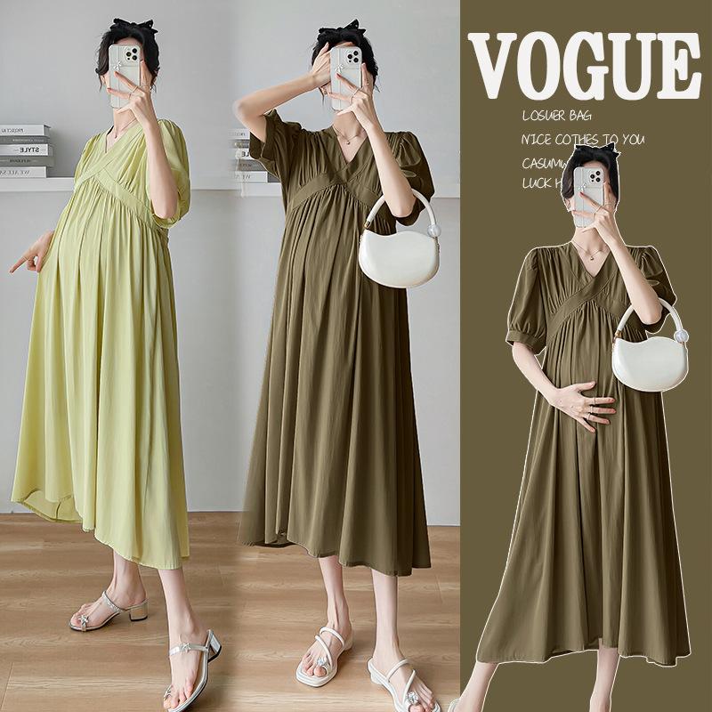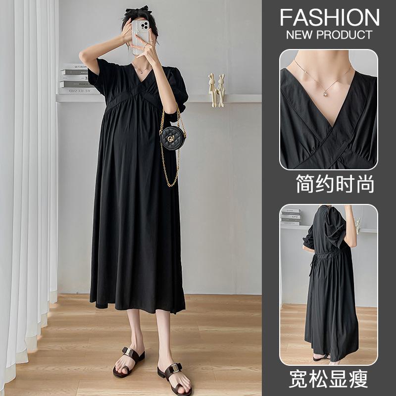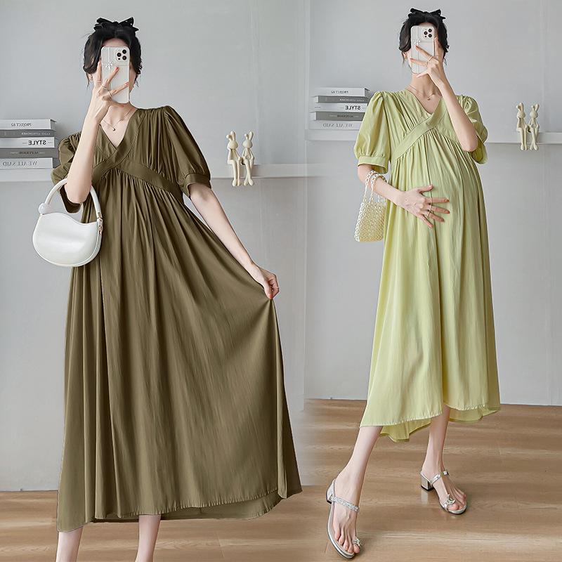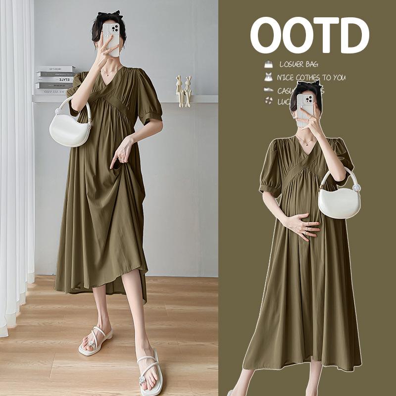 En Stock 2024 Nuevo Verano Ropa de Maternidad Estilo Hepburn Francés Vestido de Maternidad Suelto 5 Colores