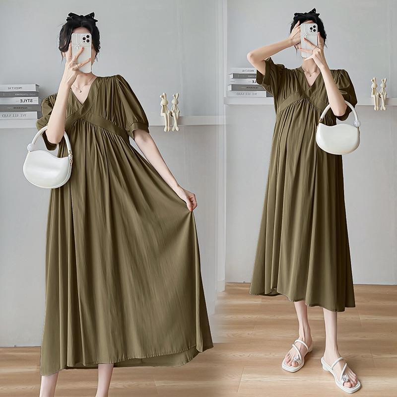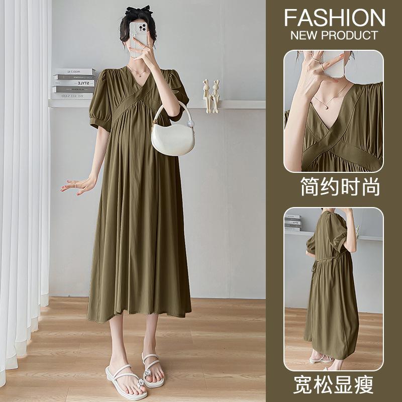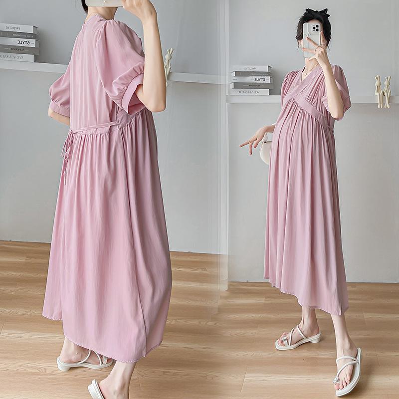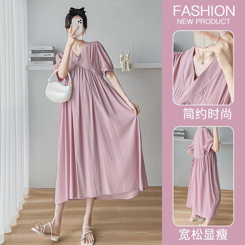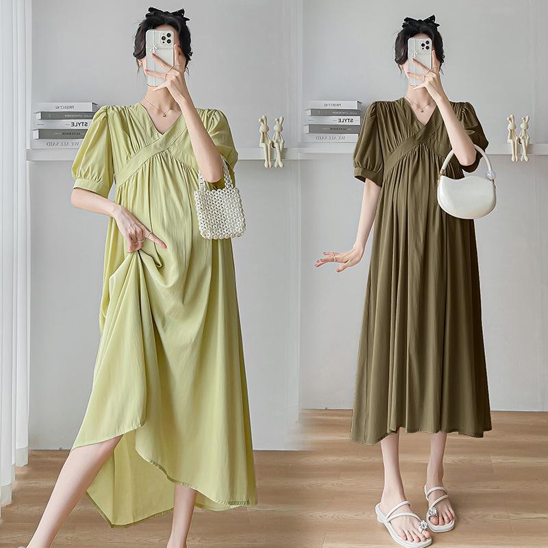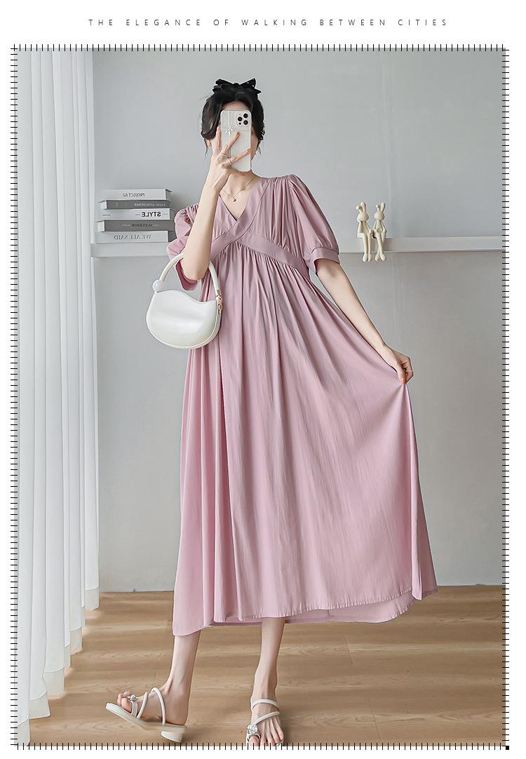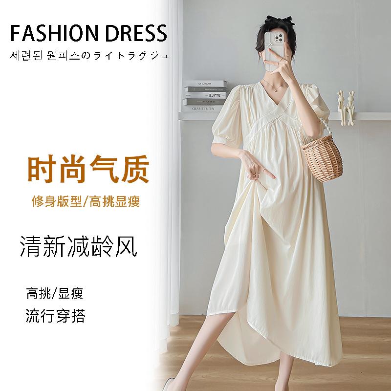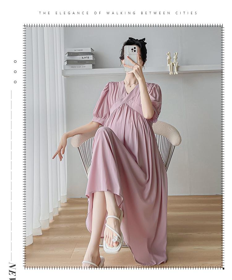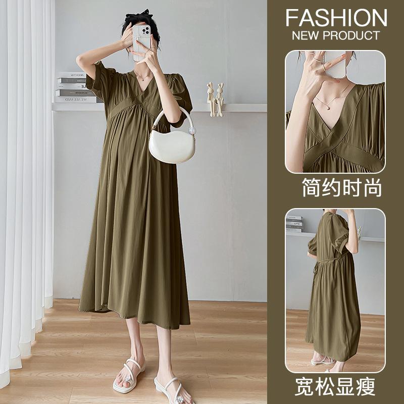 En Stock 2024 Nuevo Verano Ropa de Maternidad Estilo Hepburn Francés Vestido de Maternidad Suelto 5 Colores