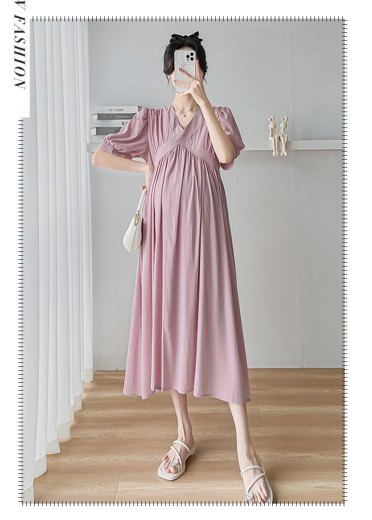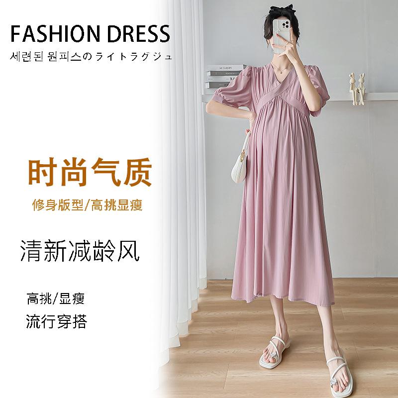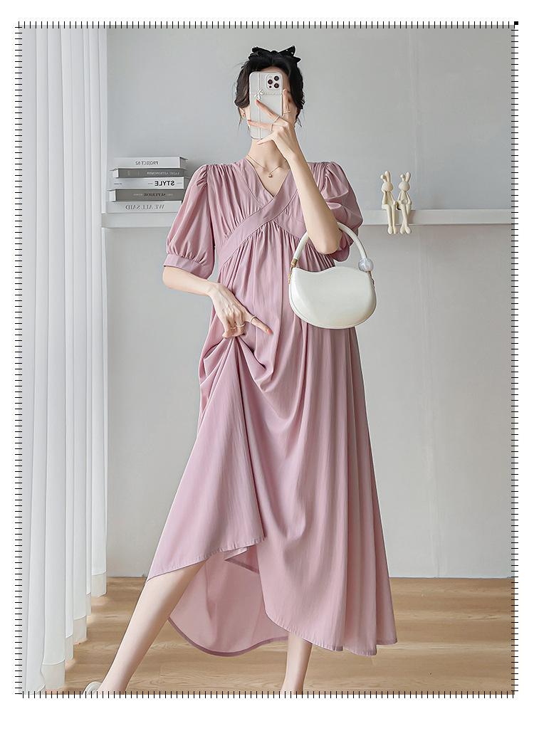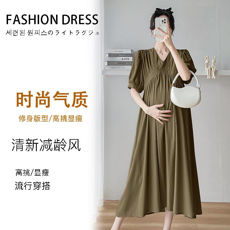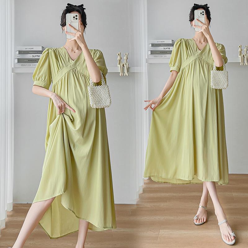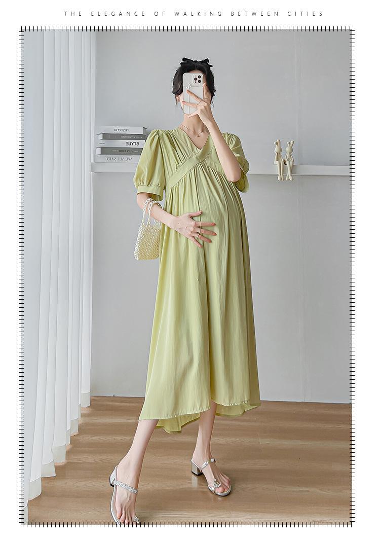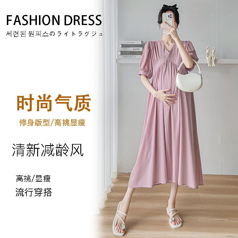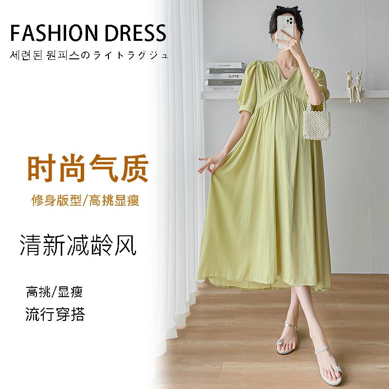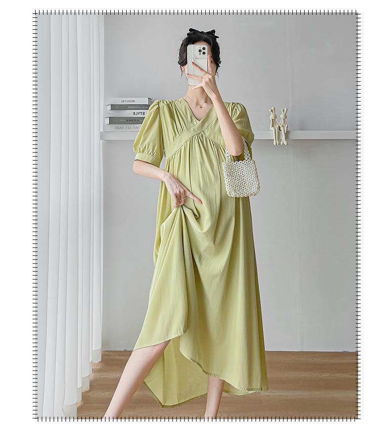 En Stock 2024 Nuevo Verano Ropa de Maternidad Estilo Hepburn Francés Vestido de Maternidad Suelto 5 Colores