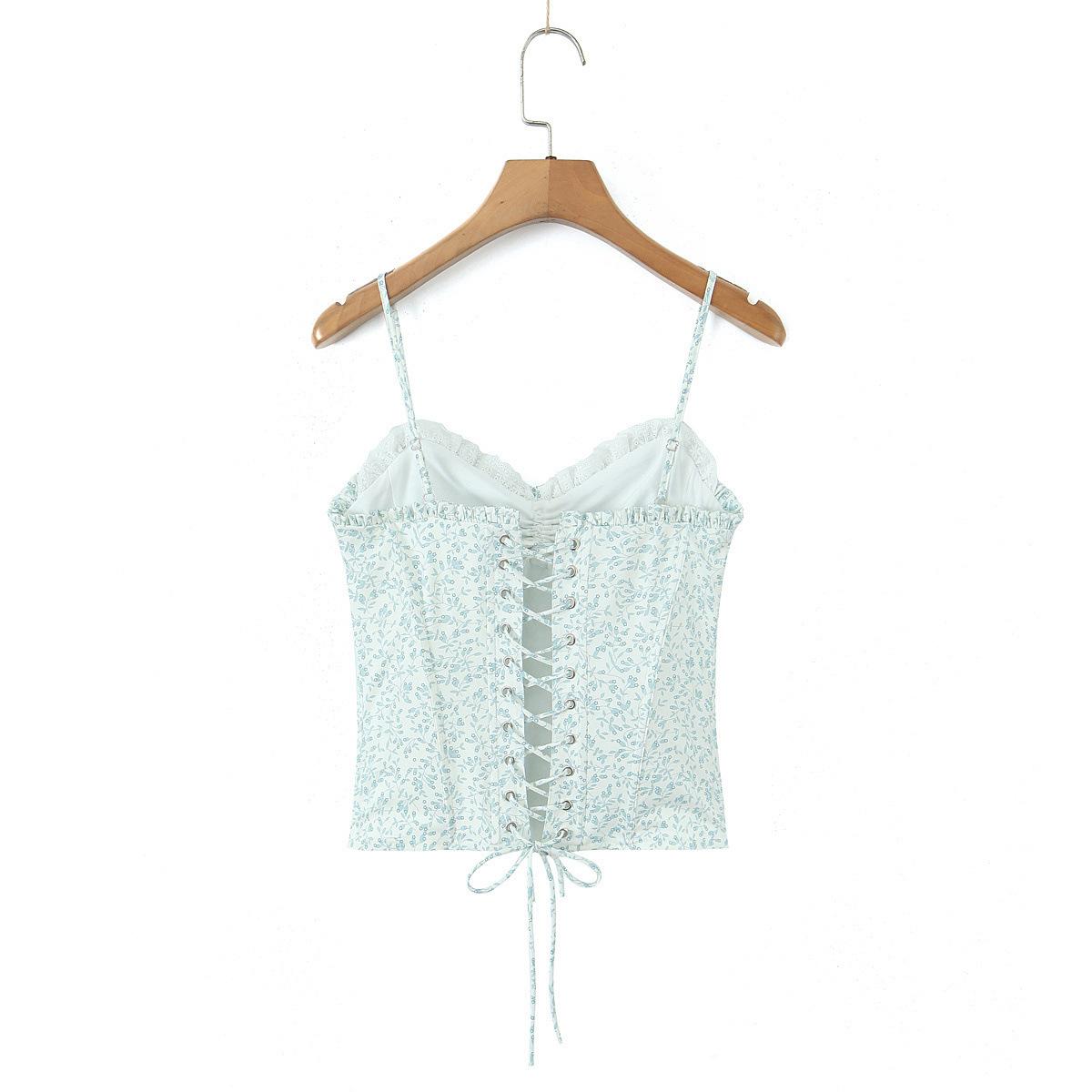 Camisola pequeña con tirantes en la espalda, dulce y fresca, estilo occidental, sexy, sin espalda, sin mangas