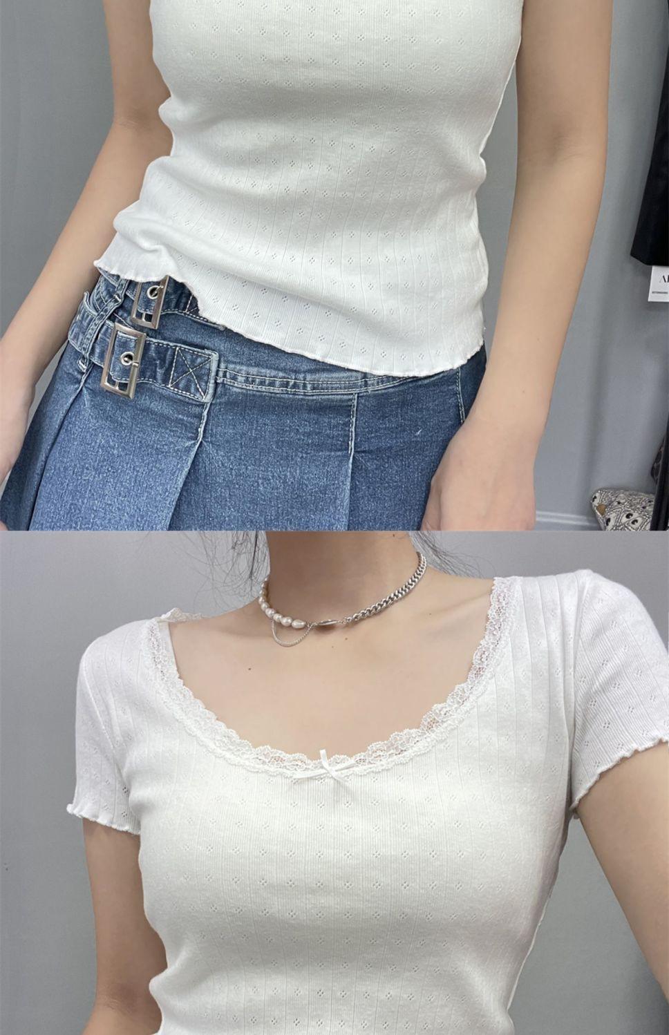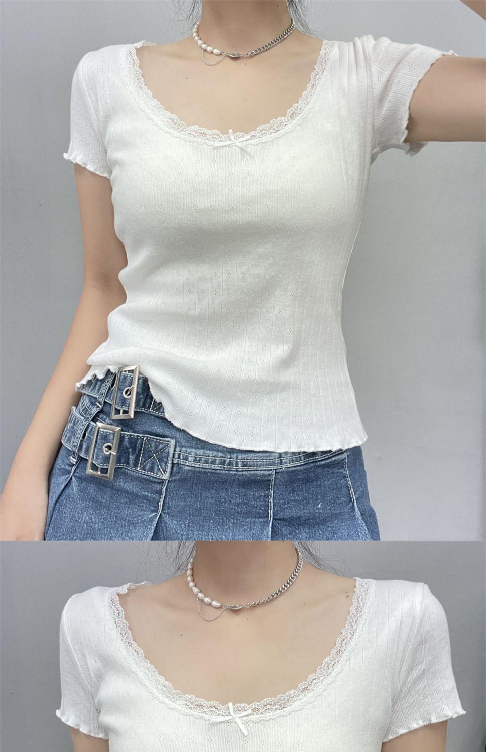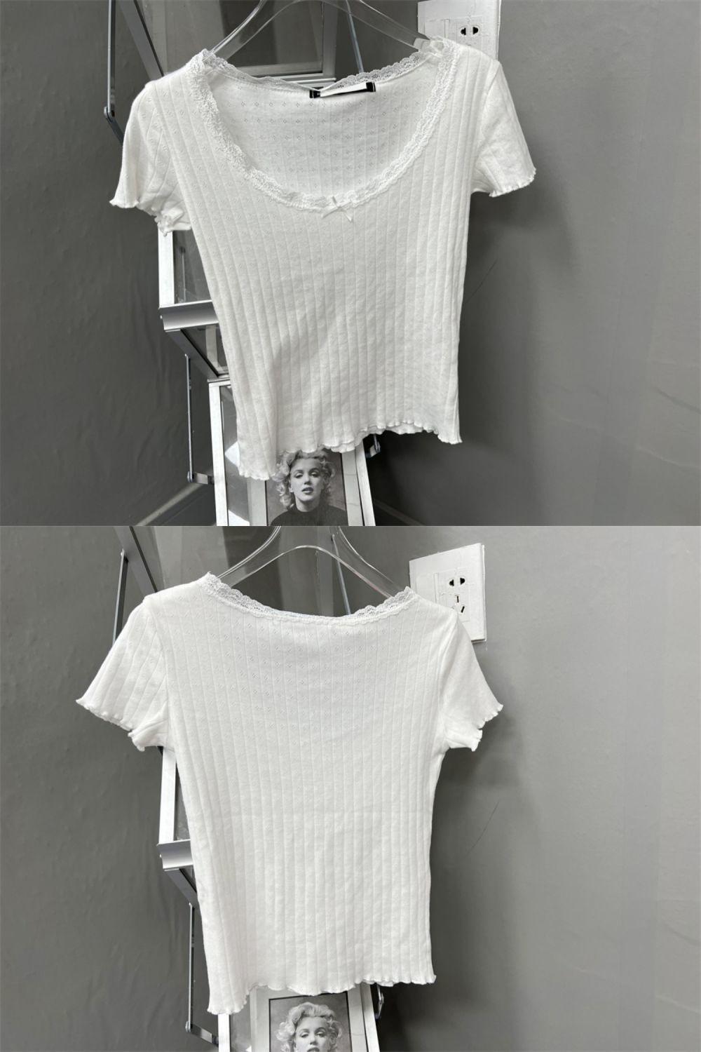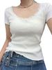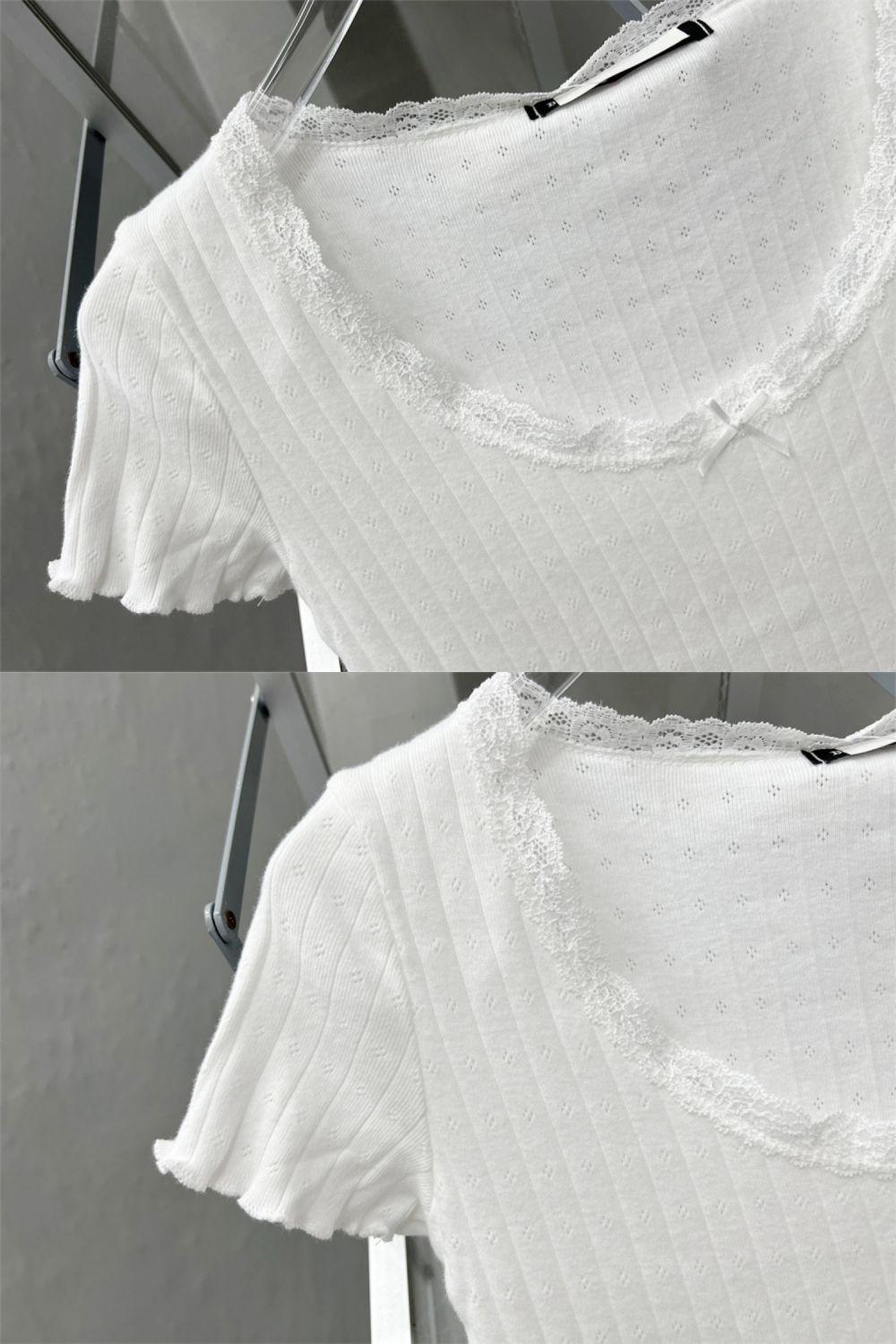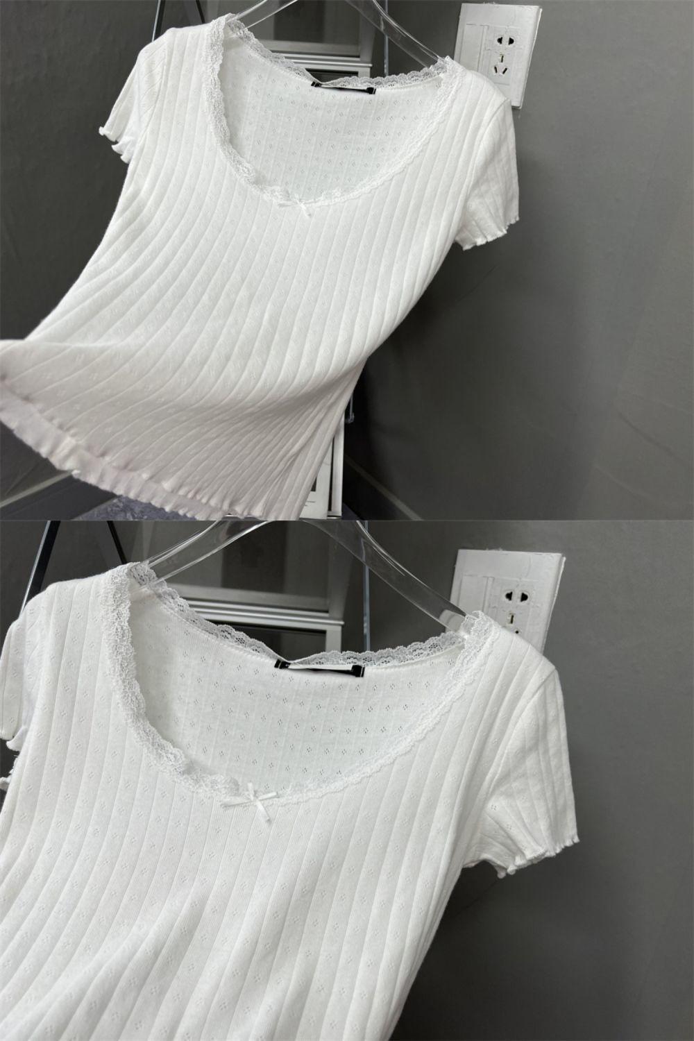 Encaje dulce puro blanco ajustado adelgazante fondo de verano para mujer hombro manga corta camiseta top ins
