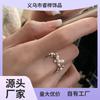 Anillo de plata de ley con perla y flor de lujo, ligero y moderno, diseño femenino, anillo de dedo índice de alta calidad, temperamento ajustable