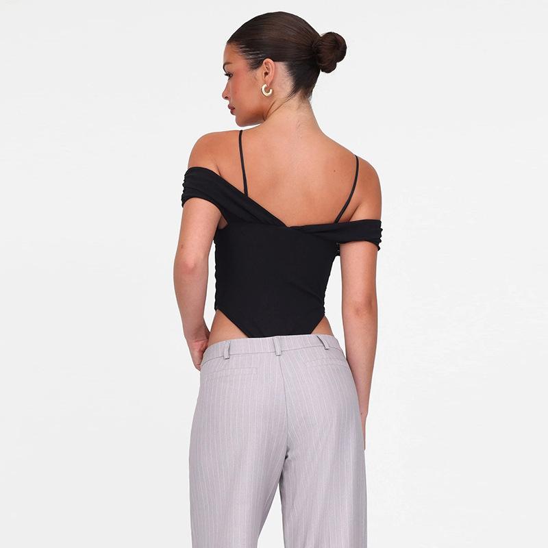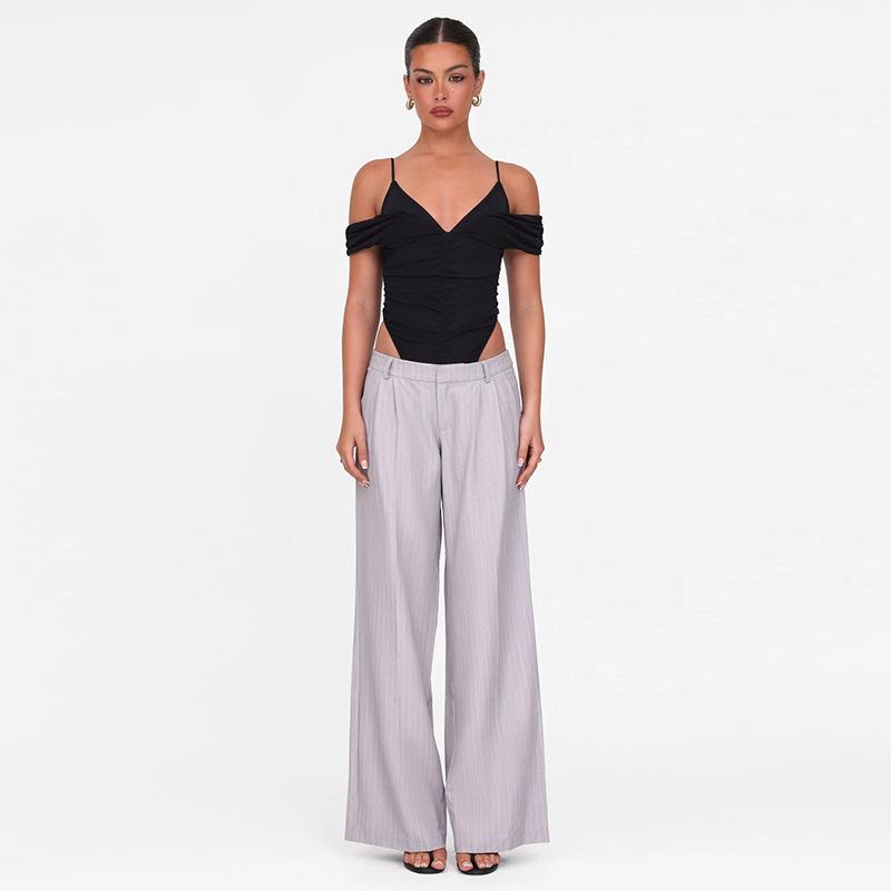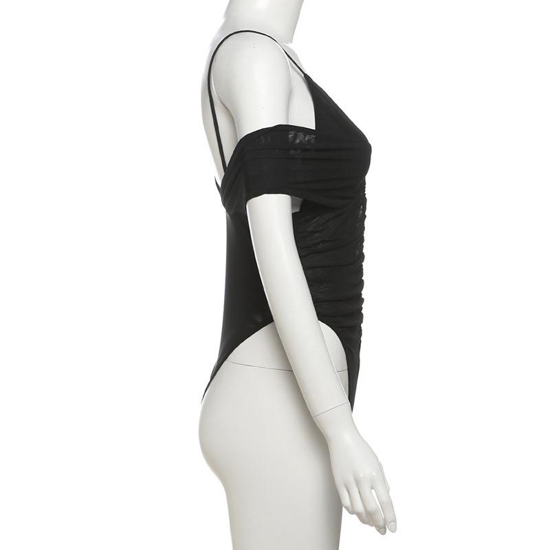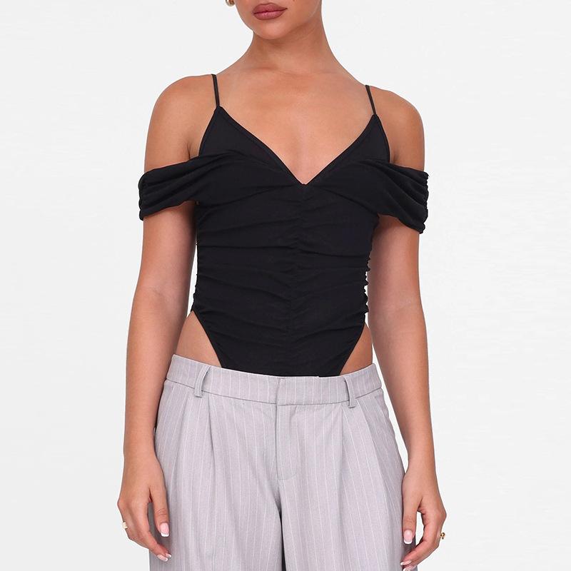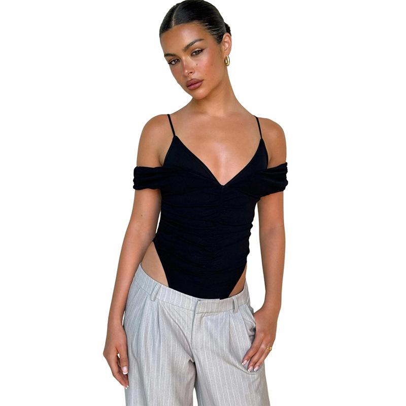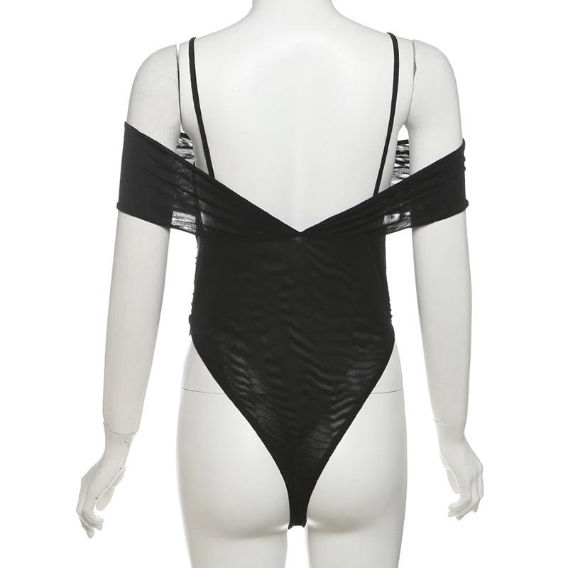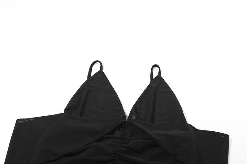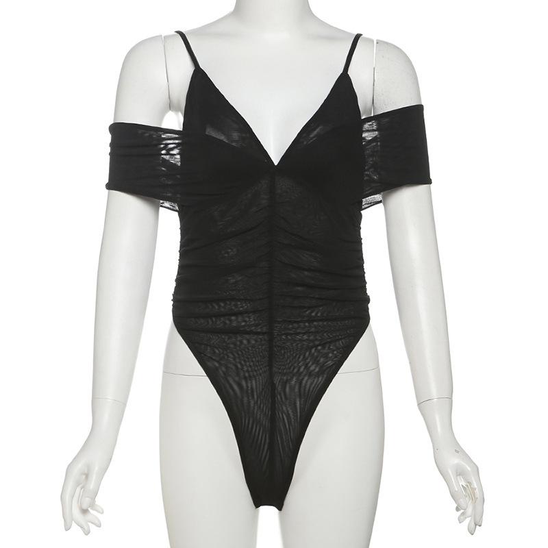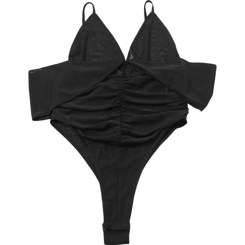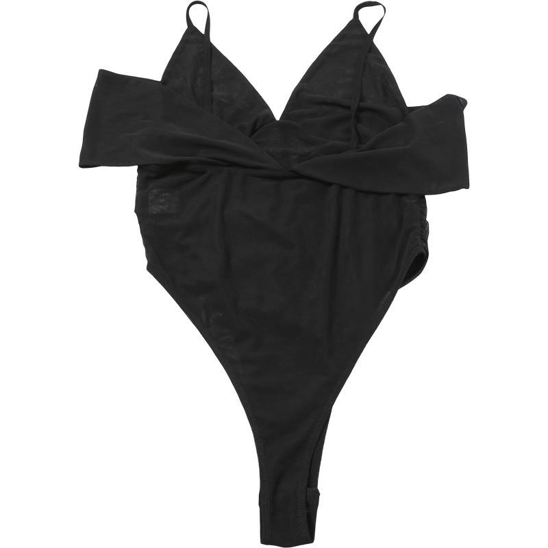 Estilo europeo y americano 2025 primavera y verano nuevo mayoreo para mujer color sólido sexy malla cuello en V sin espalda tirantes delgados jumpsuit