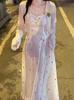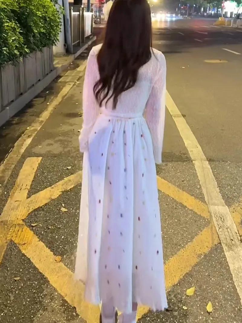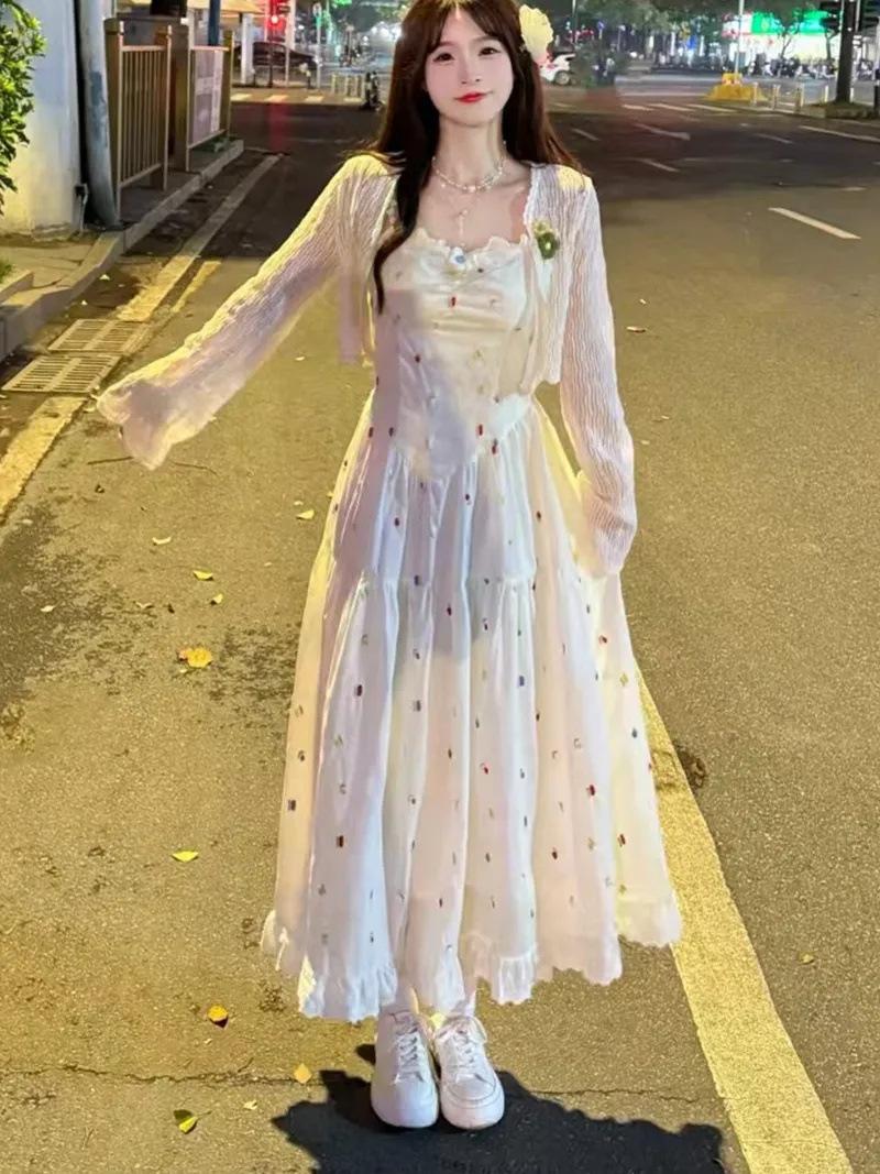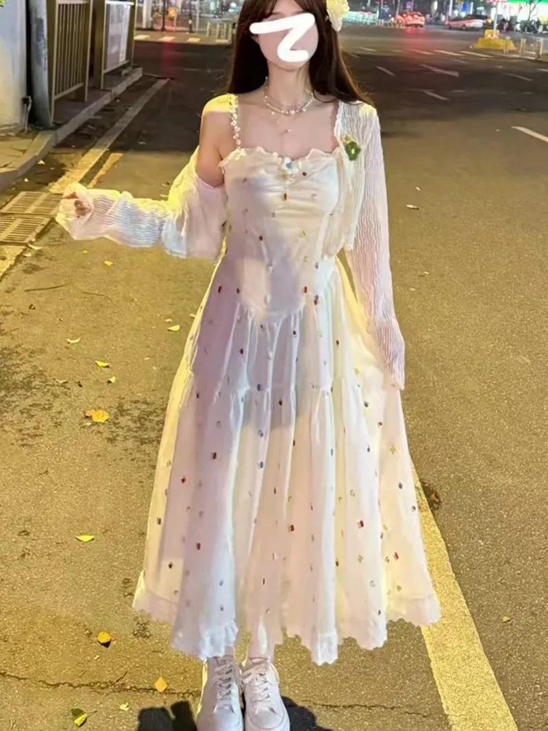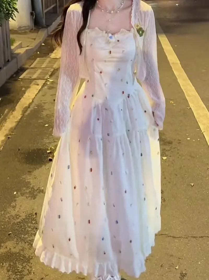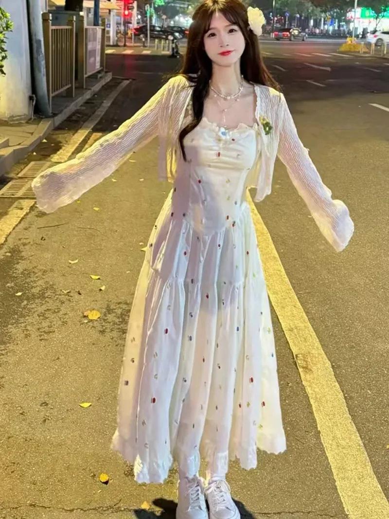 Vestido de tirantes bordado con sentido del diseño de nicho Traje Cárdigan de verano fino para mujer Dulce Lindo Tirantes largos