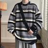 Suéter retro de manga larga a rayas de otoño e invierno 2023, nuevo diseño, cuello redondo, top holgado que combina con todo para mujer