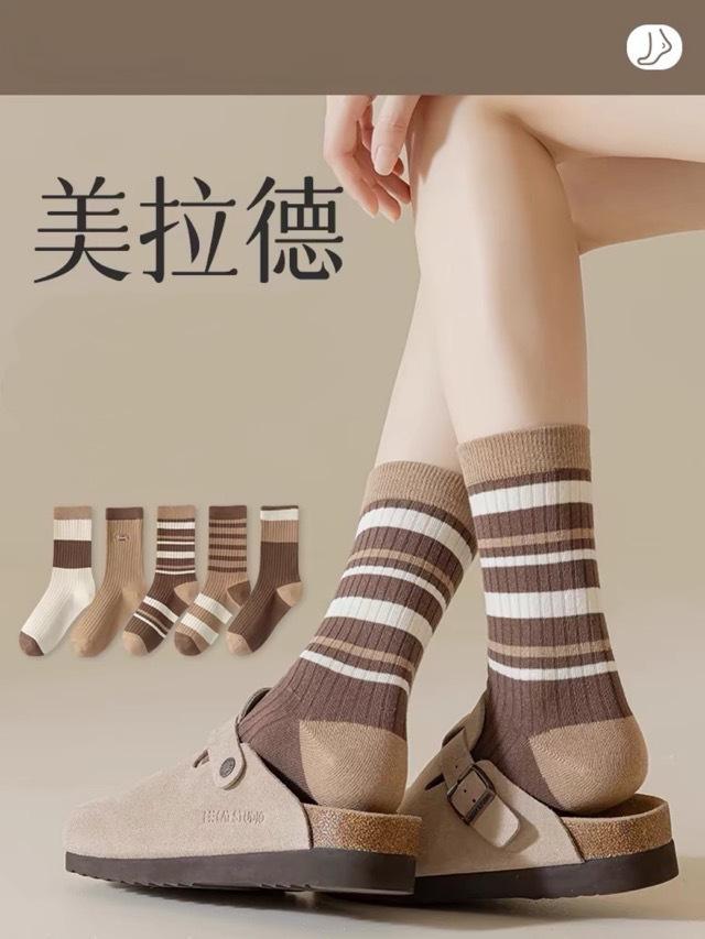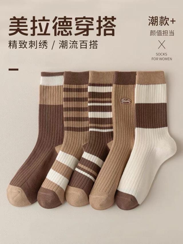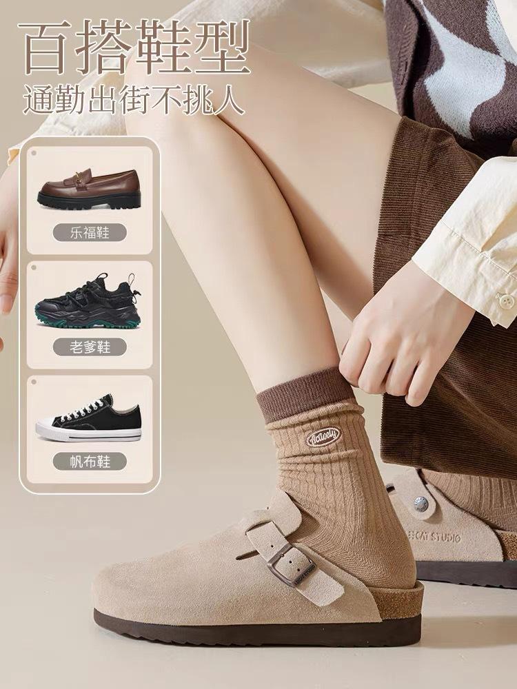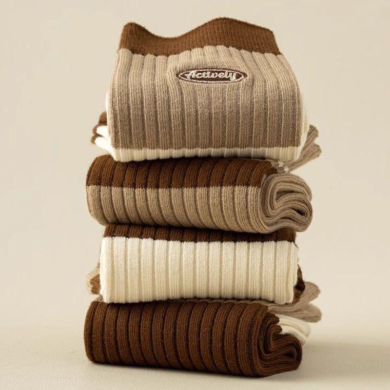 Calcetines de Otoño e Invierno Calcetines de Media Caña Color Maillard para Niños Ins Todo Combinable Simples Calcetines Apilados Estilo Académico Media Marrón